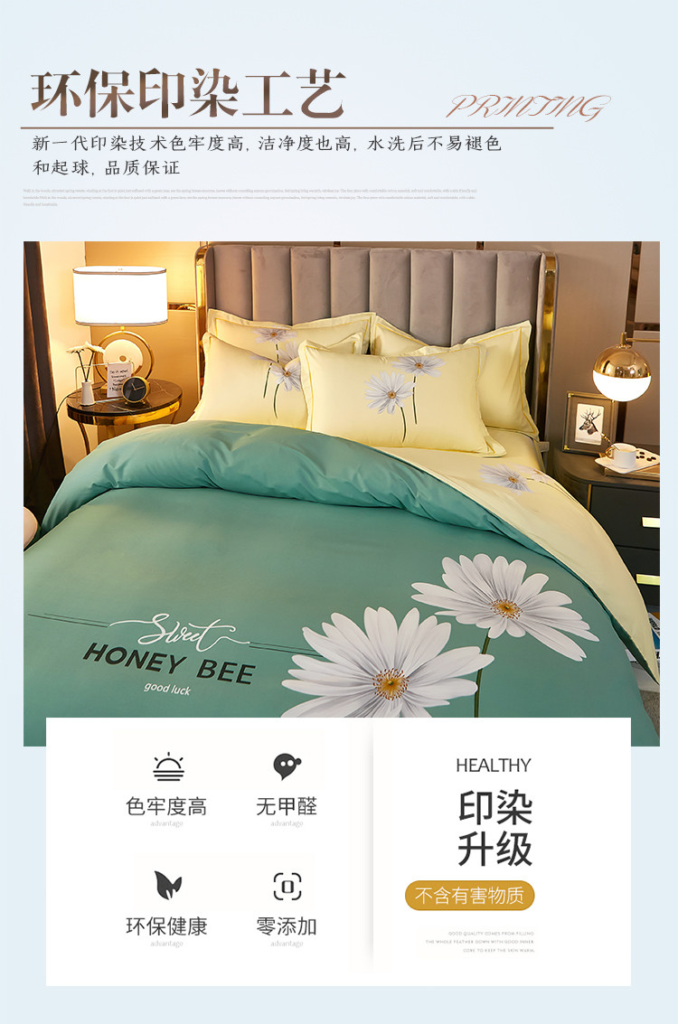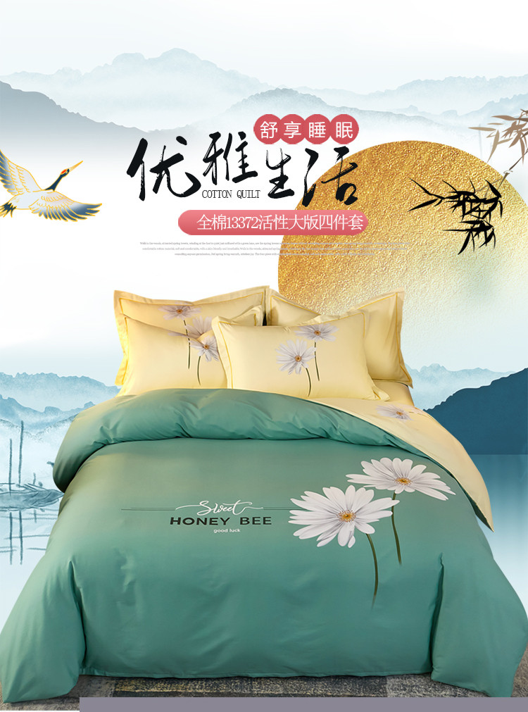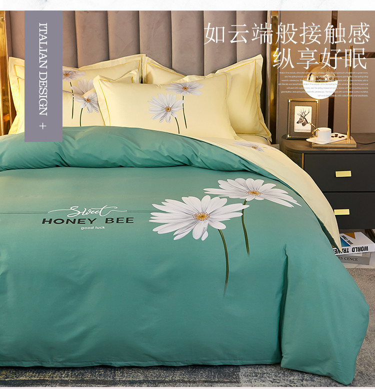 雲归梦2021全棉大版四件套第二批花卉格调系列 心花怒放绿