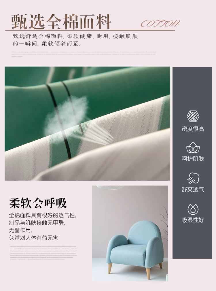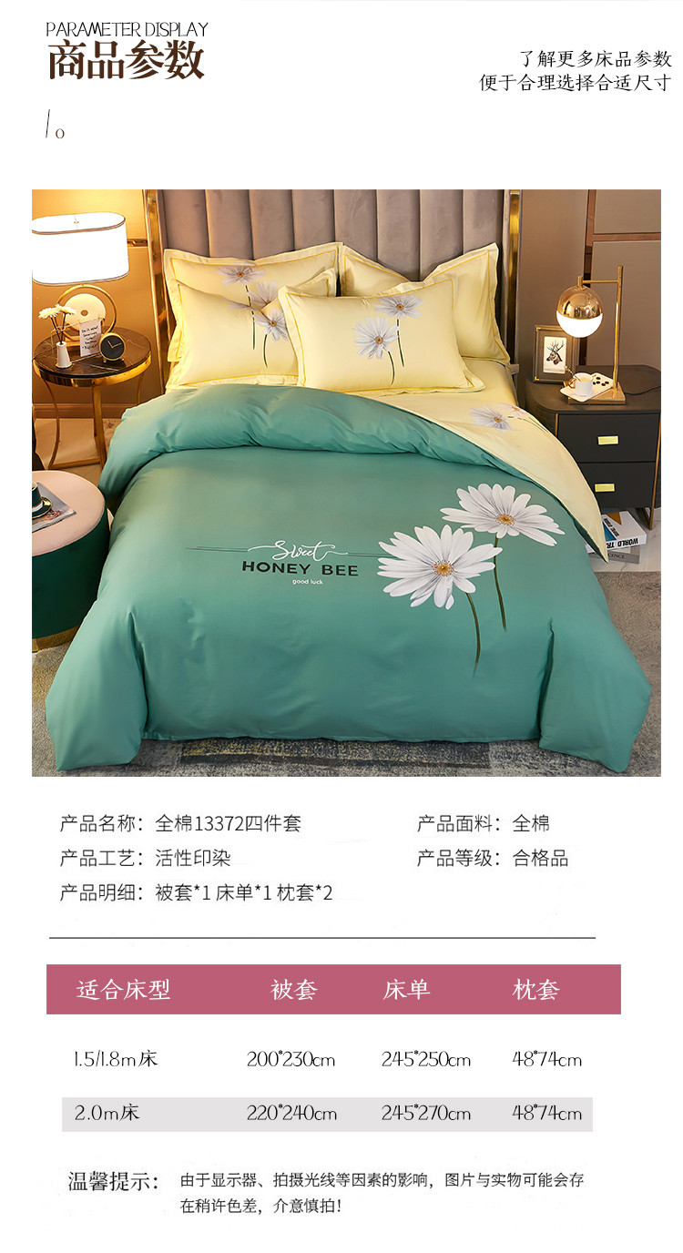 商品名称:雲归梦2021全棉大版四件套第二批花卉格调系列 心花怒放绿