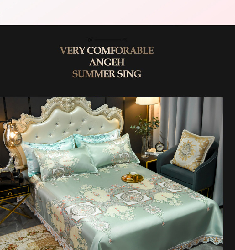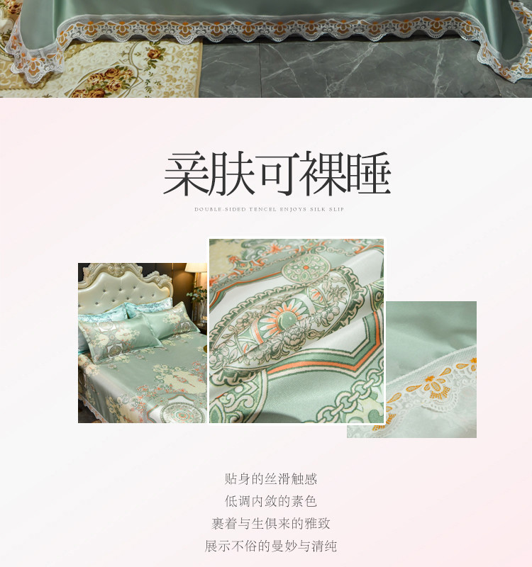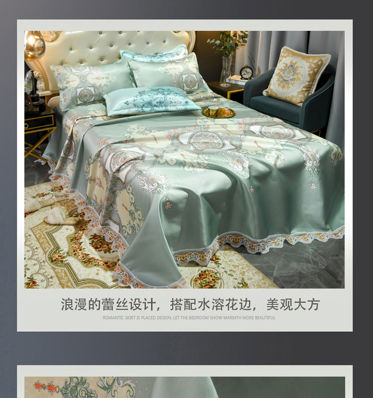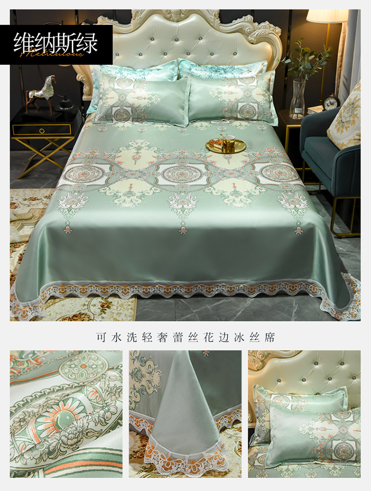 ds生活馆 2021新款欧式蕾丝花边床单款凉席冰丝席维纳斯绿