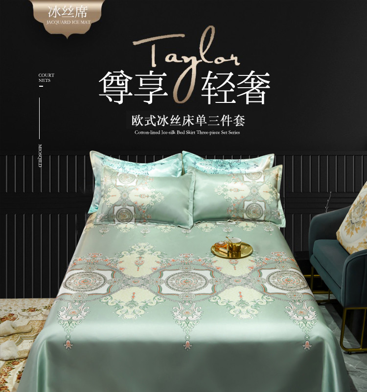 商品名称:ds生活馆 2021新款欧式蕾丝花边床单款凉席冰丝席维纳斯绿