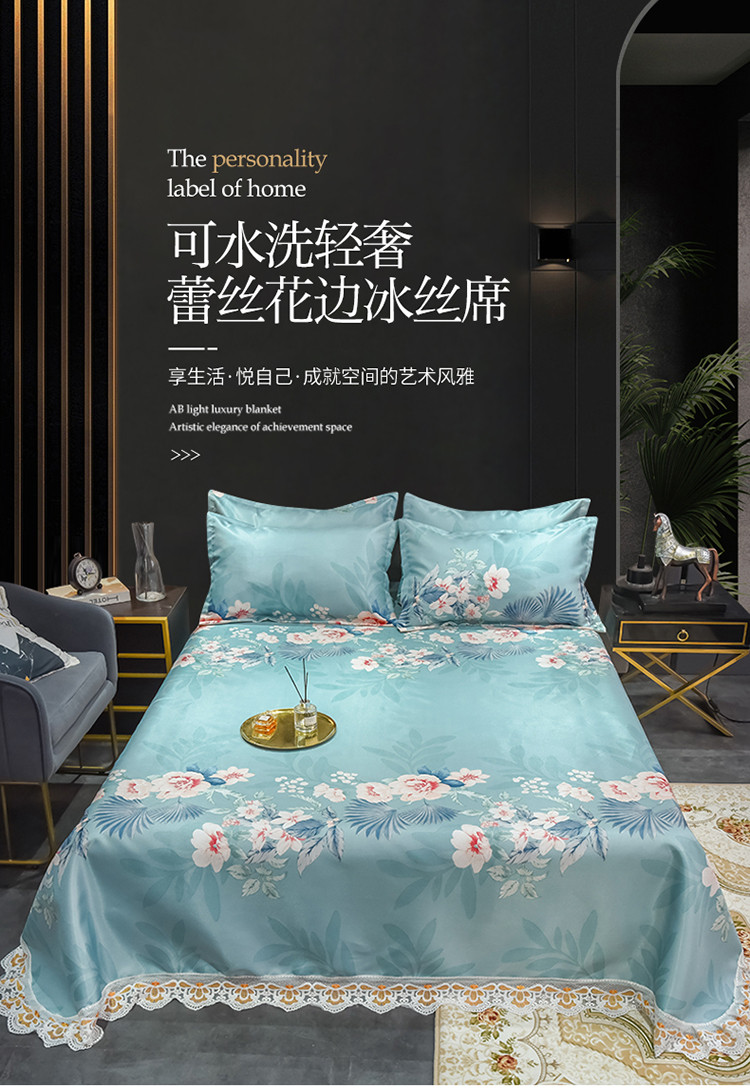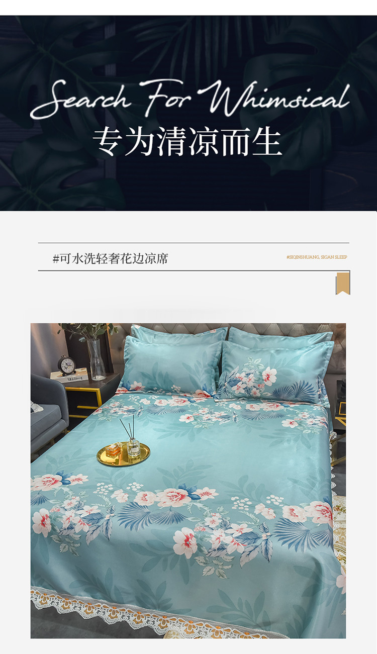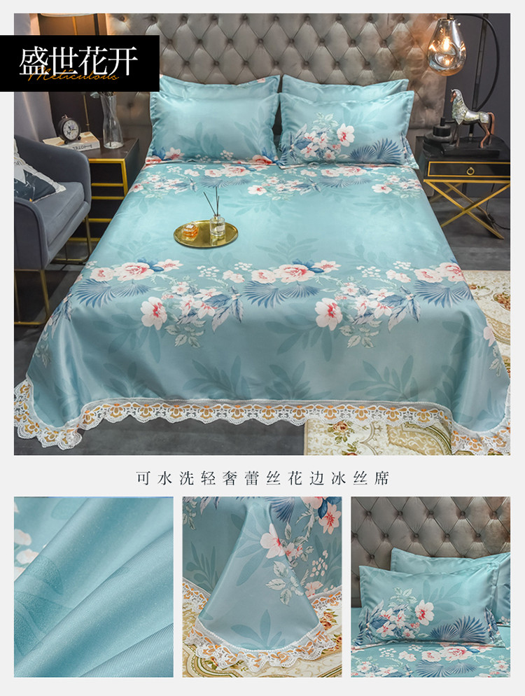 商品名称:ds生活馆 2021新款欧式蕾丝花边床单款凉席冰丝席盛世花开