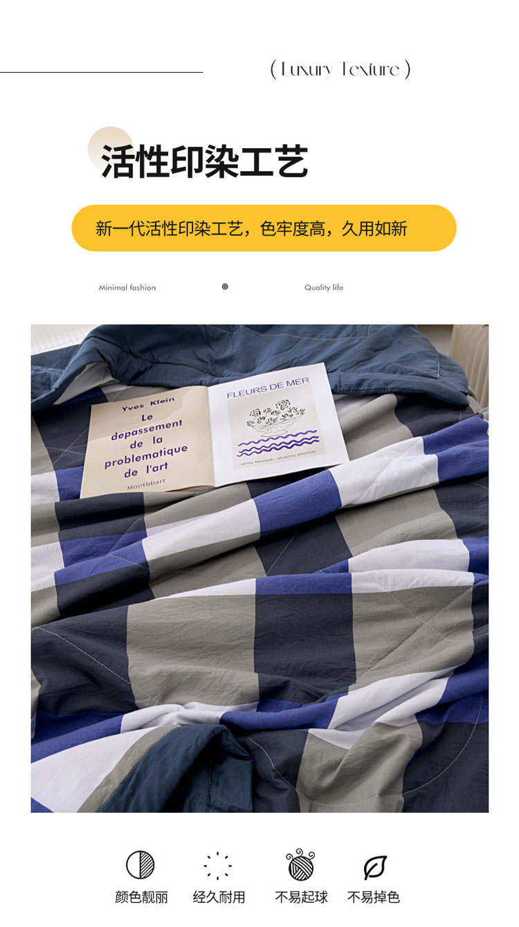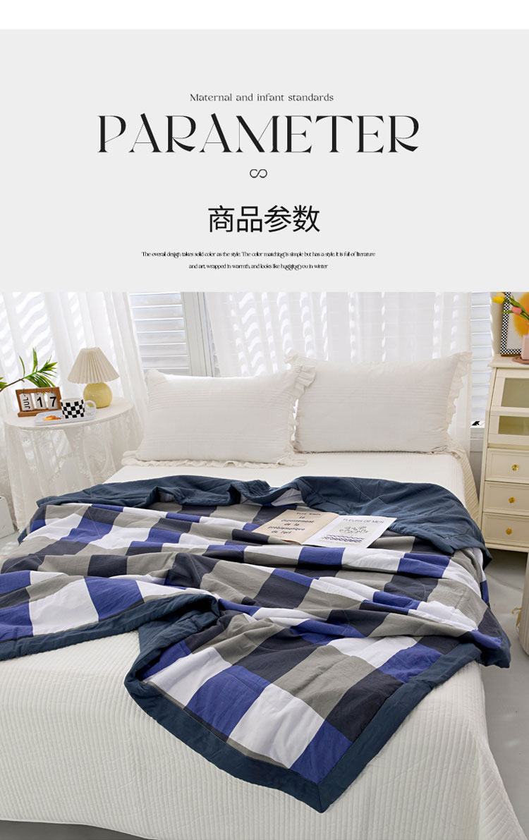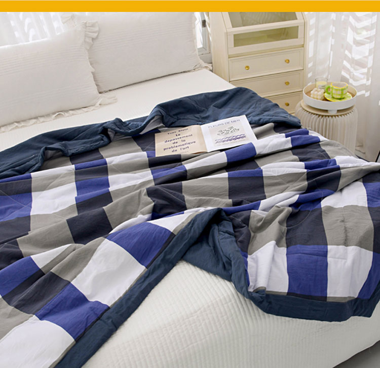 商品名称:三俏2025新款水洗棉夏被无印风夏凉被日式格子条纹 蓝大格