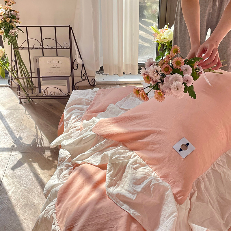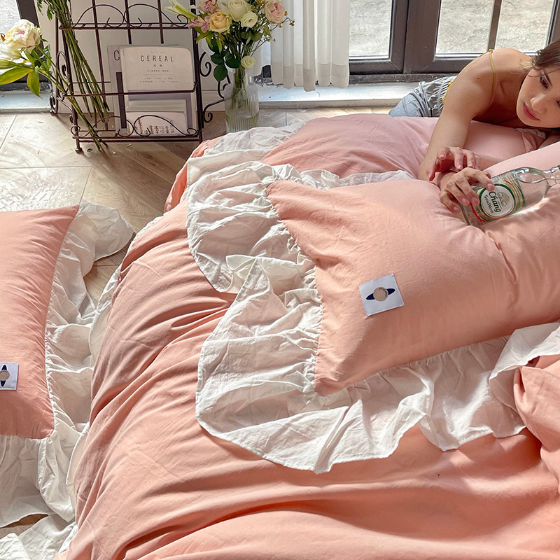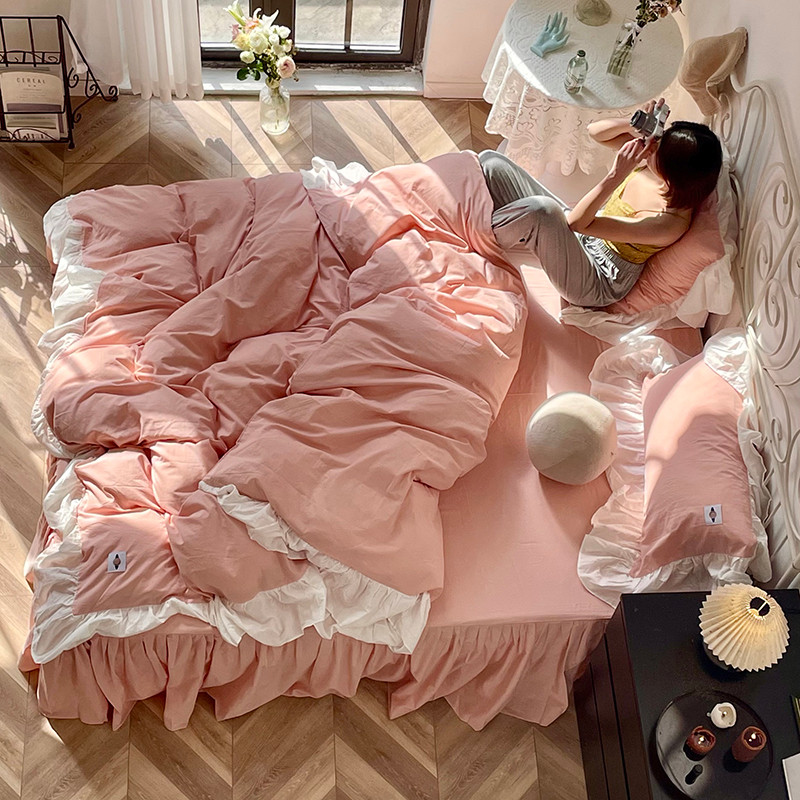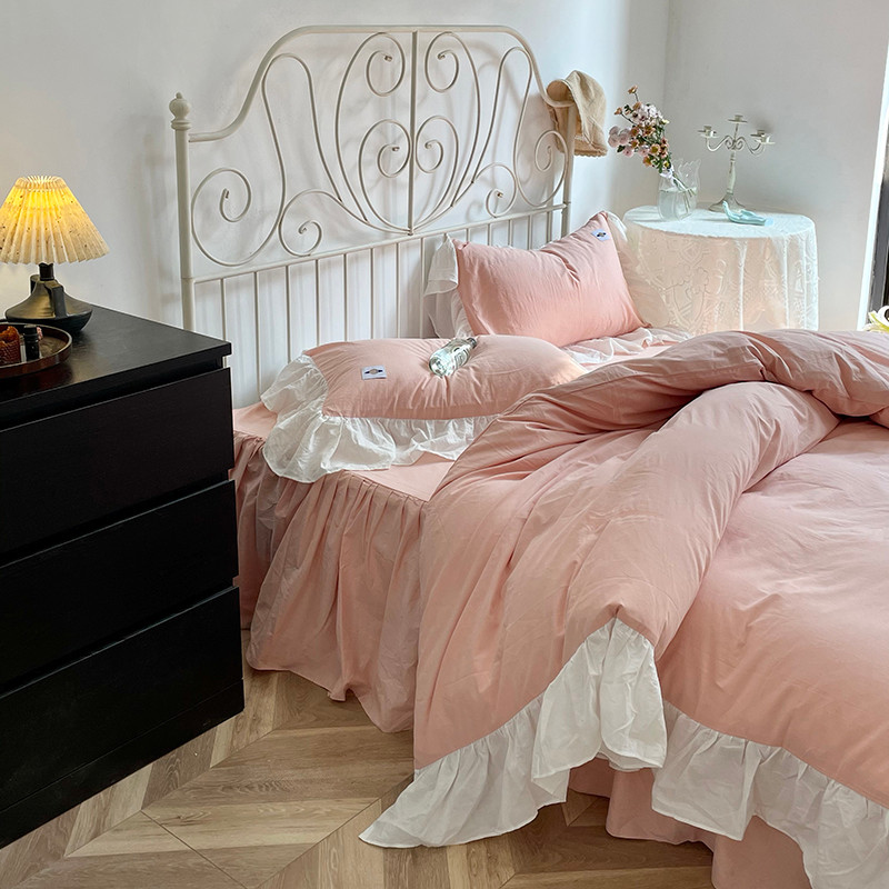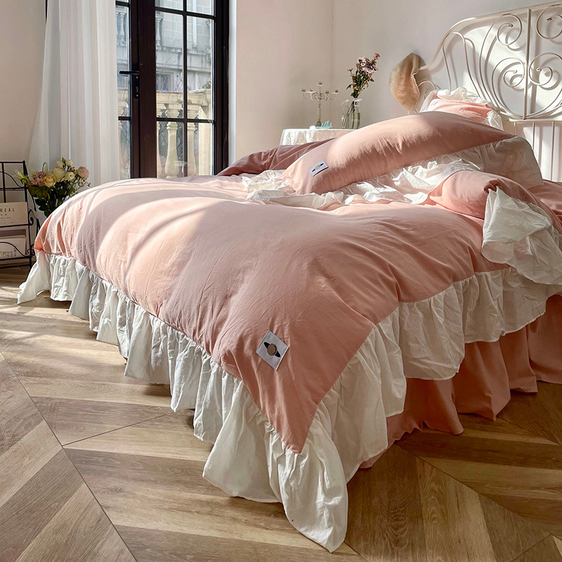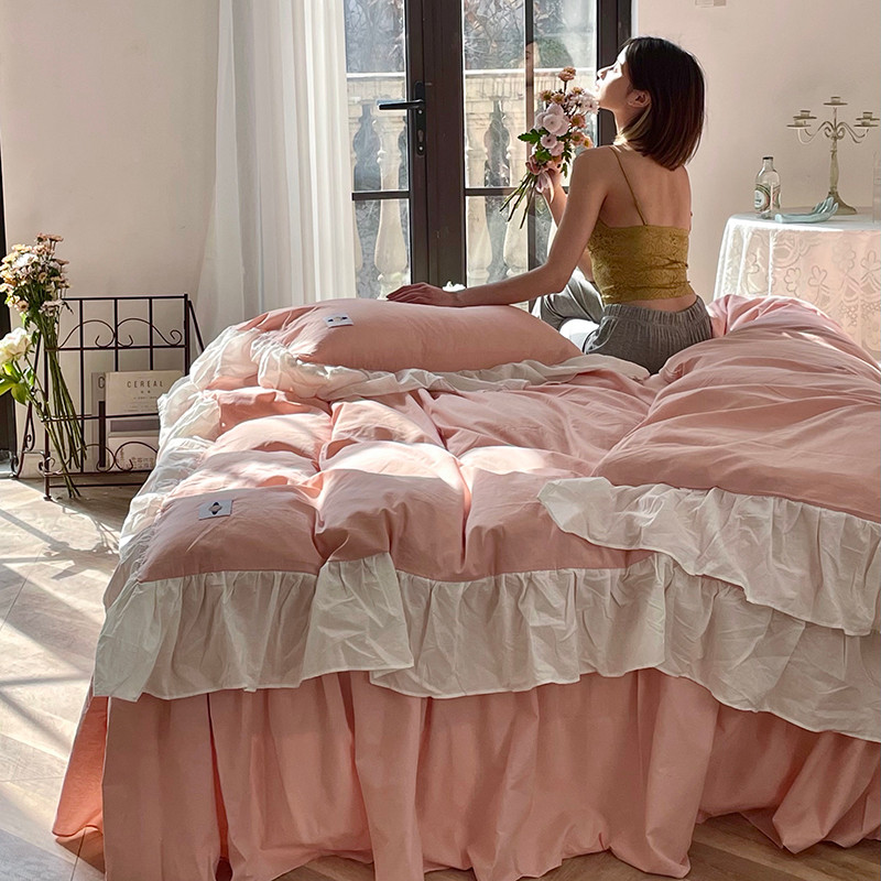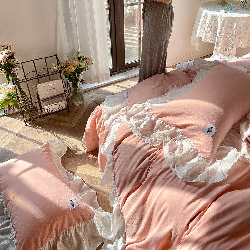洋铭区 2021新款法式清新水洗棉四件套 暖心粉
