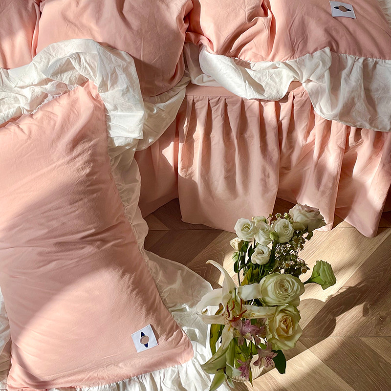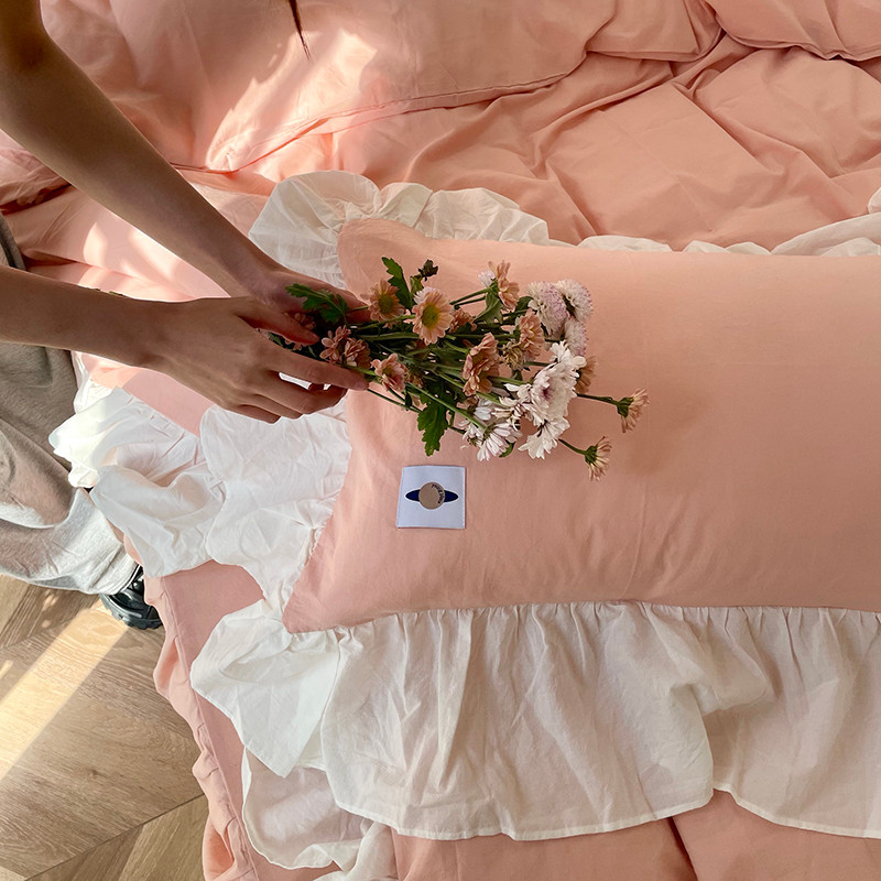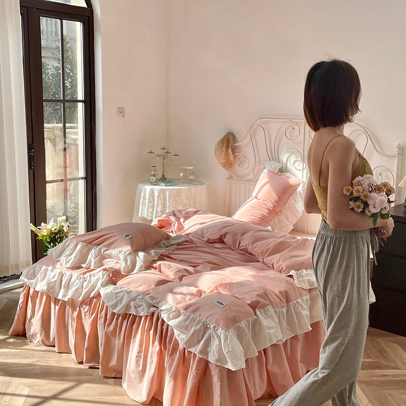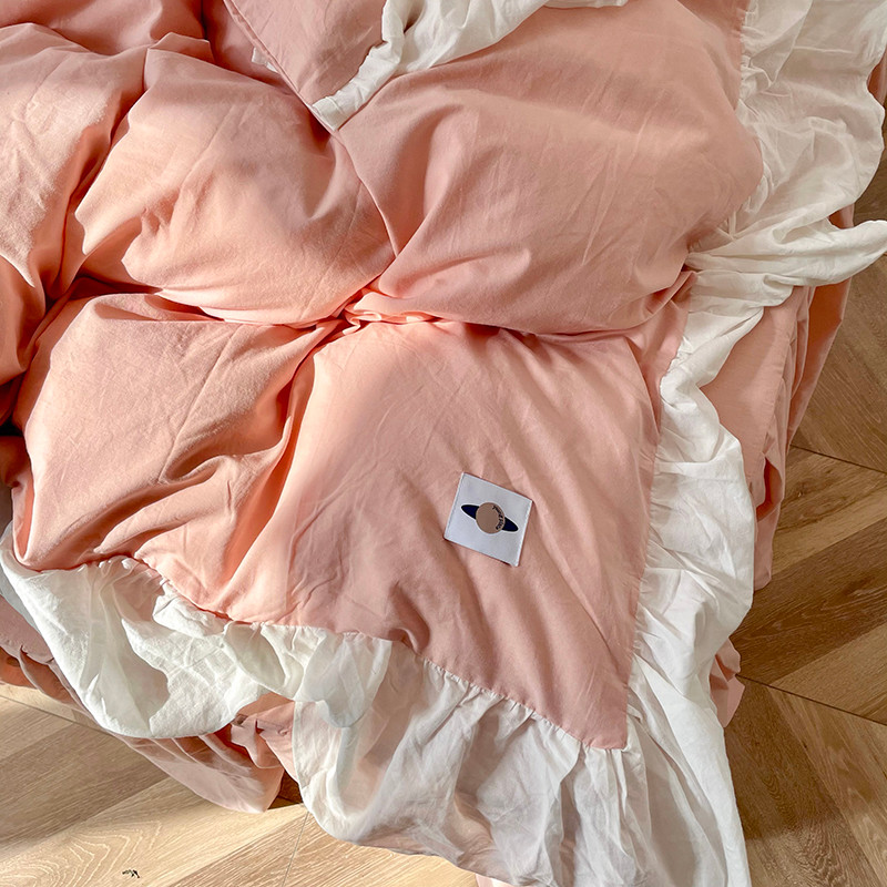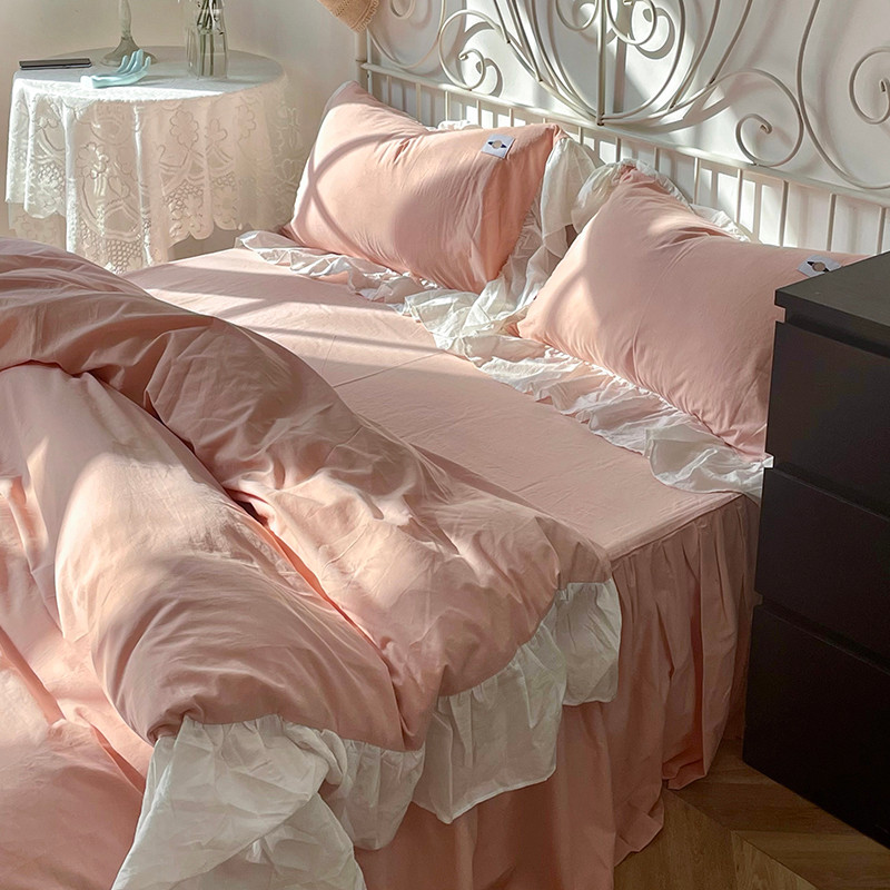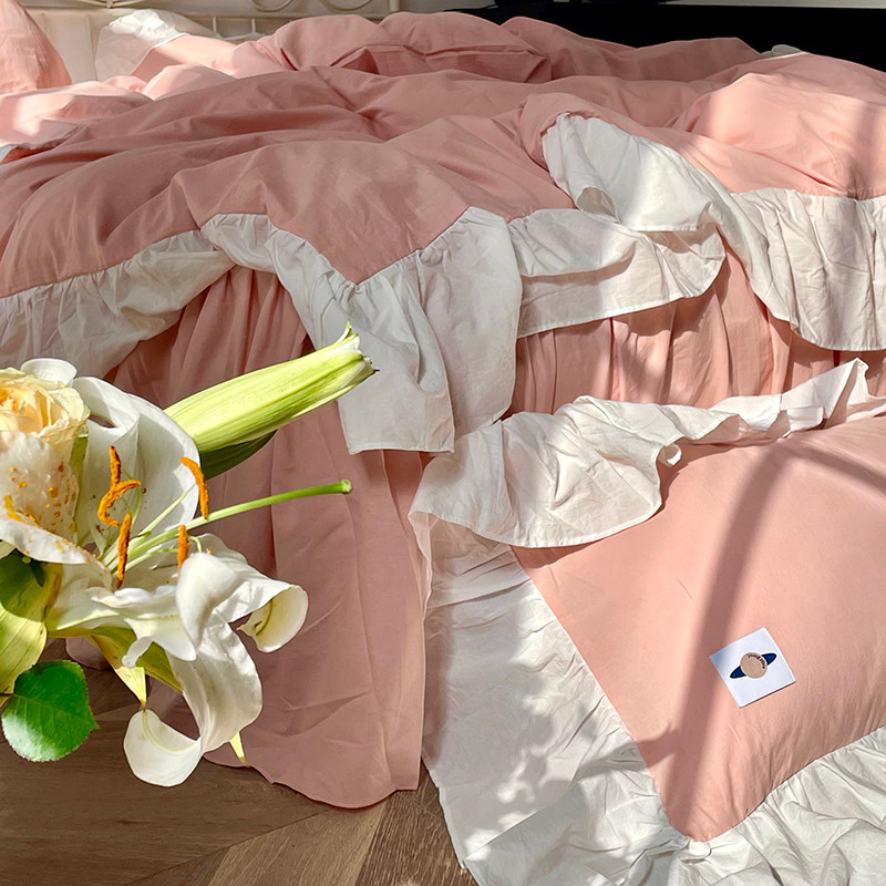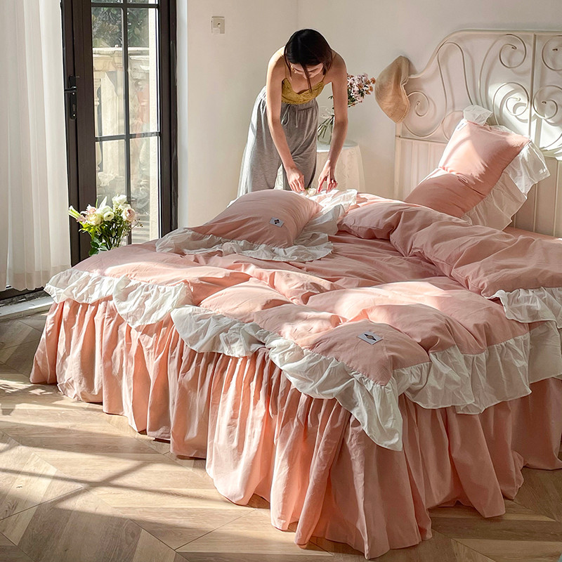 洋铭区 2021新款法式清新水洗棉四件套 暖心粉
