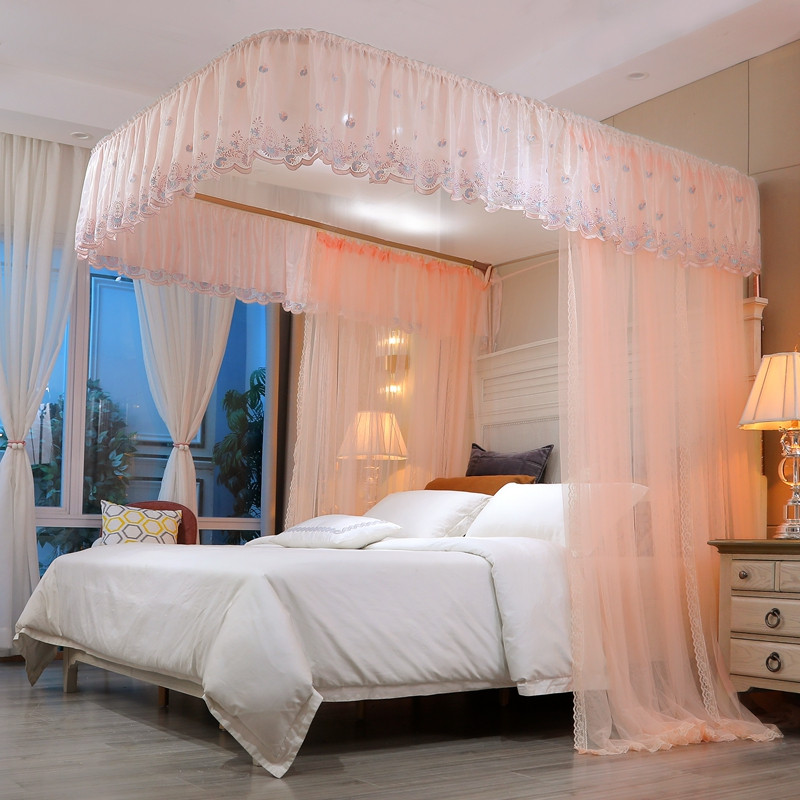 (总)2025新款双层花边全包围床笠款三开门蚊帐-幽梦星辰,奶黄,藕玉,颜淡蓝