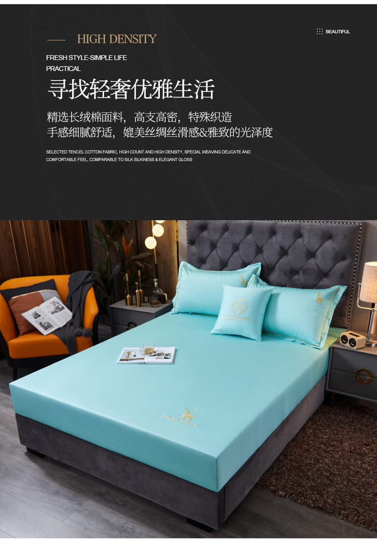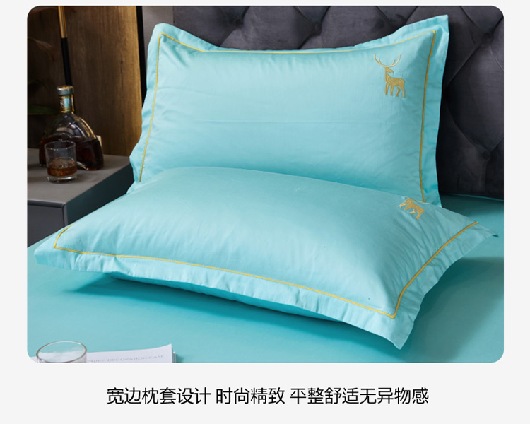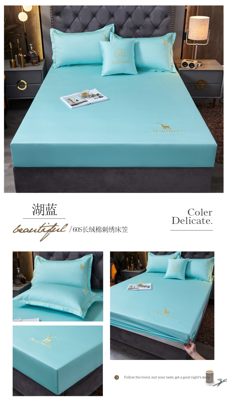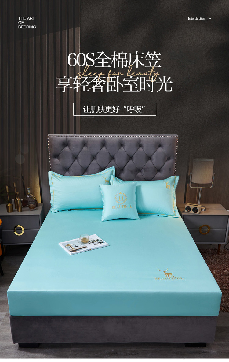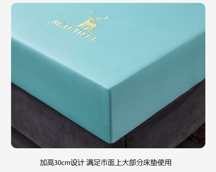 商品名称:菊上 2021新款60长绒棉-单品床笠(幸福鹿系列) 湖蓝