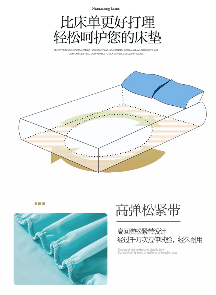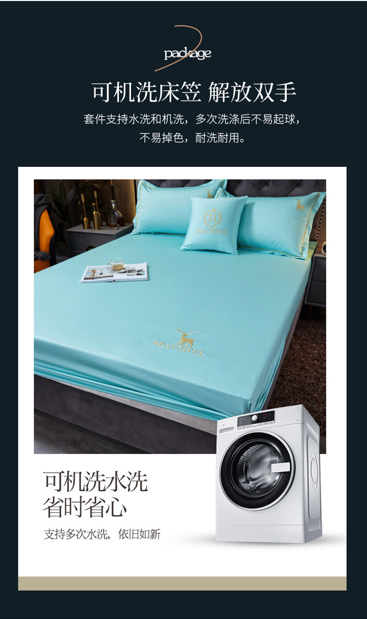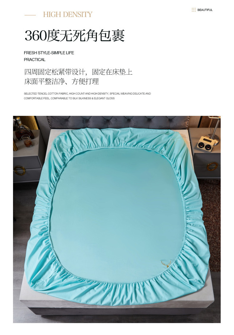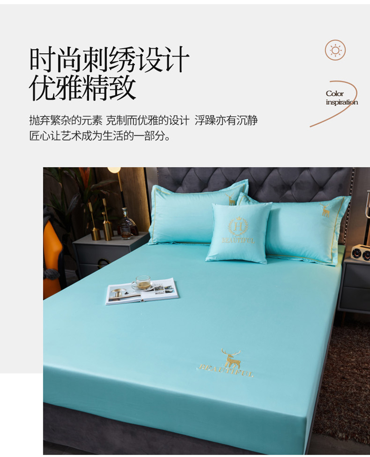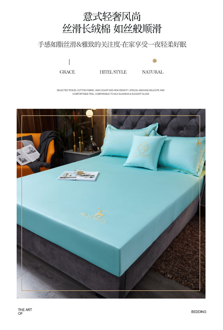 商品名称:菊上 2021新款60长绒棉-单品床笠(幸福鹿系列) 湖蓝