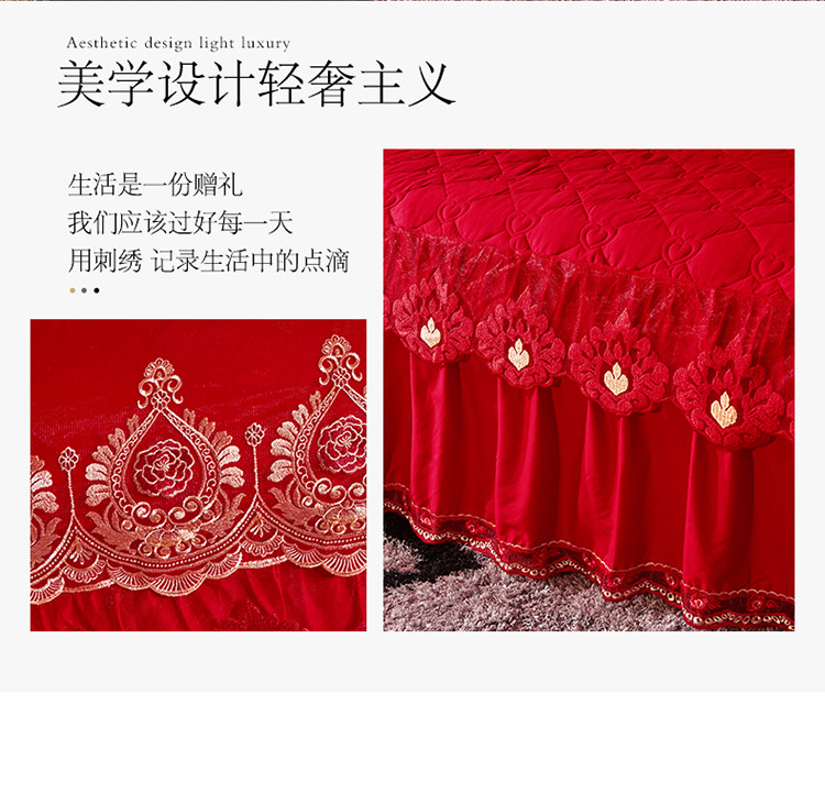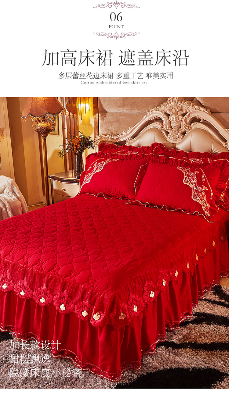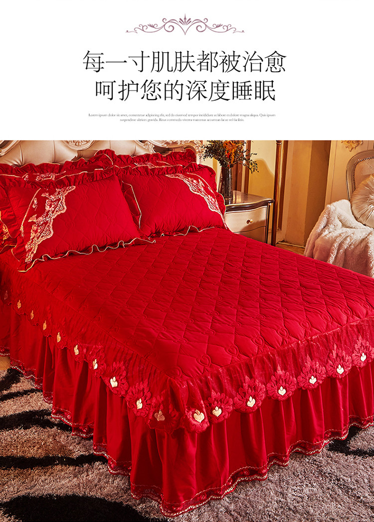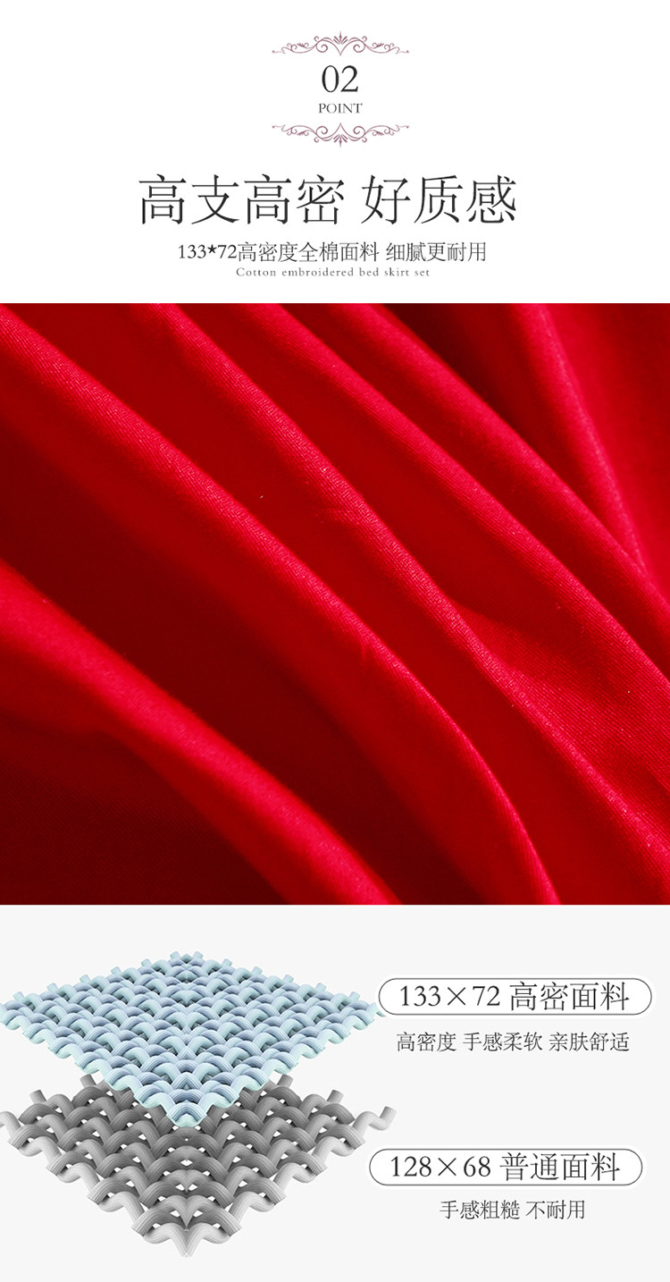 (总)宜凡家纺 2025新款婴儿绒压花全夹棉床裙四件套,韵雅-中国红,韵雅-黑天鹅