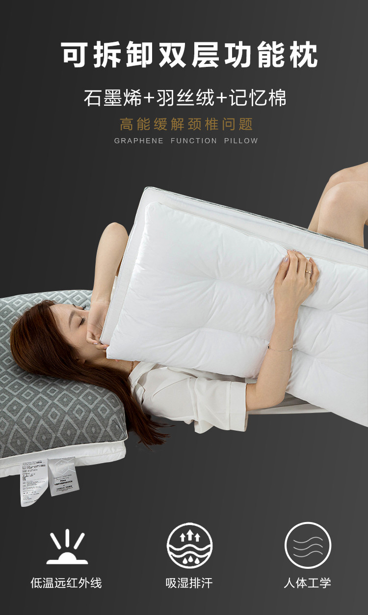 当前位置: 91家纺网 > 商品网购 > 枕头/枕芯/保健枕/颈椎枕 > 普通枕芯 > 多点 2021新款石墨烯可脱卸羽丝记忆枕40*70/只