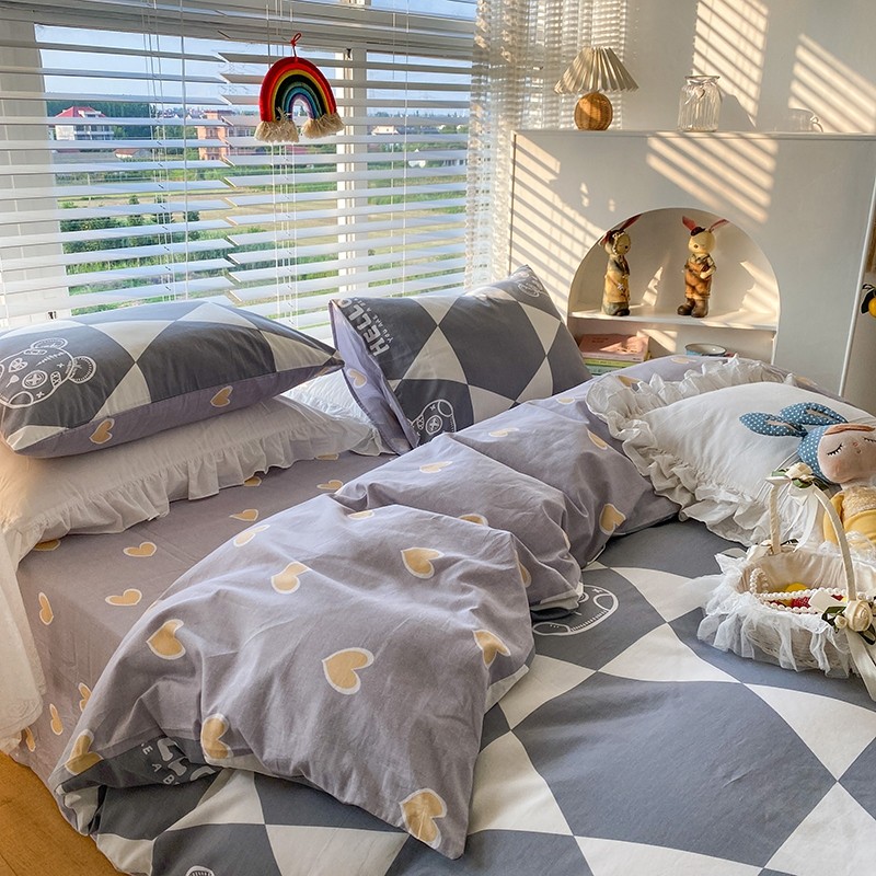 (总)2023新款40支纱全棉13070锁边工艺款四件套系列,格子爱心,嘉兰,咖条,朗尼,小兔兔,星星兔