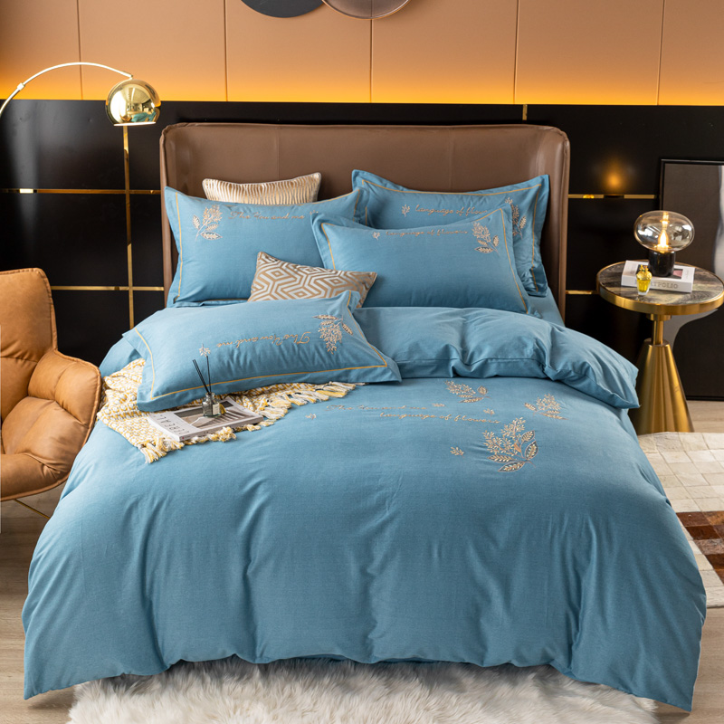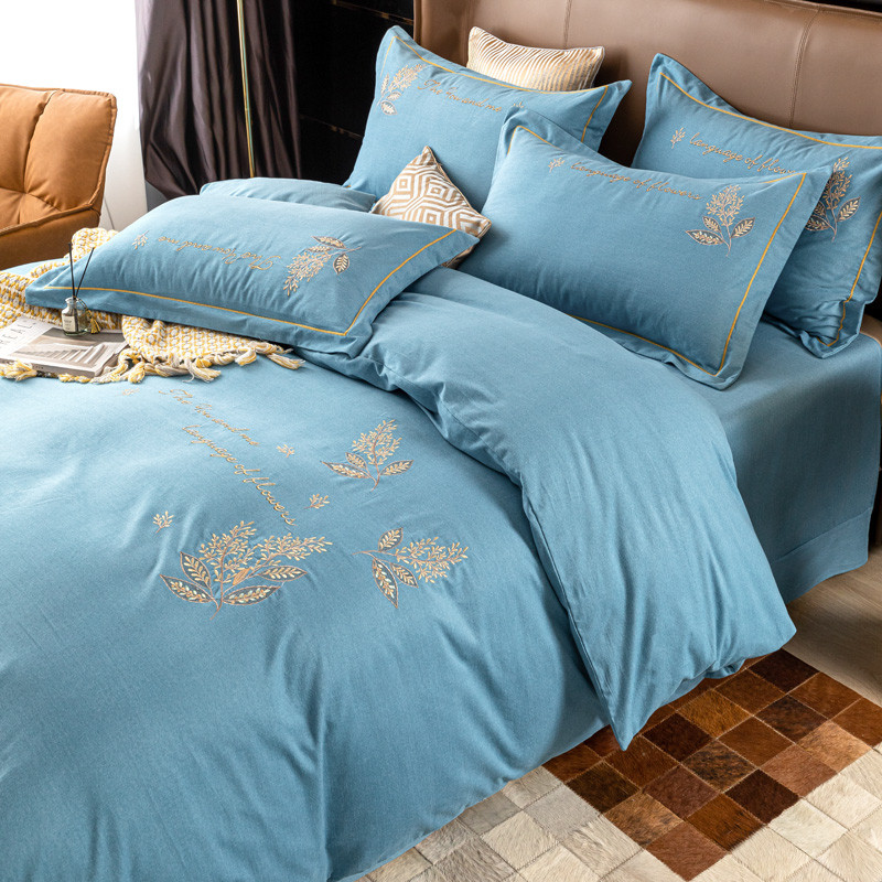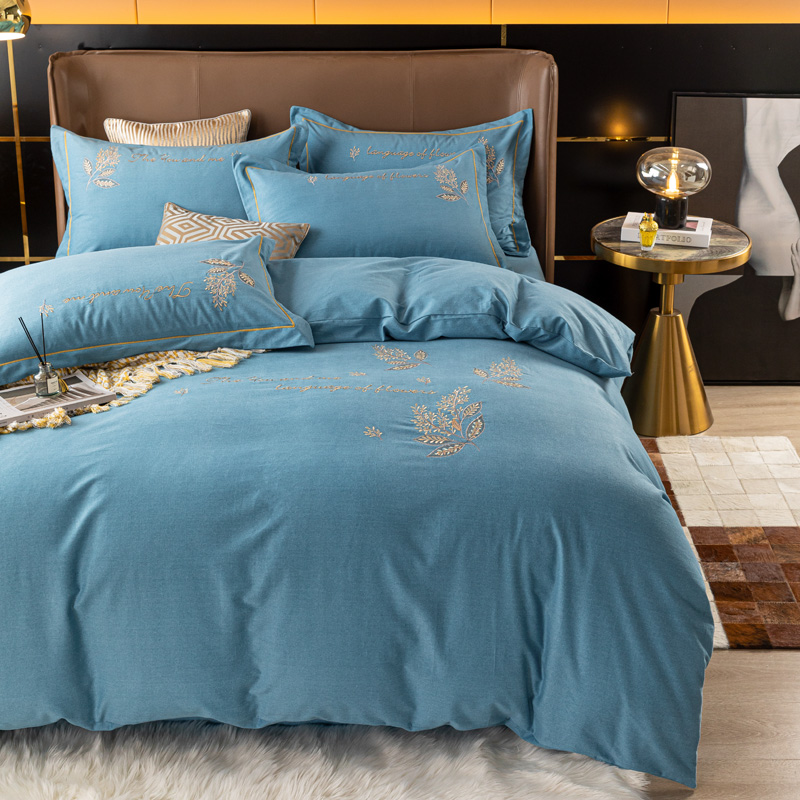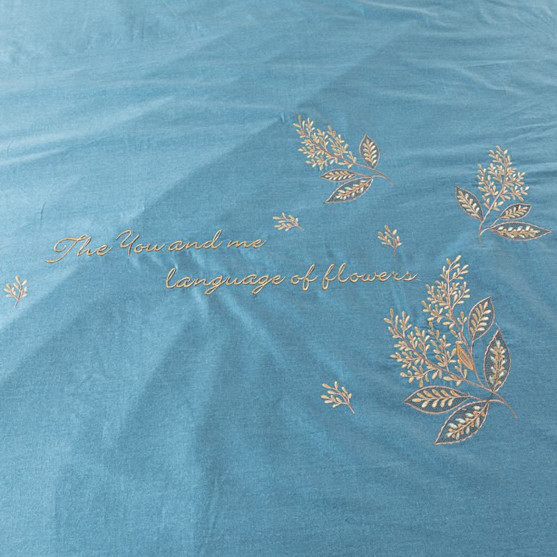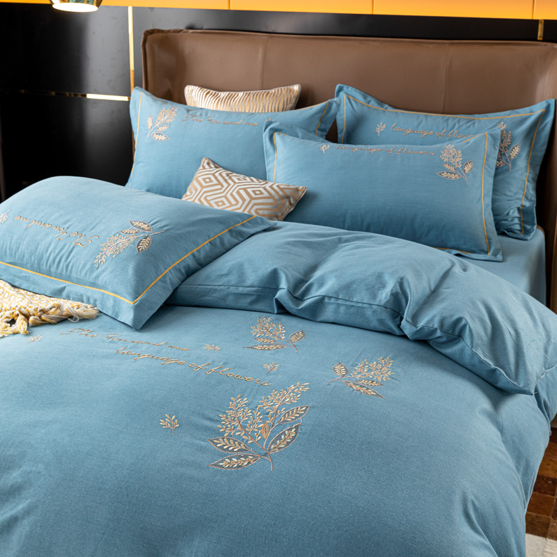 凌鼎 2025新款全棉加厚磨毛绣花四件套-叶语 叶语-宾利蓝