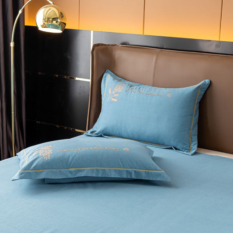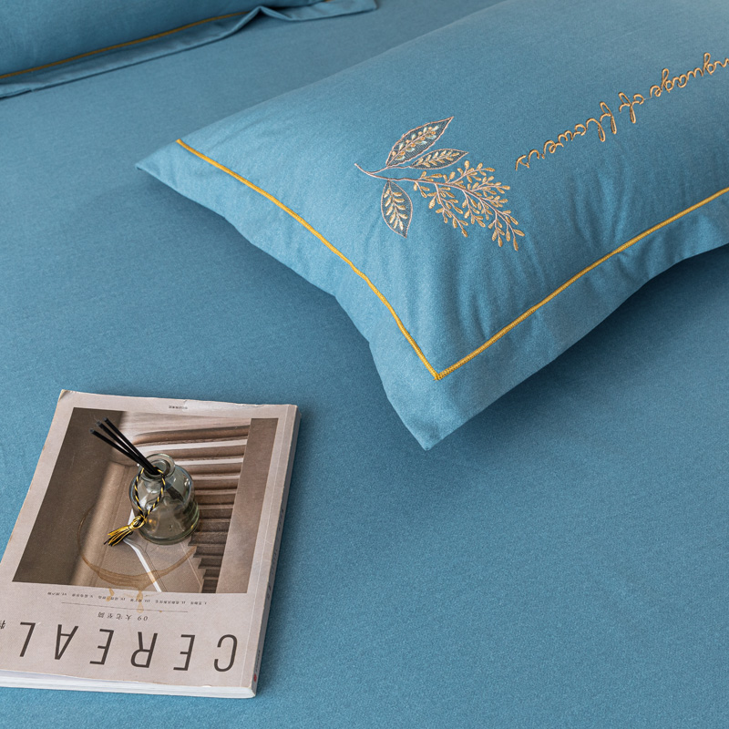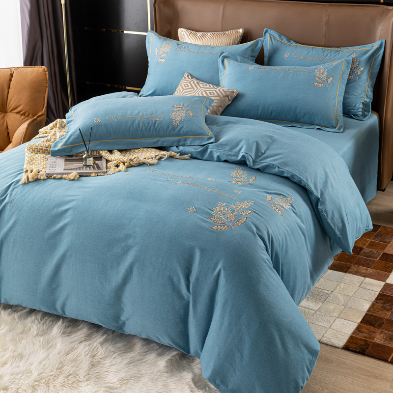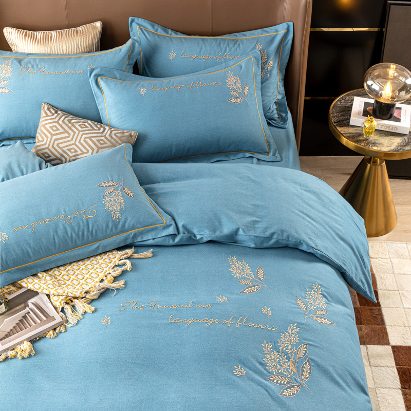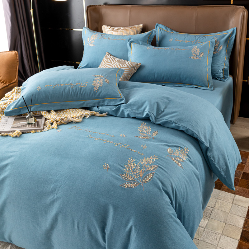 凌鼎 2025新款全棉加厚磨毛绣花四件套-叶语 叶语-宾利蓝