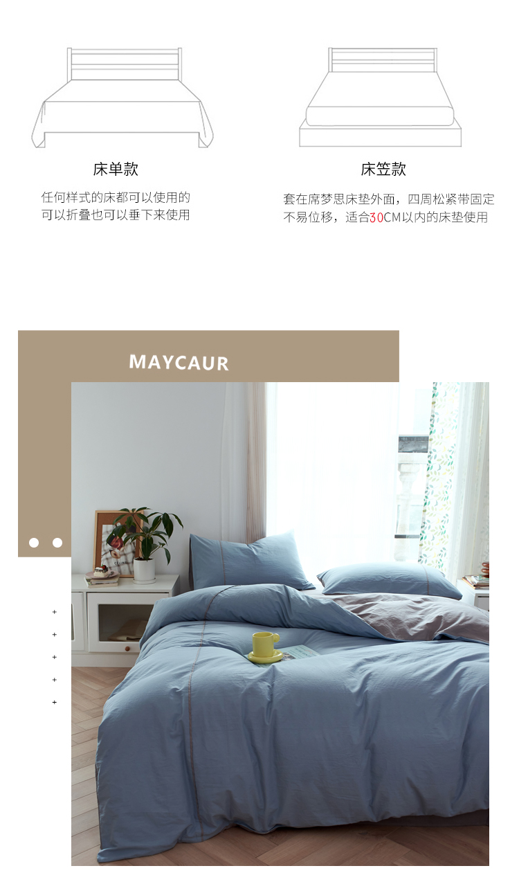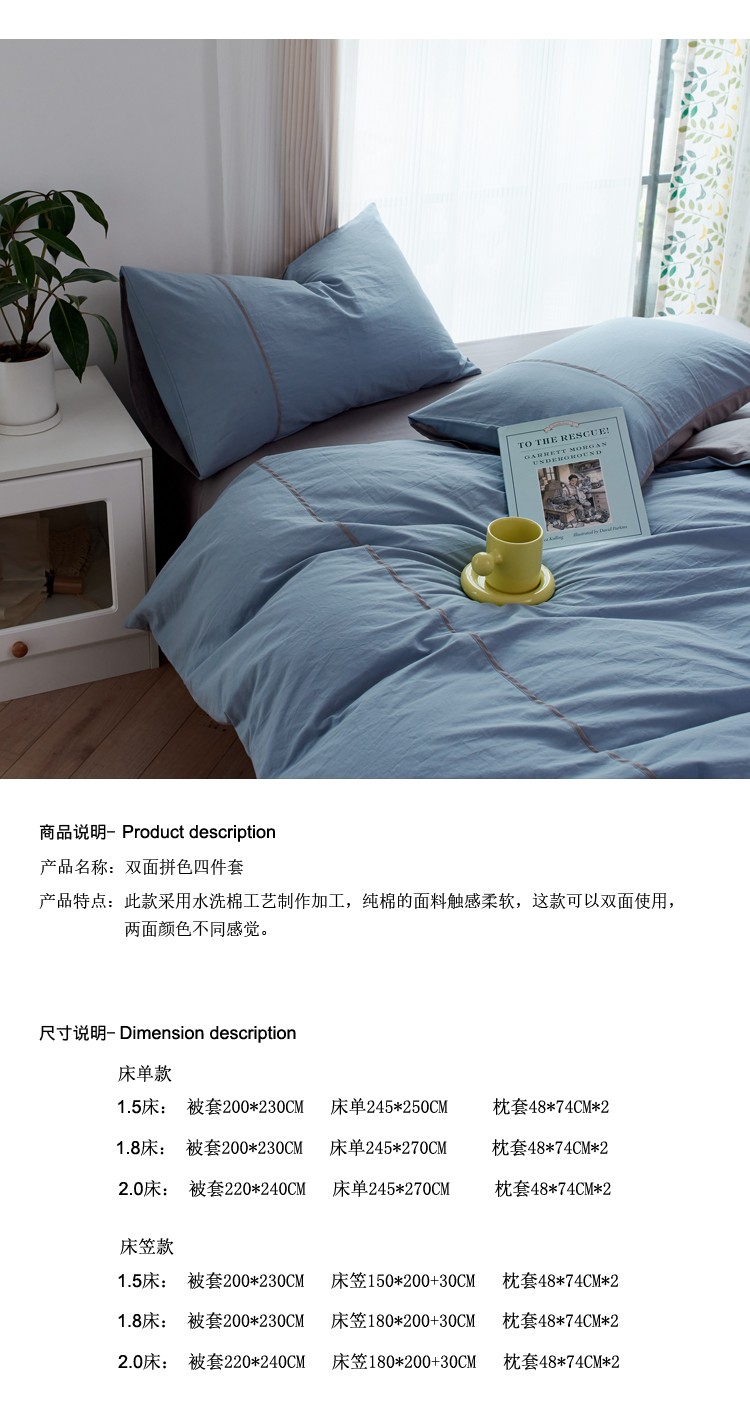 双拼全棉水洗棉纯棉四件套ins简约北欧纯色床笠款套件,双拼白+浅蓝,双拼白+薇薇紫,双拼海蓝+浅蓝,双拼琥珀+鹅黄,双拼焦糖+奶茶,双拼螺旋藻绿+鹅黄,双拼奶茶+鹅黄,双拼牛油果+鹅黄,双拼浅蓝+鹅黄,双拼树莓红+杏仁白,双拼水绿+螺旋藻绿,双拼豌豆青+杏仁白,双拼杏仁白+螺旋藻绿,薇薇紫+杏仁白,浅灰+杏仁白,双拼藏青+浅灰,双拼花青灰+浅灰,双拼霁色+浅灰