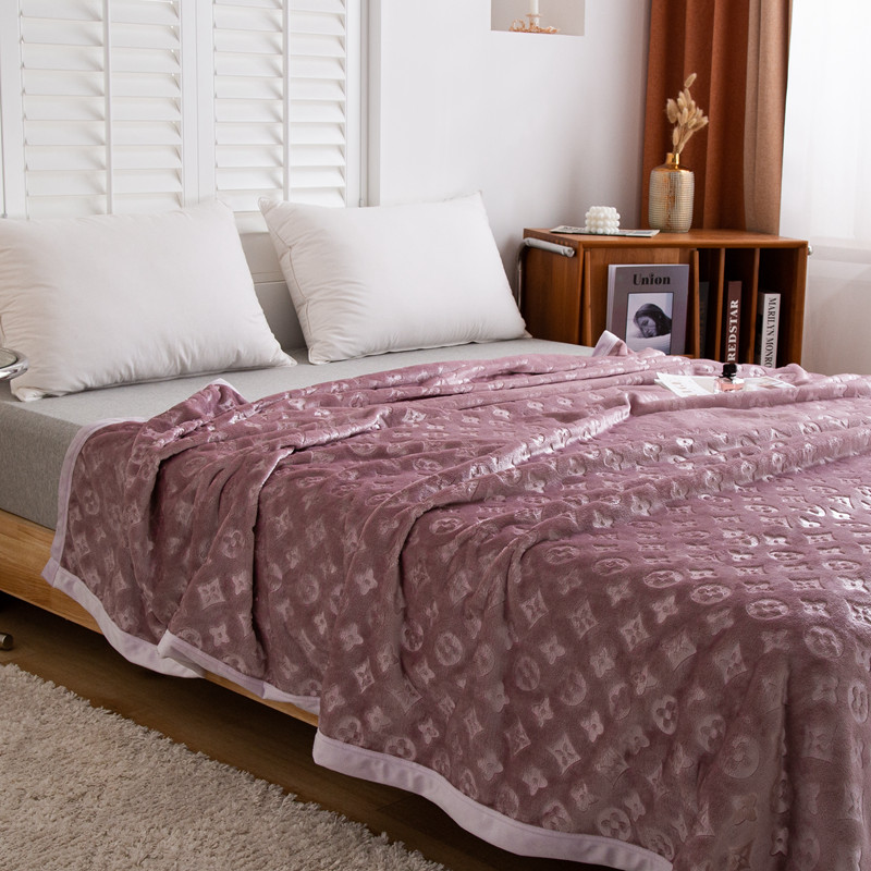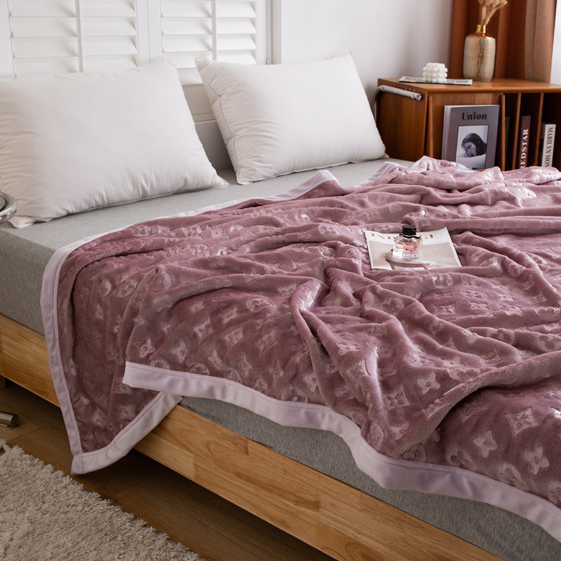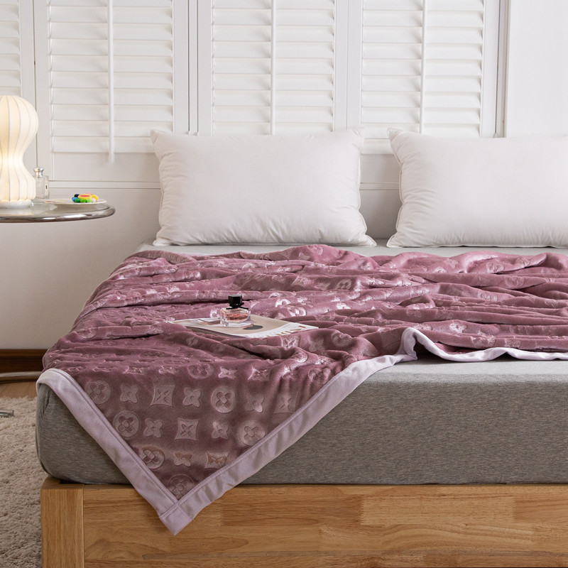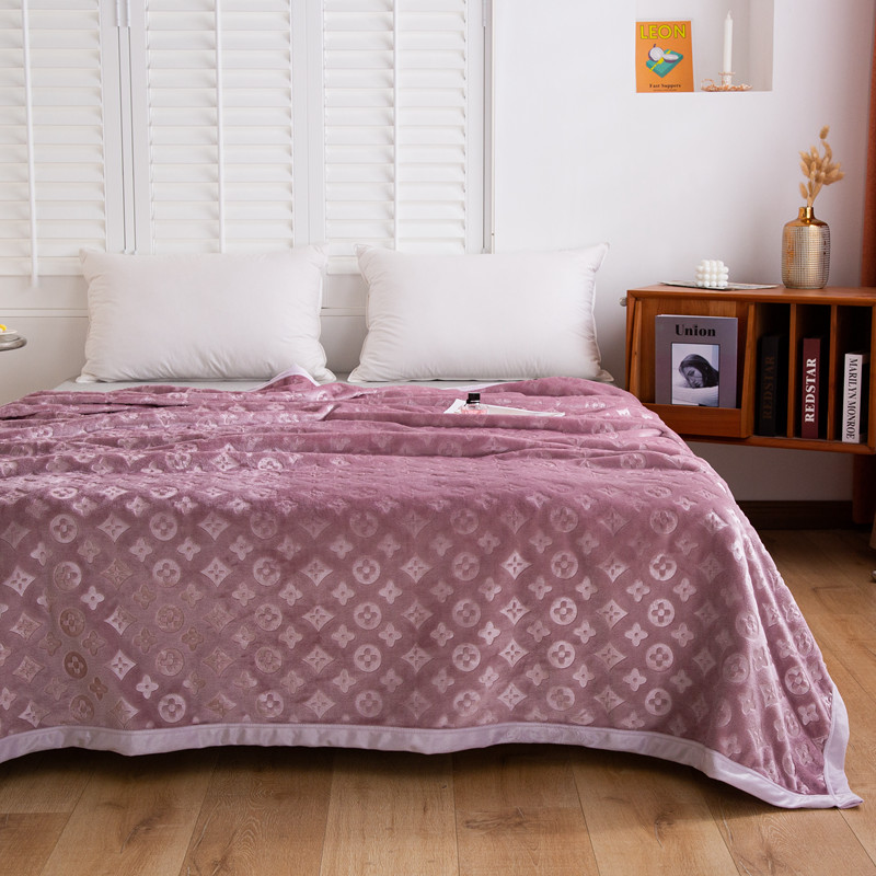 来菲毛毯 25新款400克3D压花立体毛毯3D豆沙加厚压花绒毯外贸超厚
