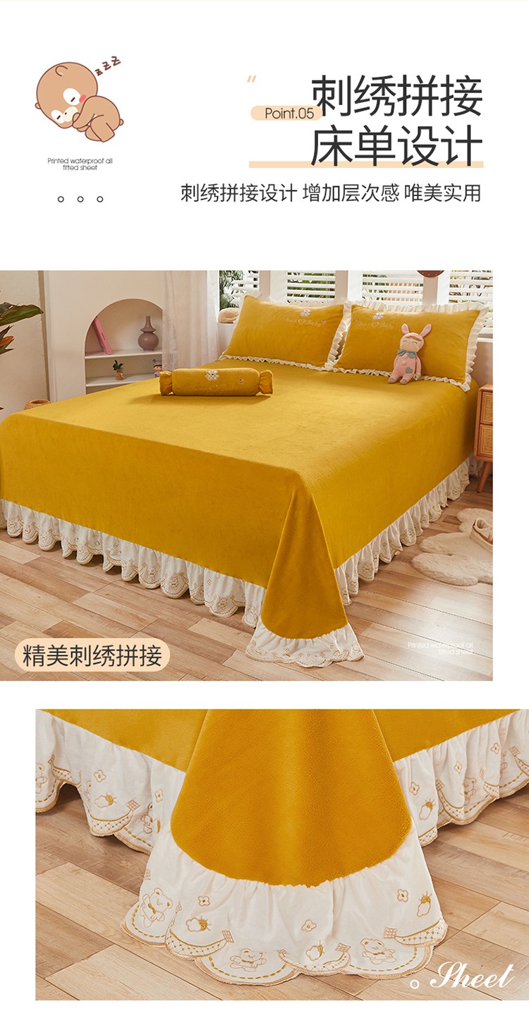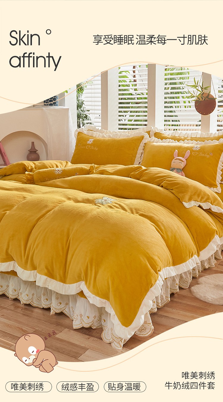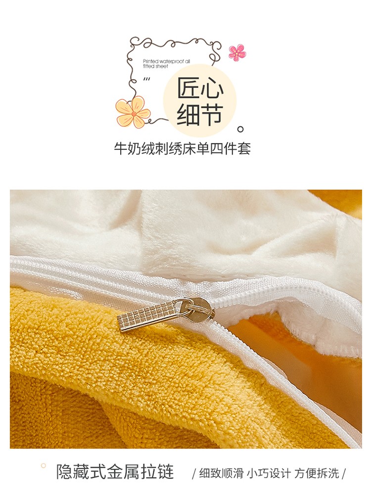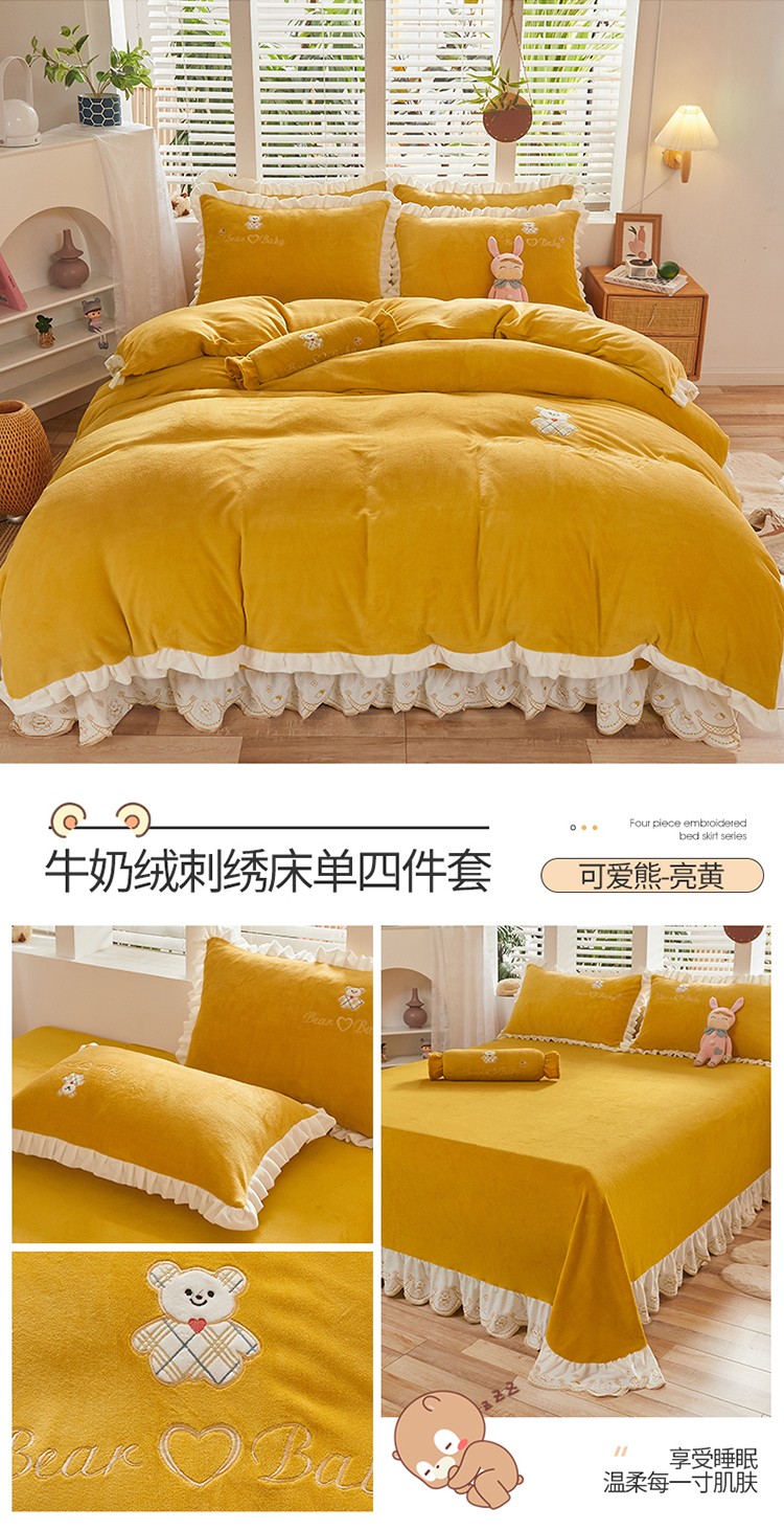 宜凡家纺 2021新款牛奶绒绣花熊床单四件套 可爱熊-亮黄