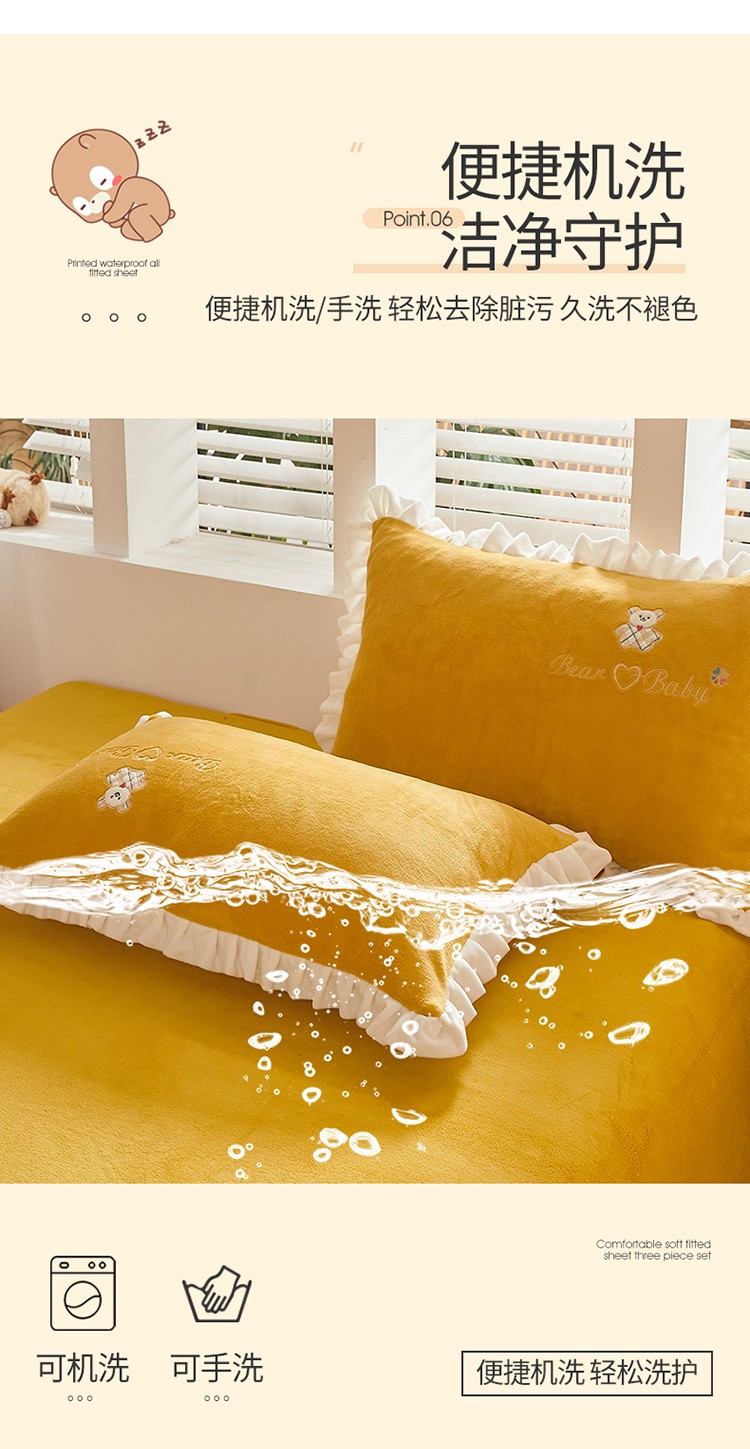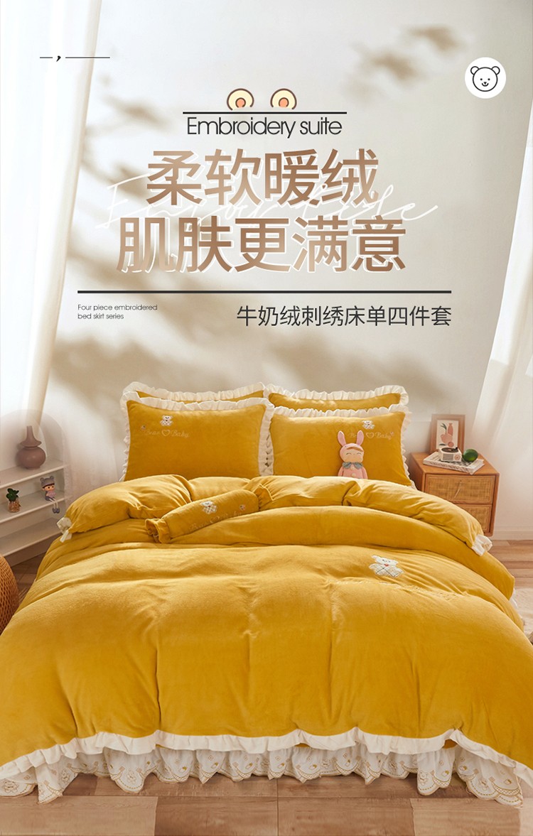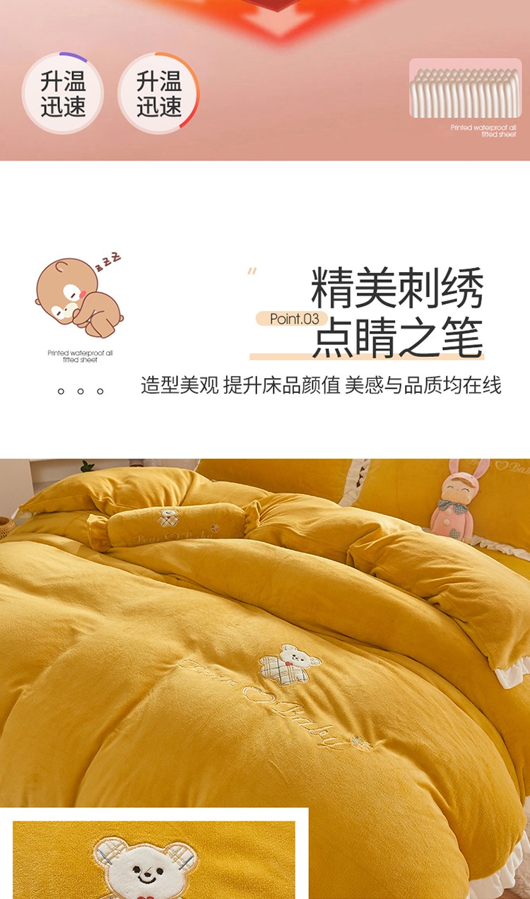 商品名称:宜凡家纺 2021新款牛奶绒绣花熊床单四件套 可爱熊-亮黄