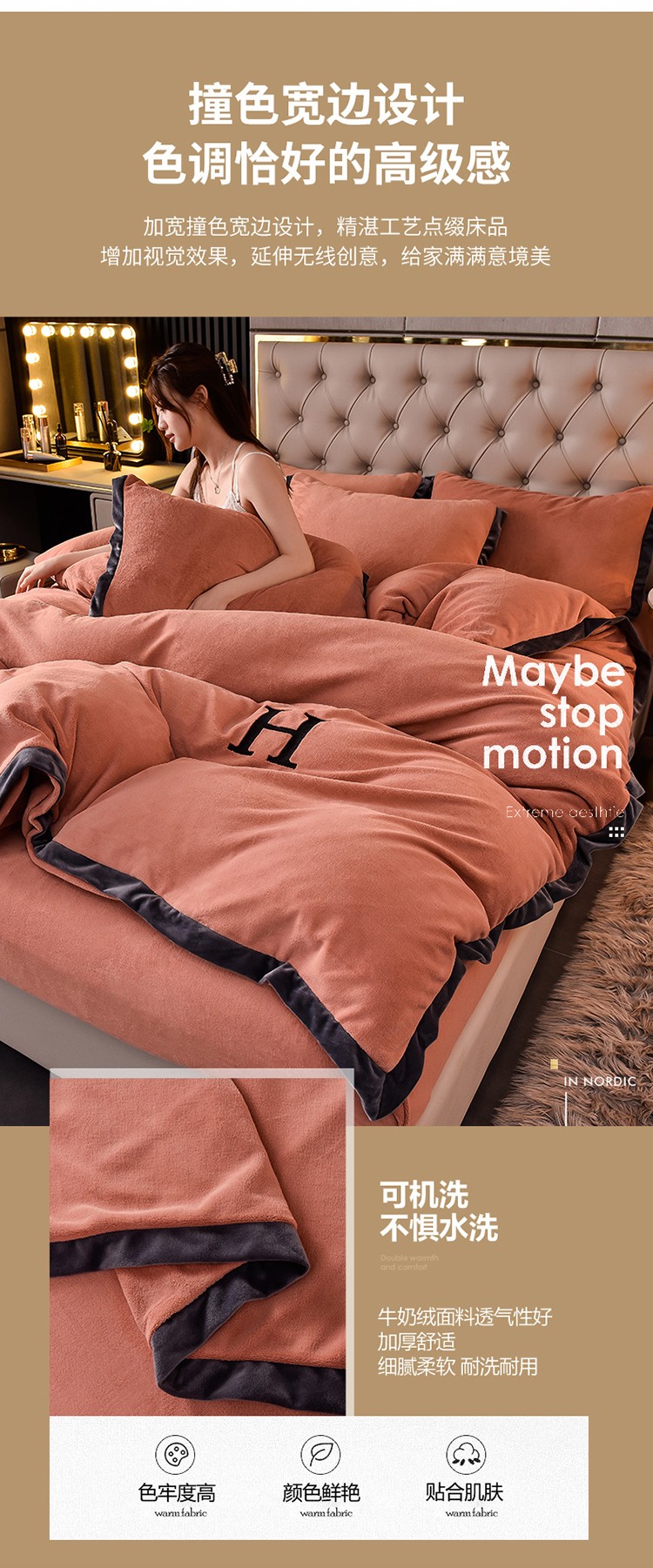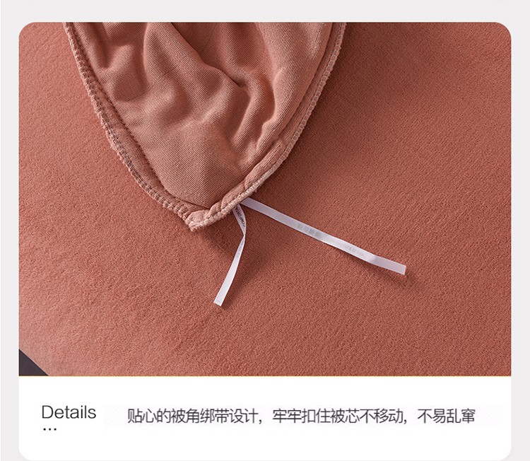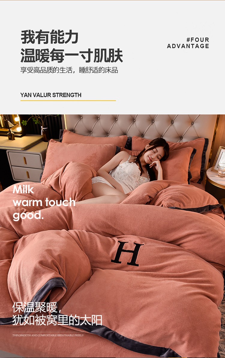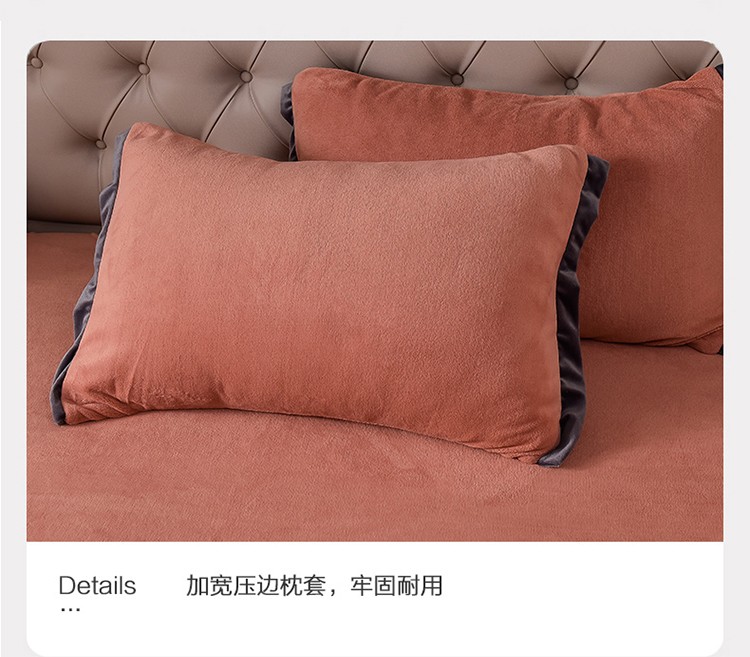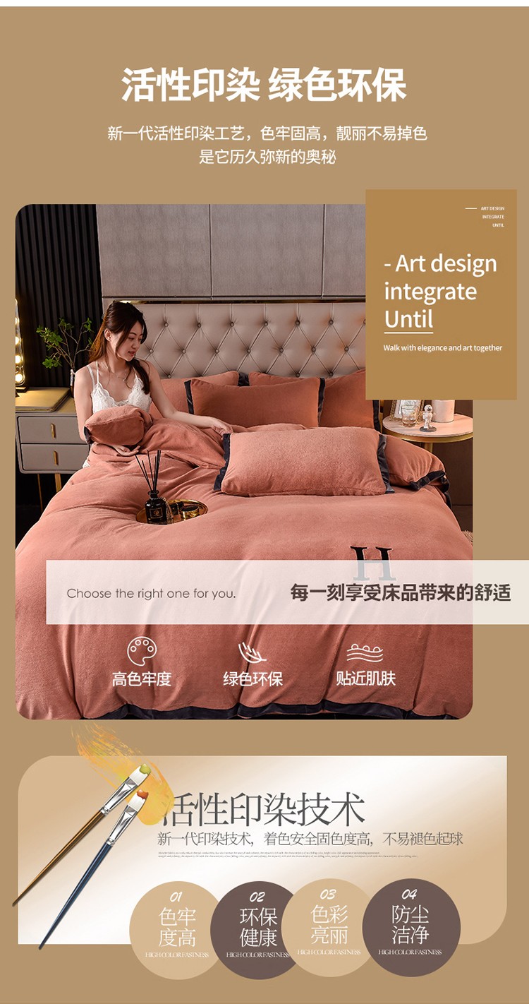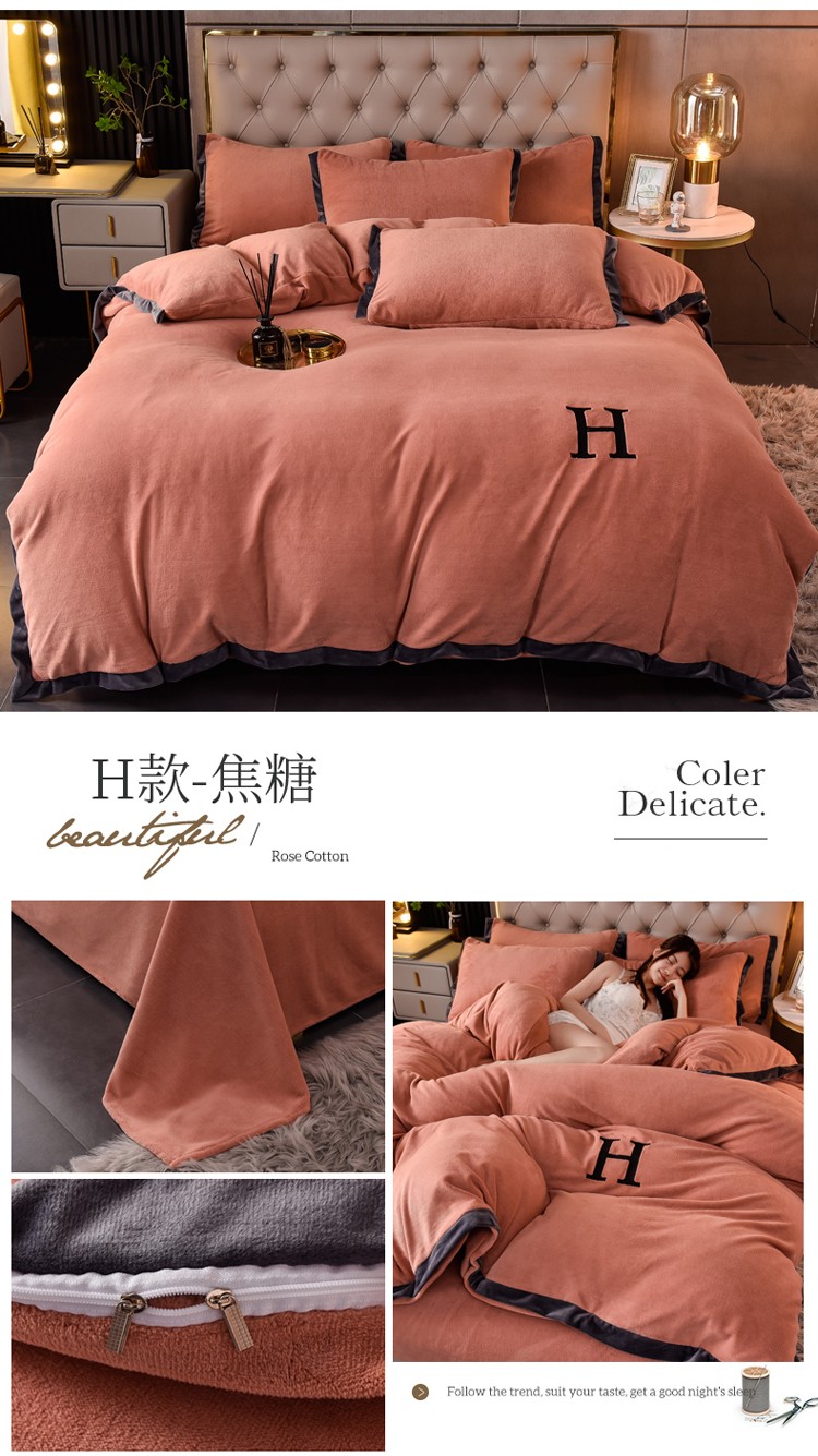 商品名称:简爱家纺2025款高克重牛奶绒拼角工艺四件套 H款-焦糖