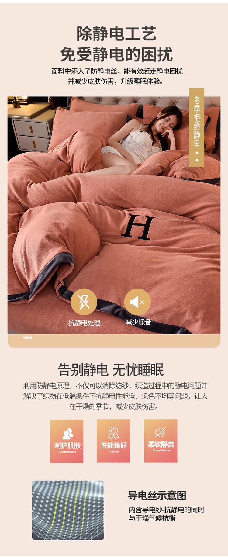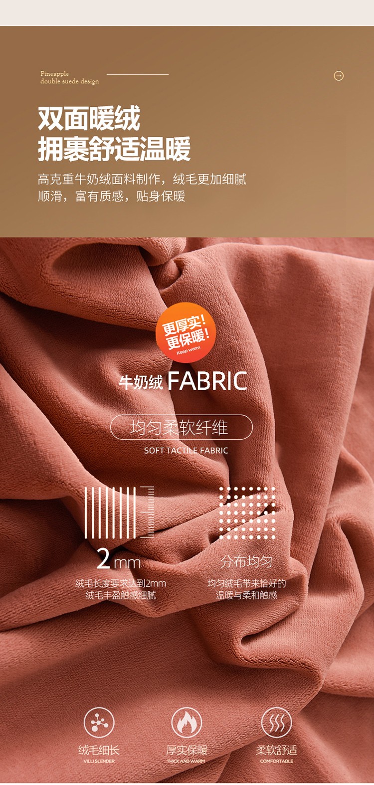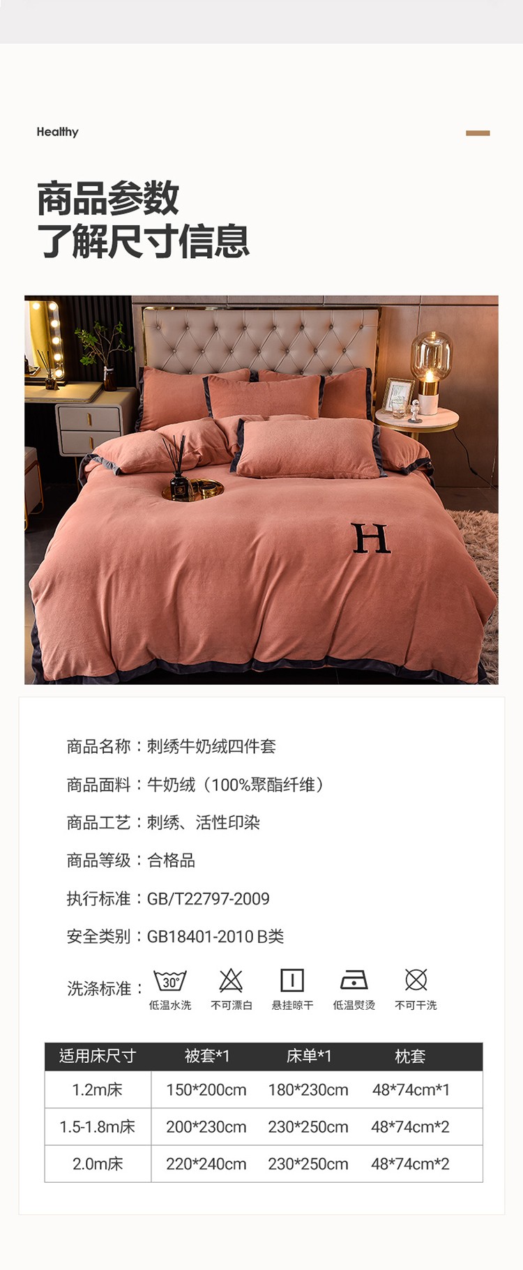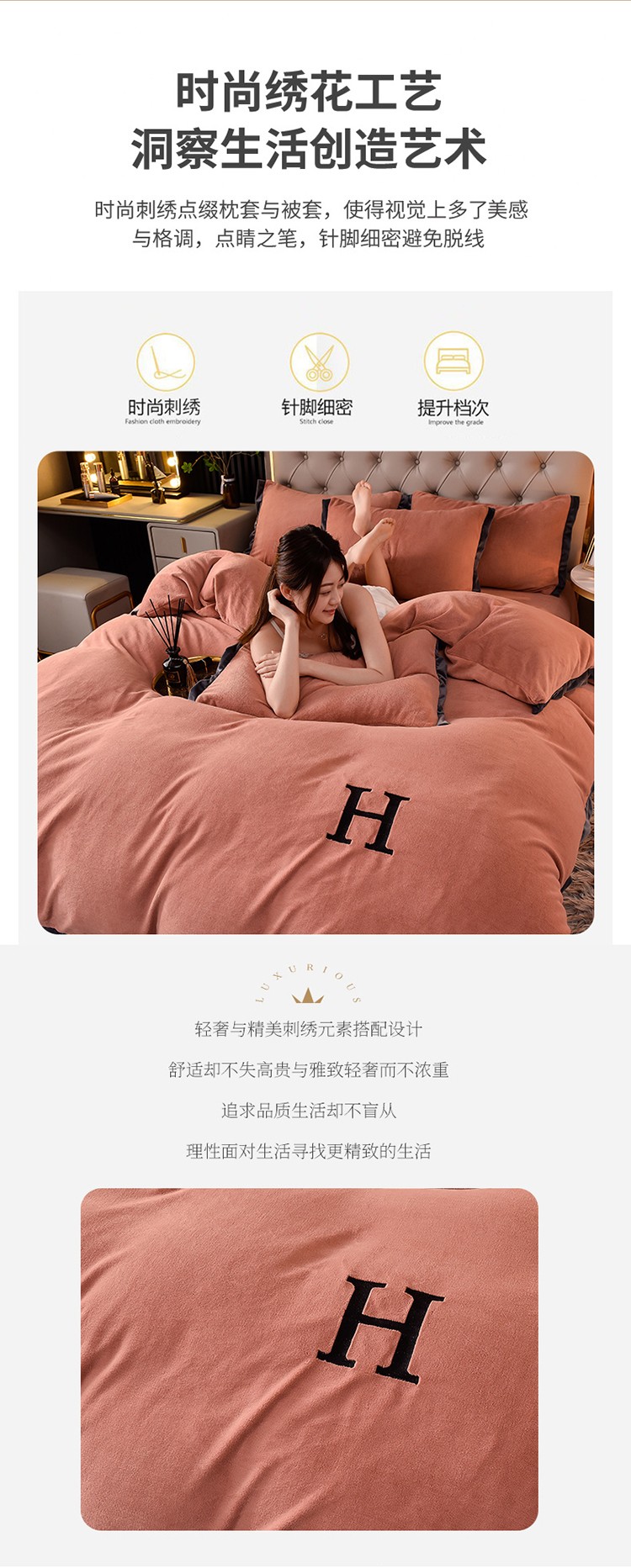商品名称:简爱家纺2025款高克重牛奶绒拼角工艺四件套 H款-焦糖
