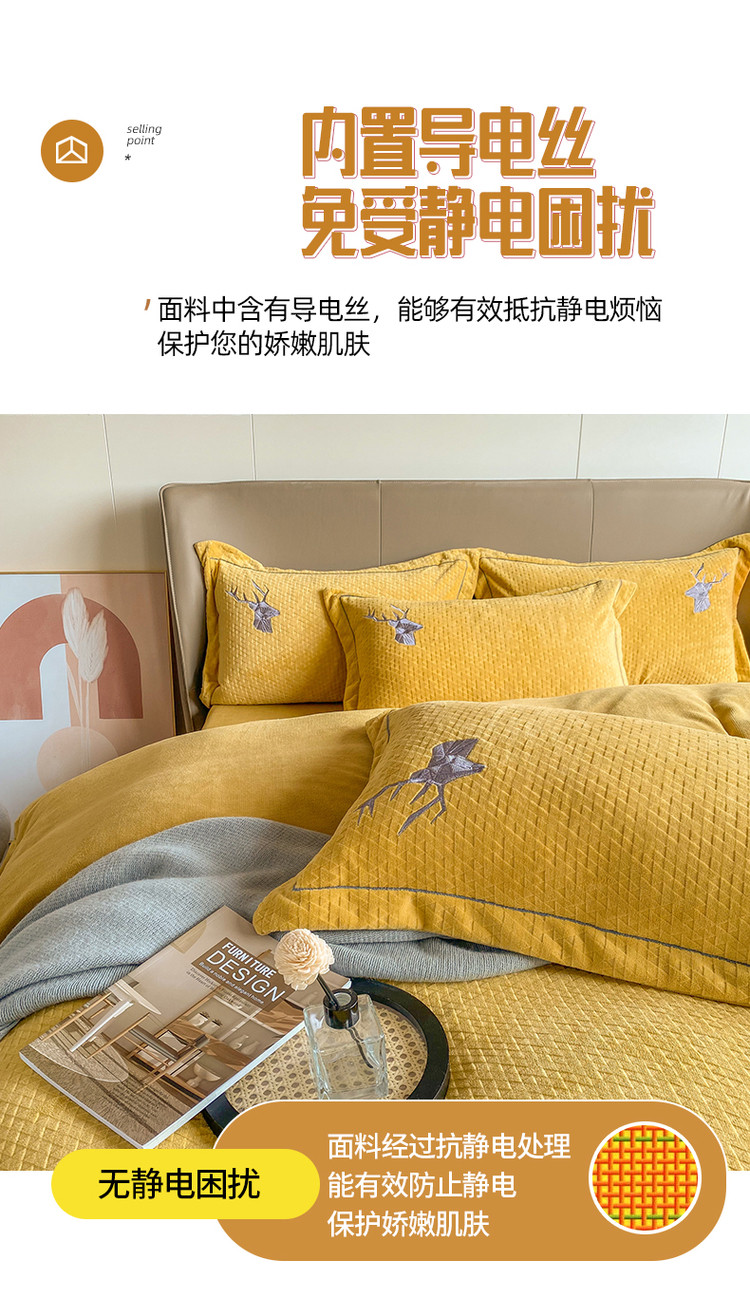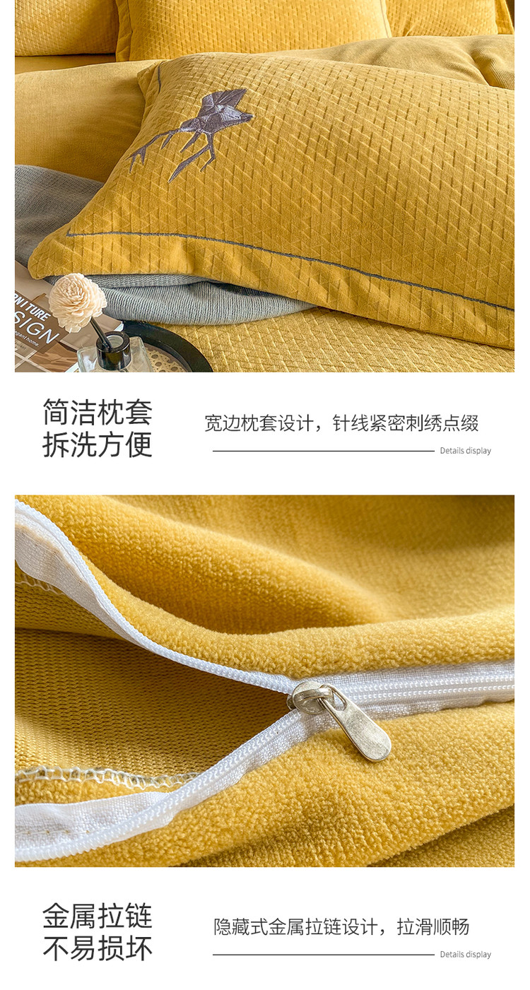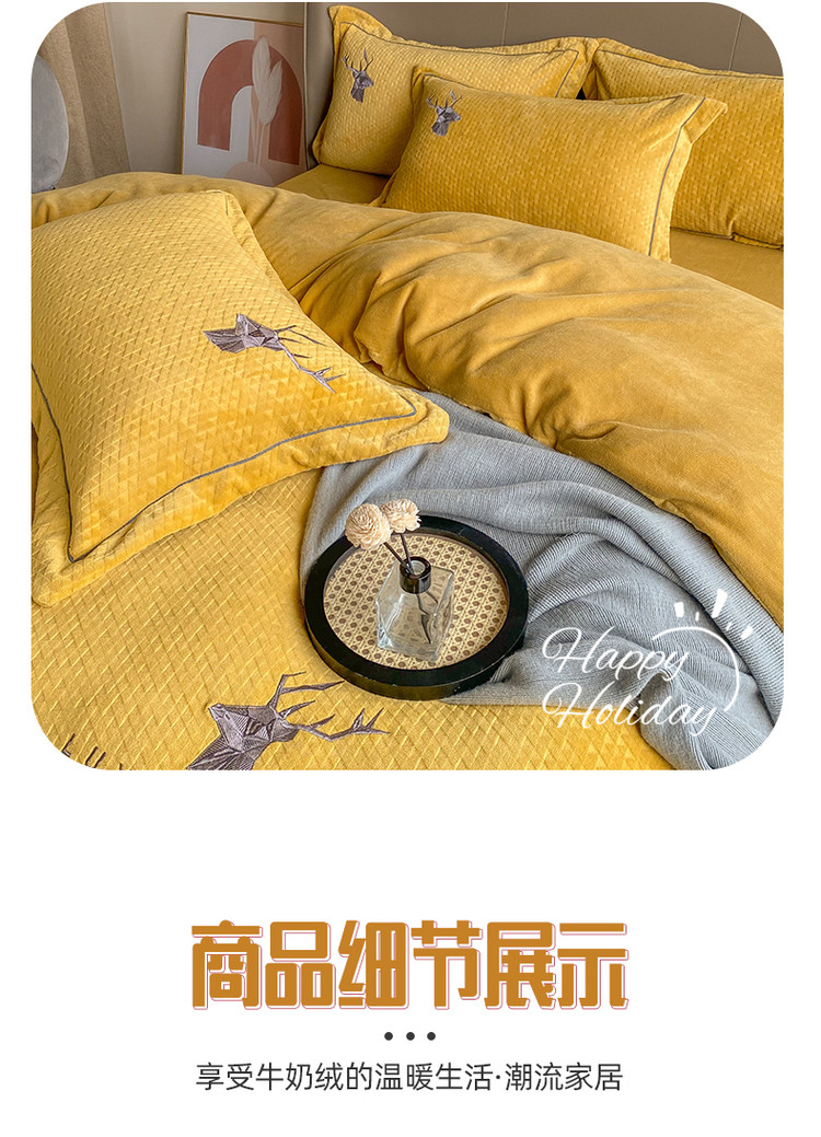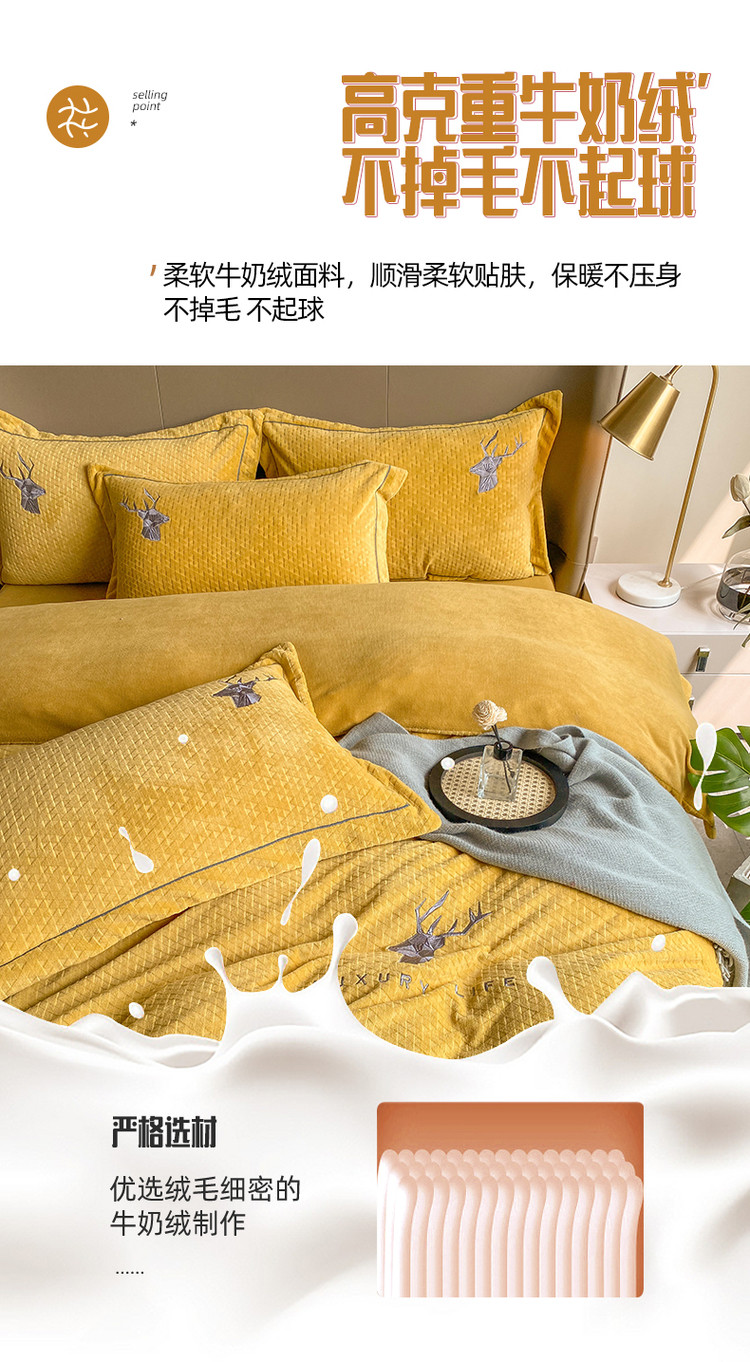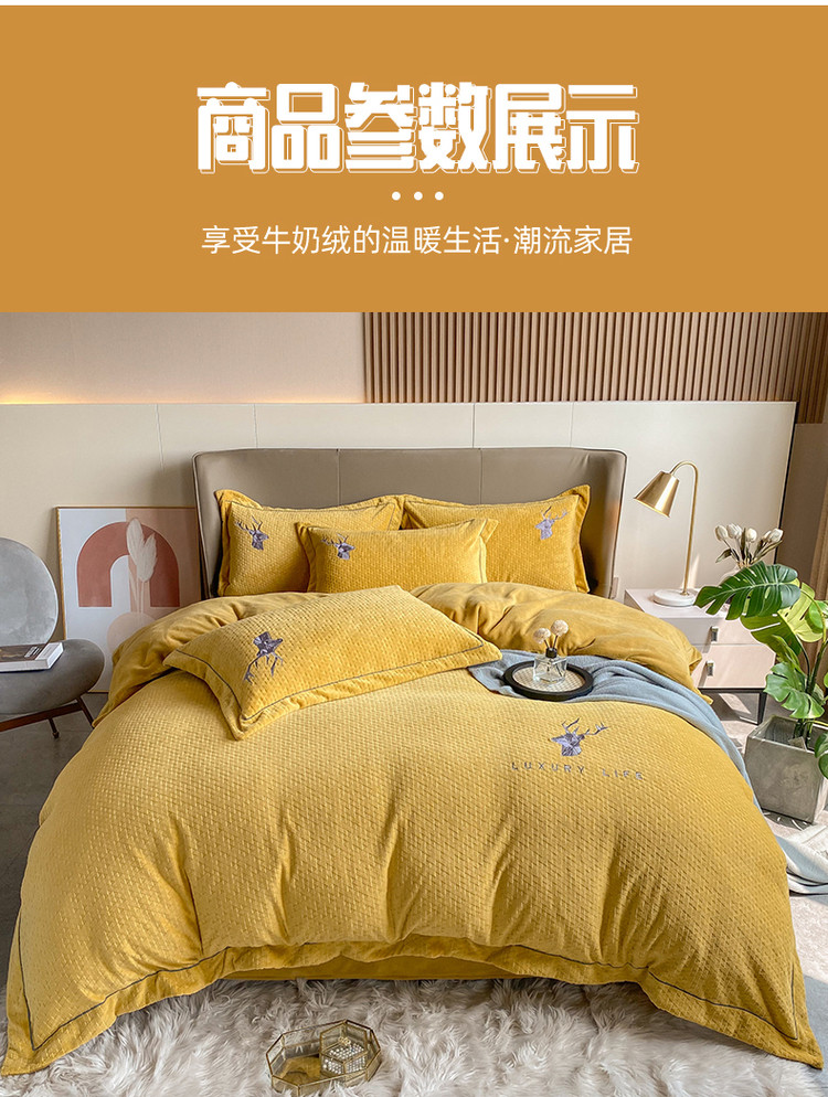 商品名称:棉生活家纺 2021新款牛奶绒雕花刺绣四件套 野格-黄