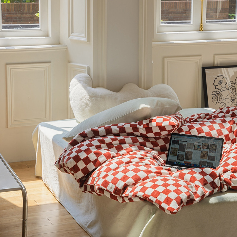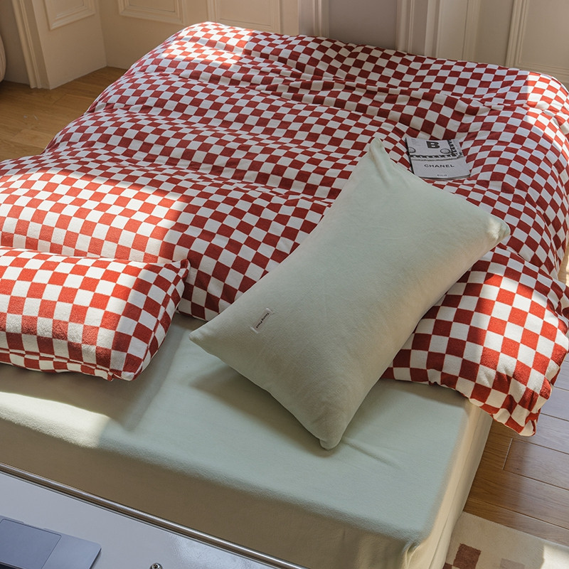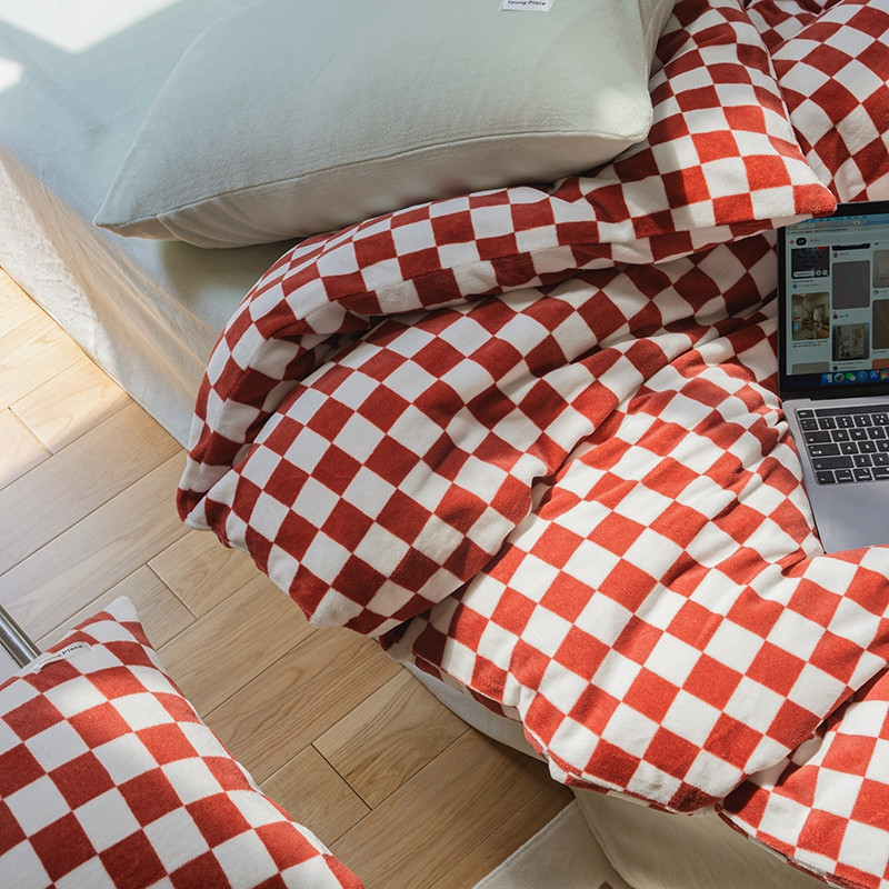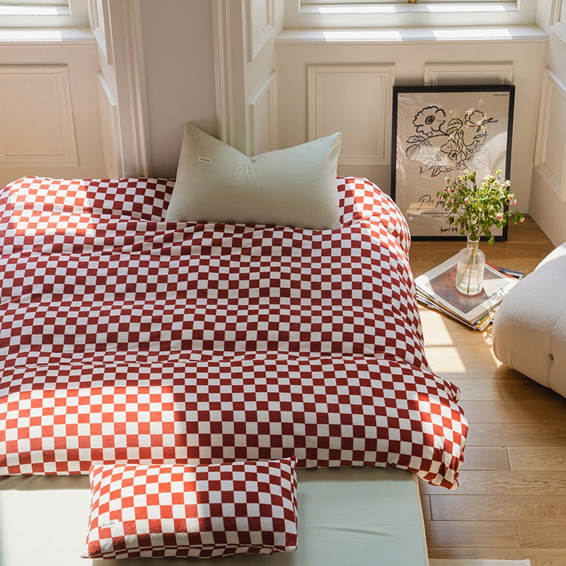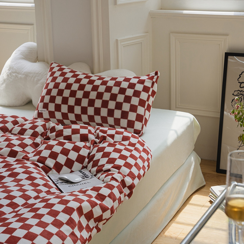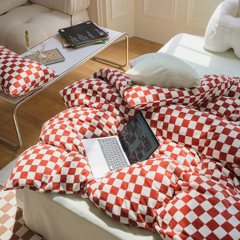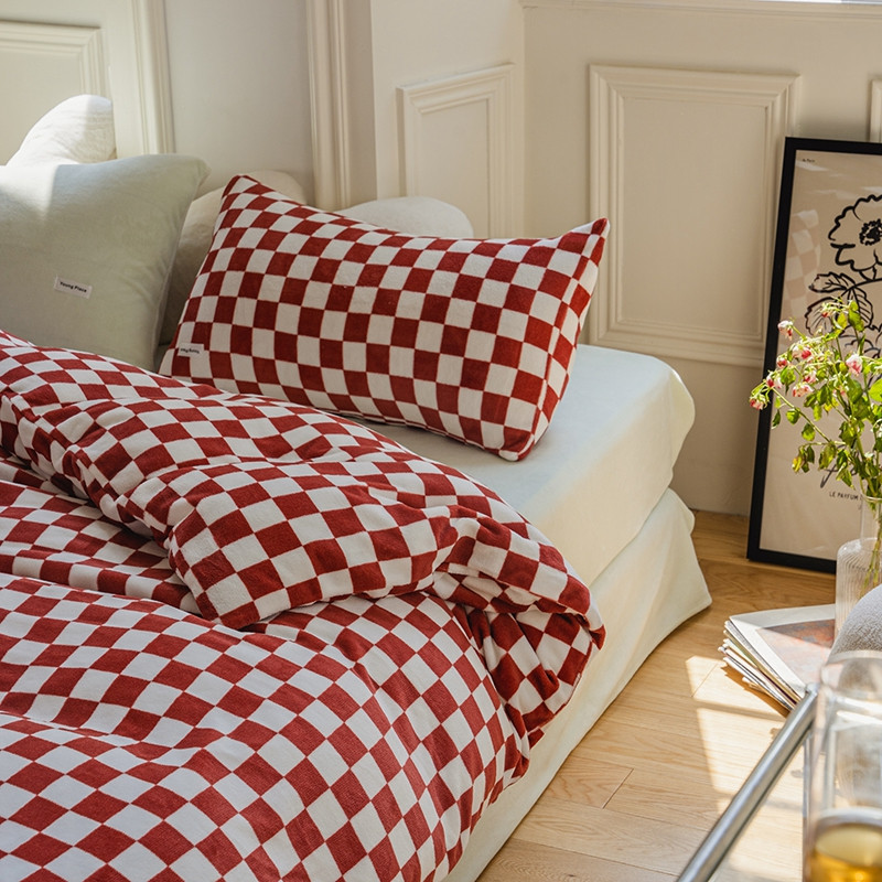 洋铭区 2021冬季新品棋盘格牛奶绒四件套 初恋红格