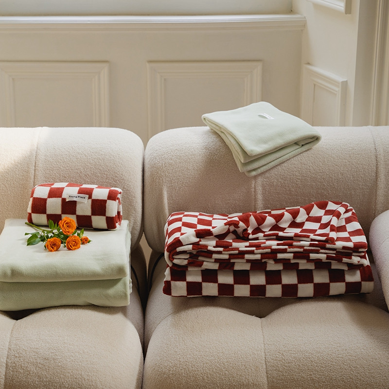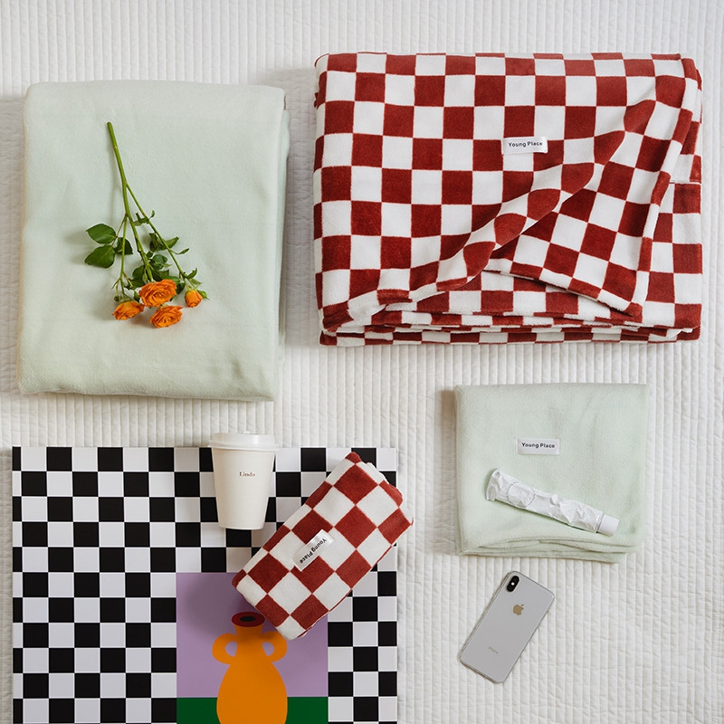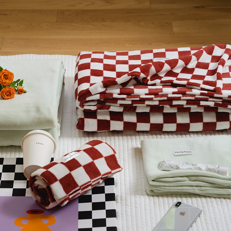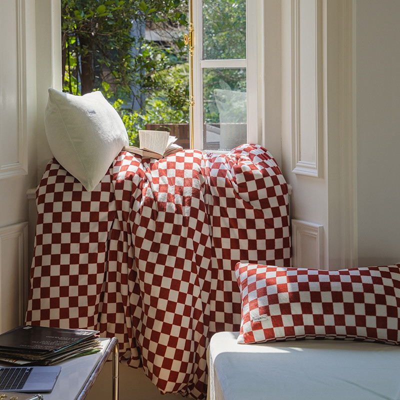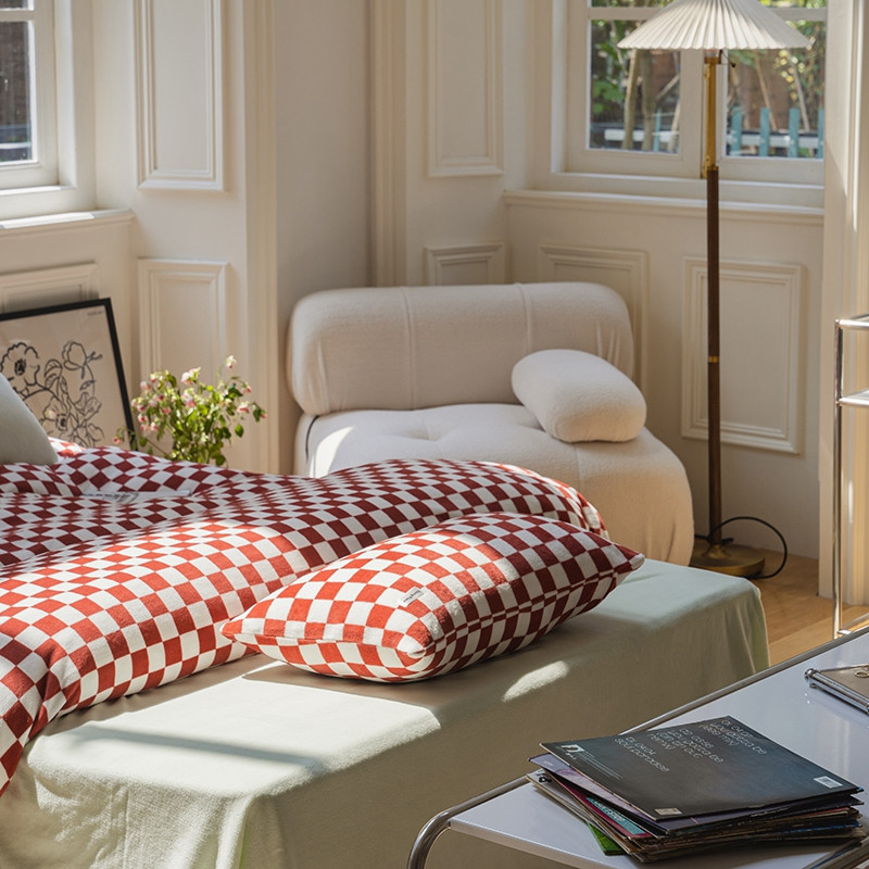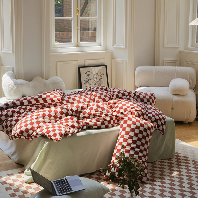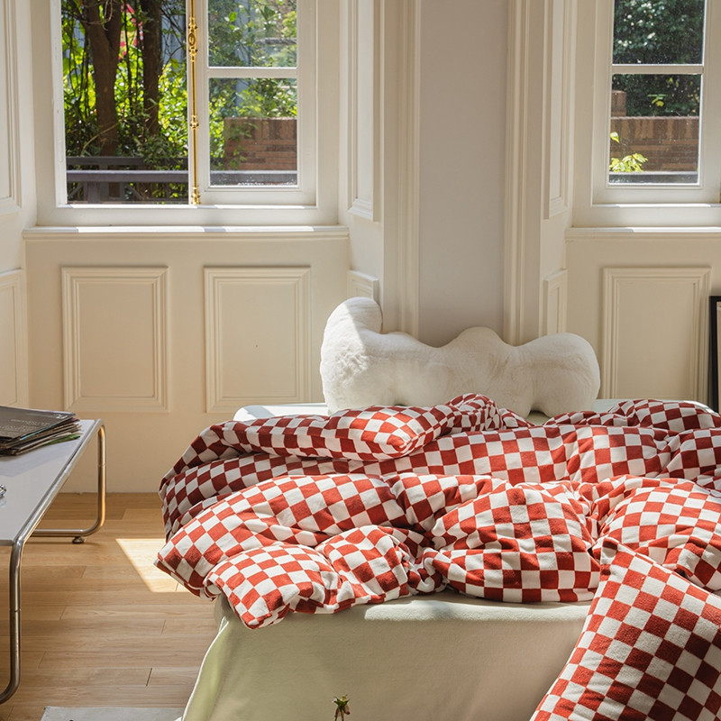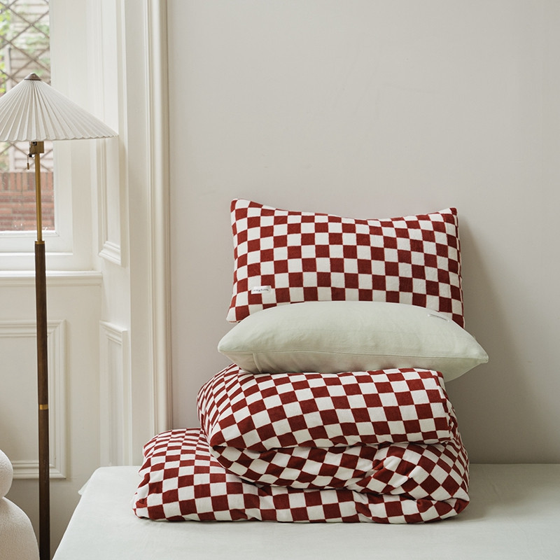洋铭区 2021冬季新品棋盘格牛奶绒四件套 初恋红格
