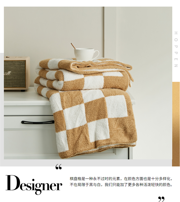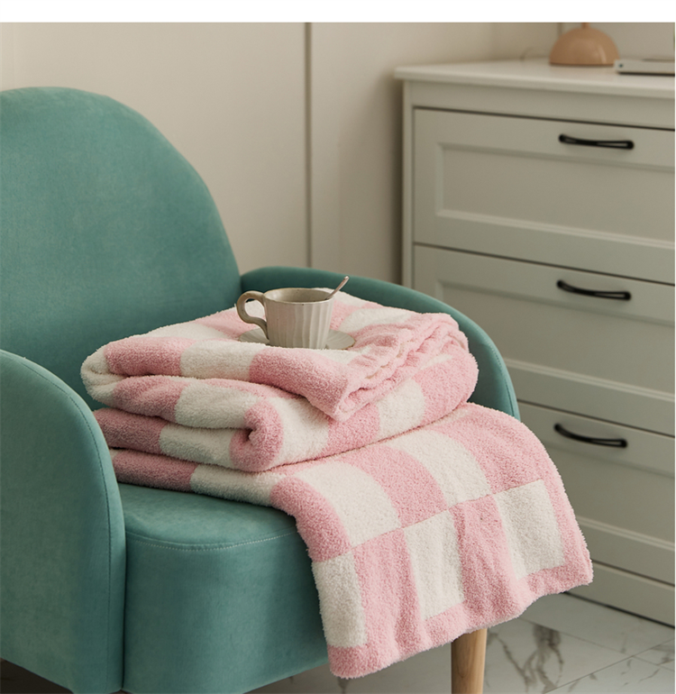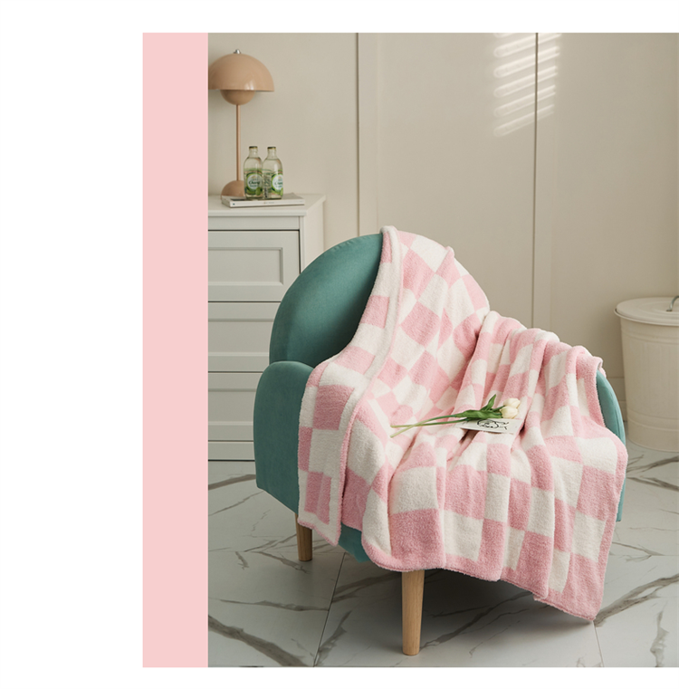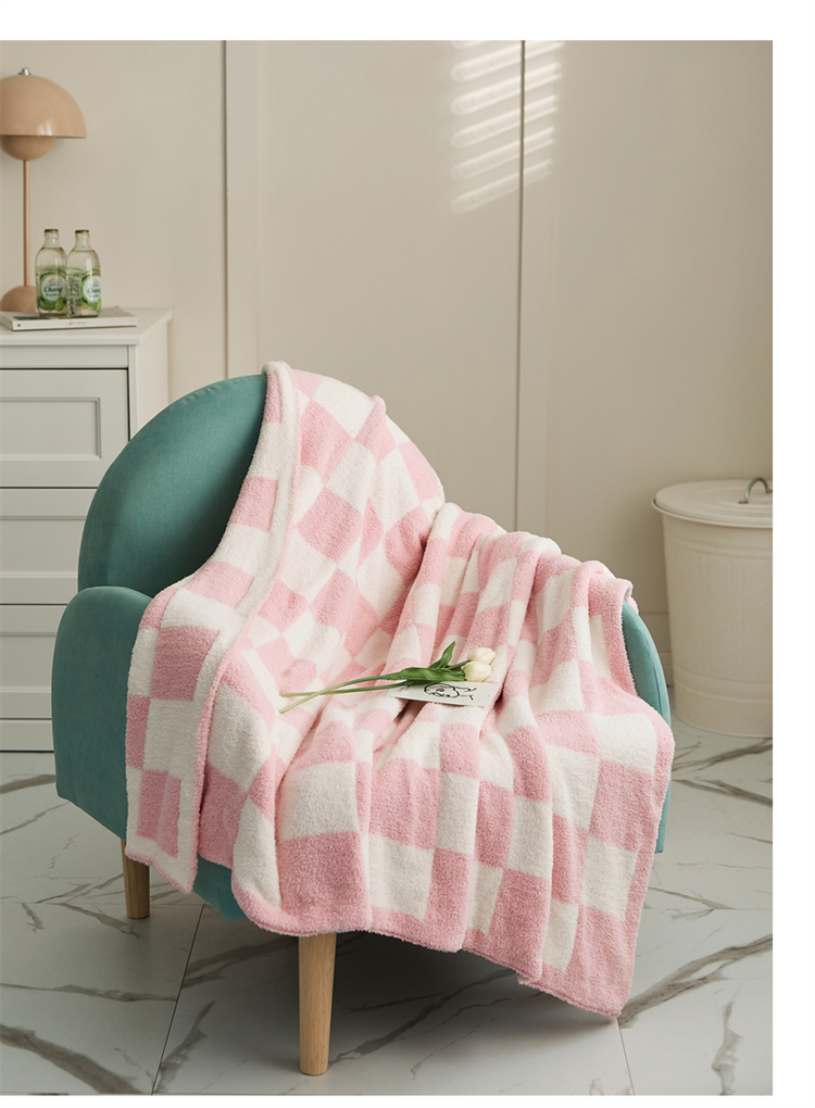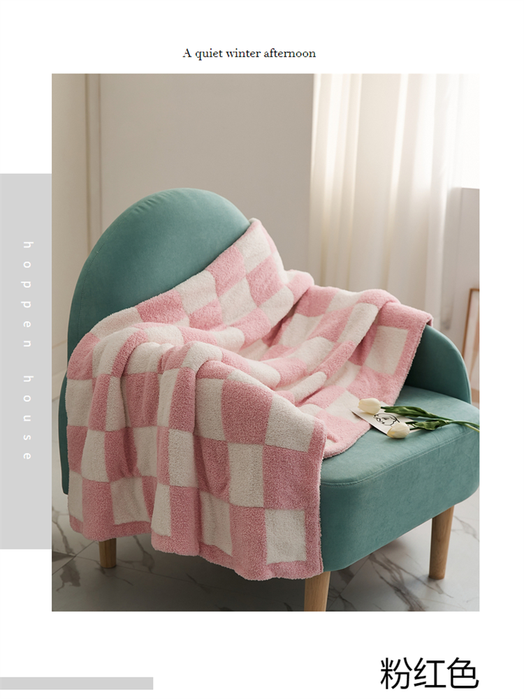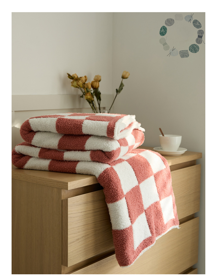 暖绵绵家纺 新款半边绒盖毯系列-棋盘格 西瓜红