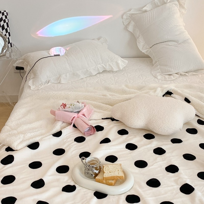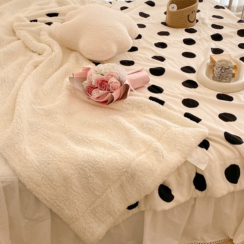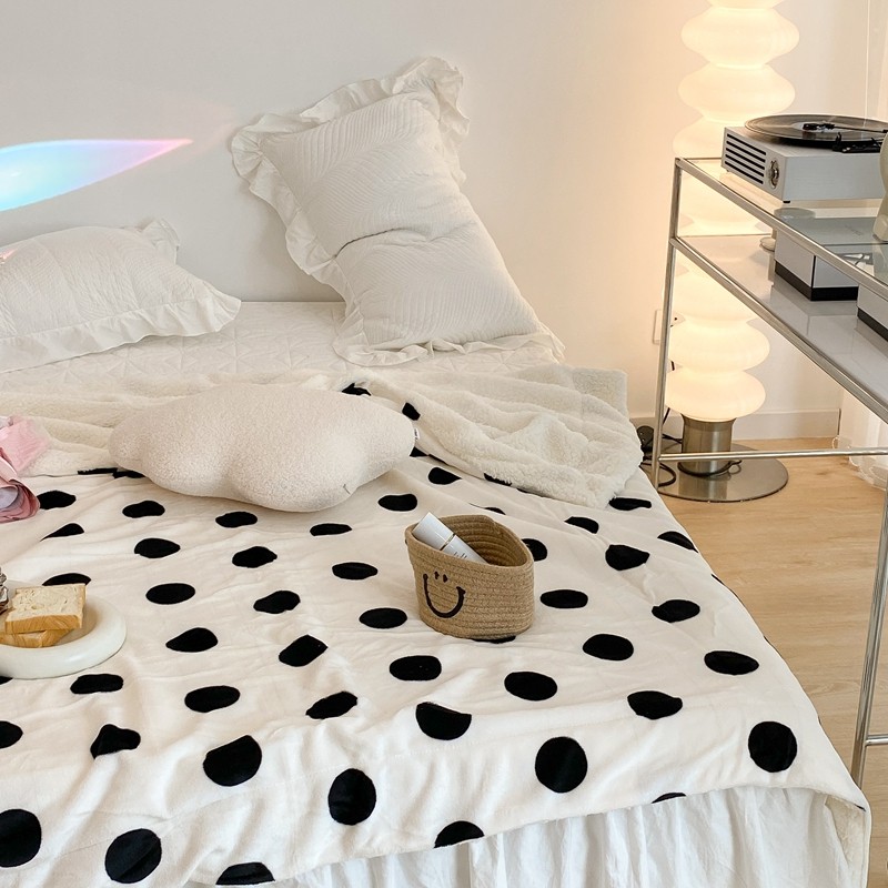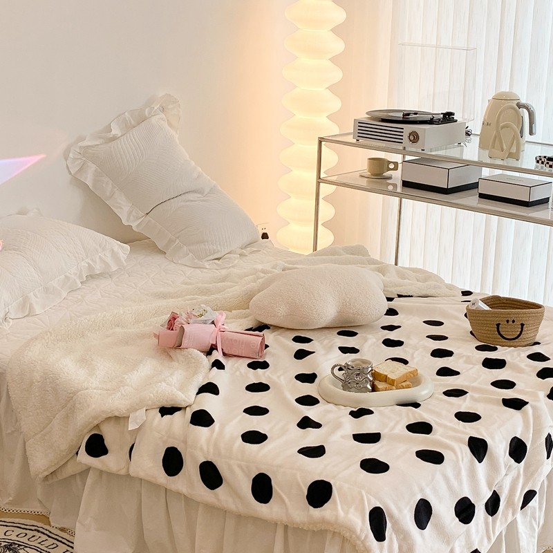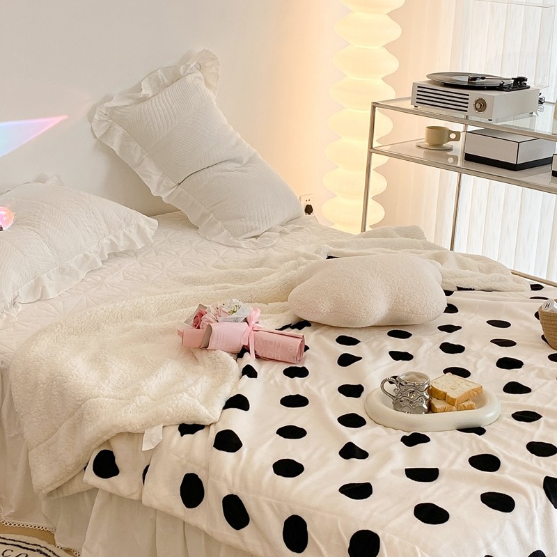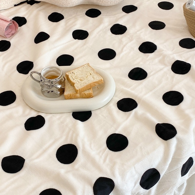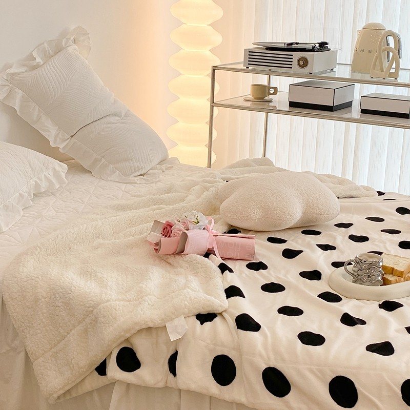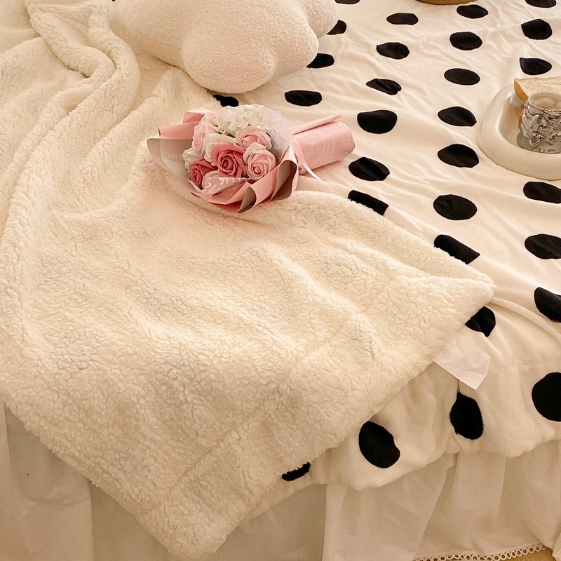 昔可家纺 2021新款牛奶羊羔绒印花毯 白波点