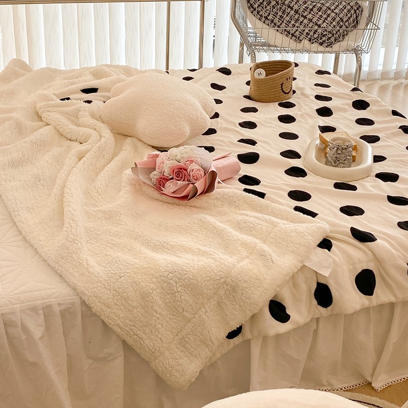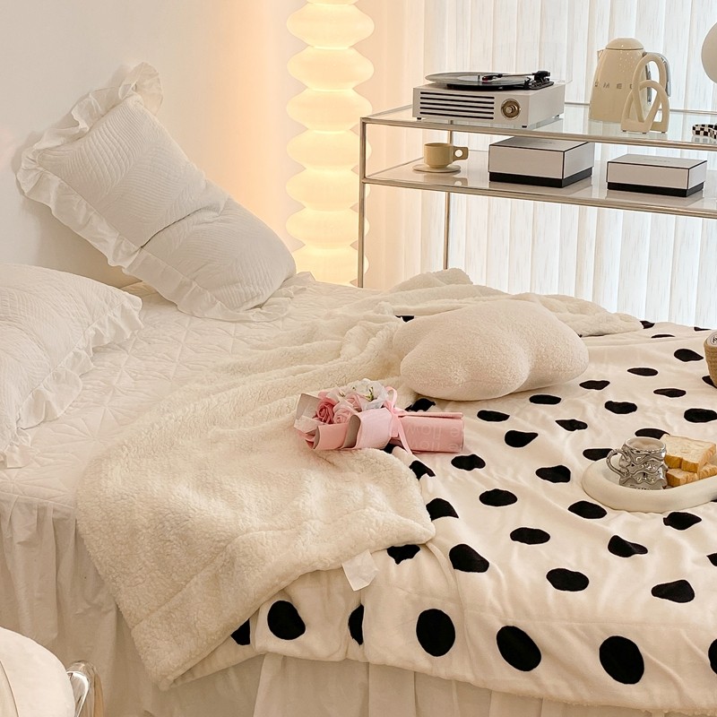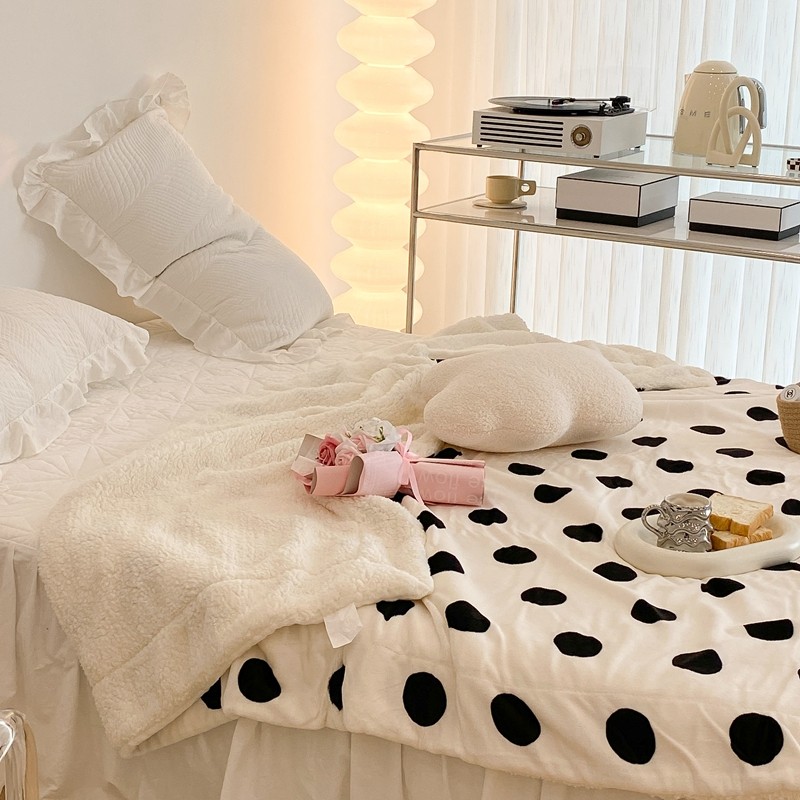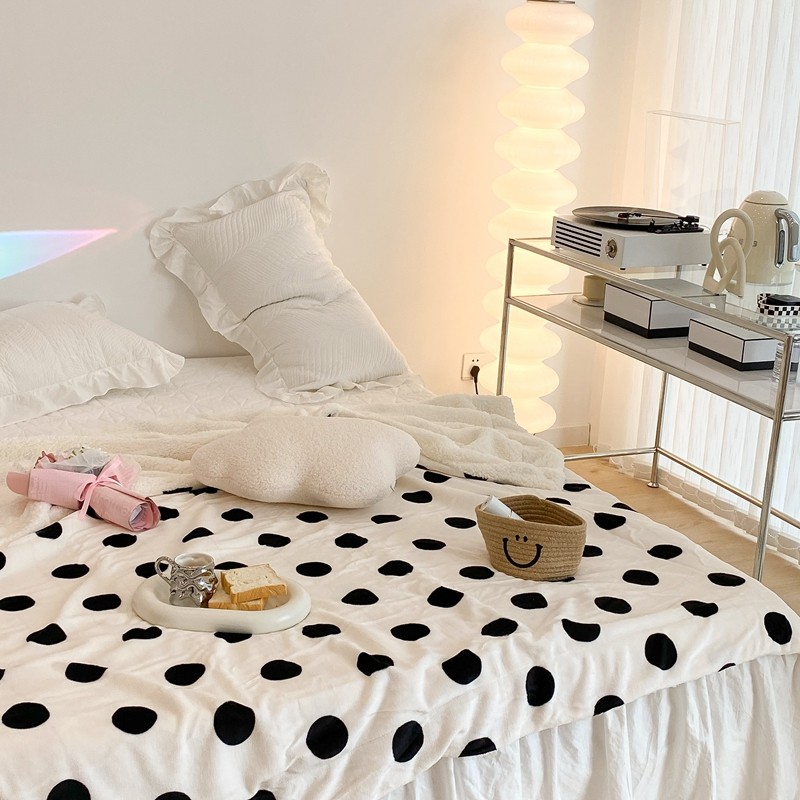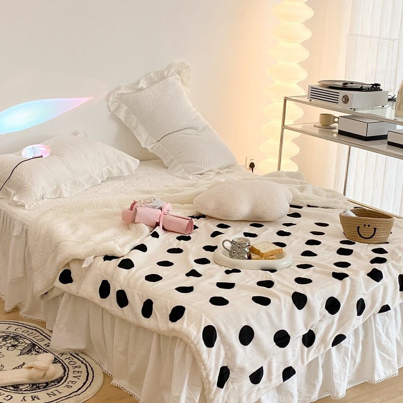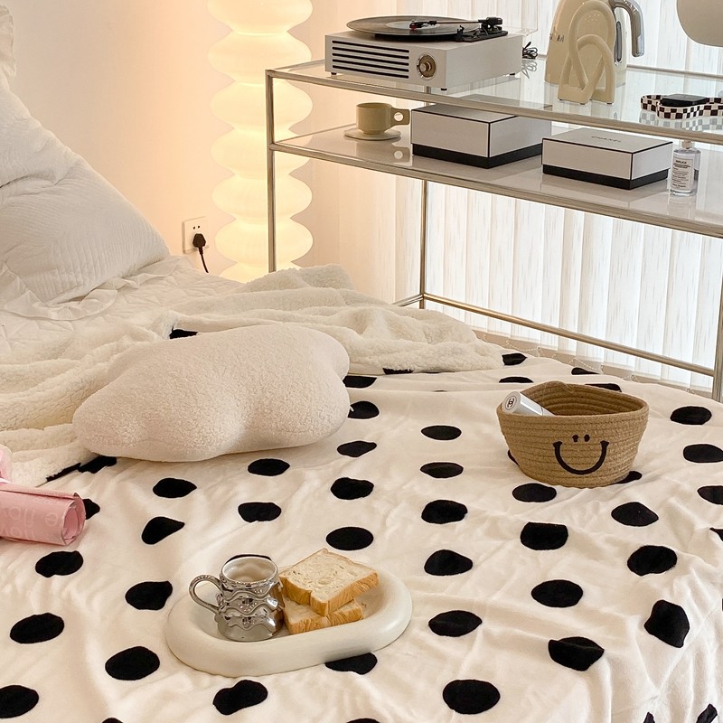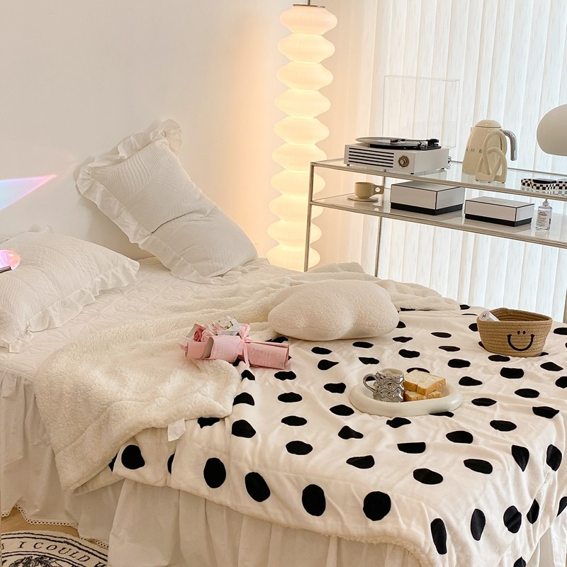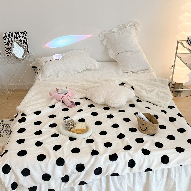 昔可家纺 2021新款牛奶羊羔绒印花毯 白波点