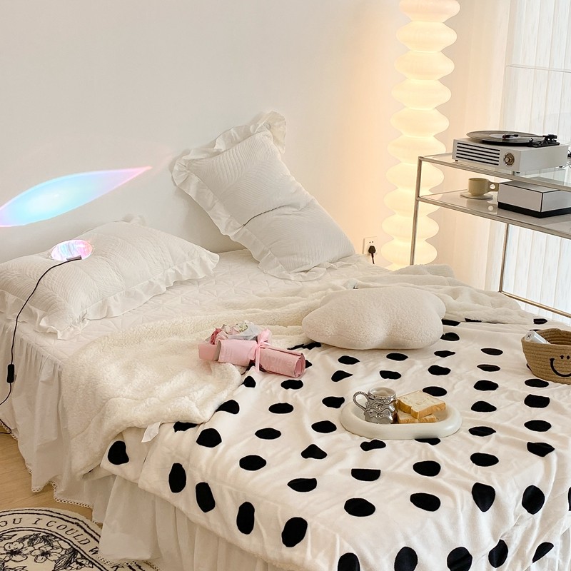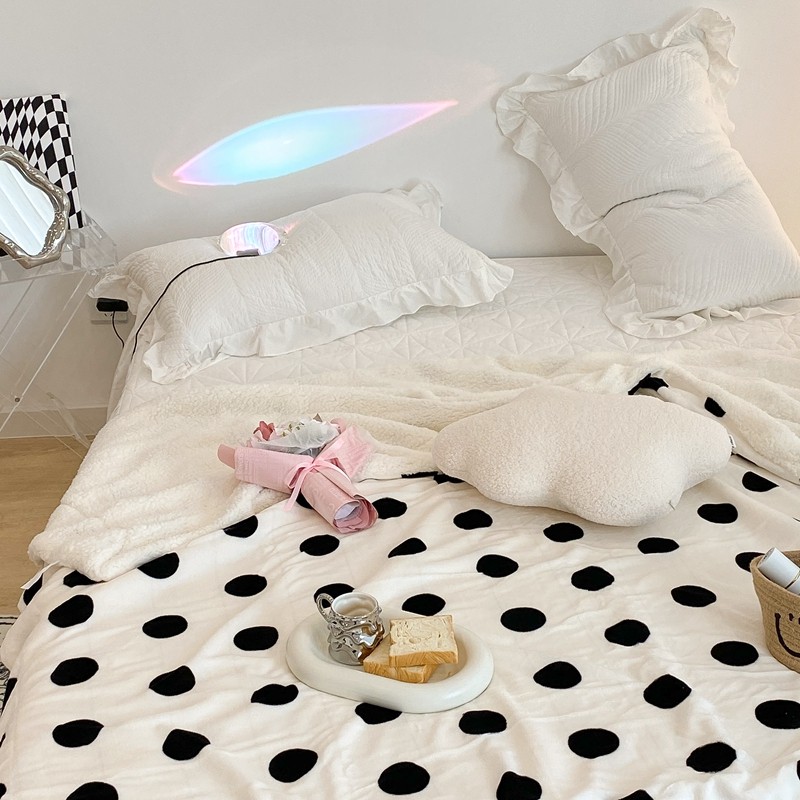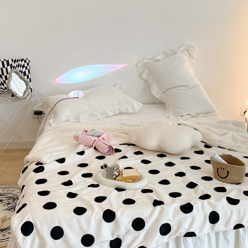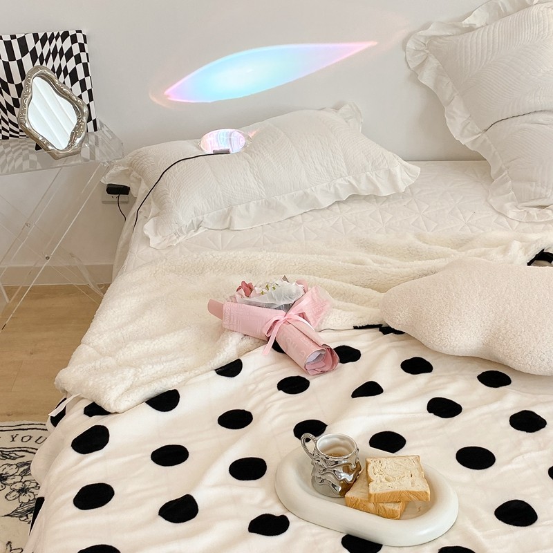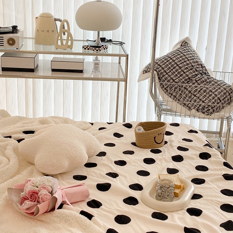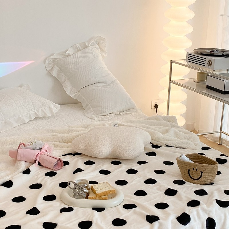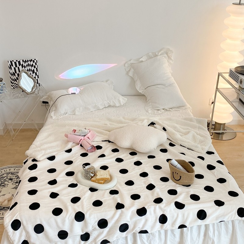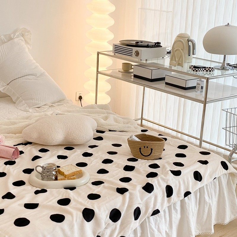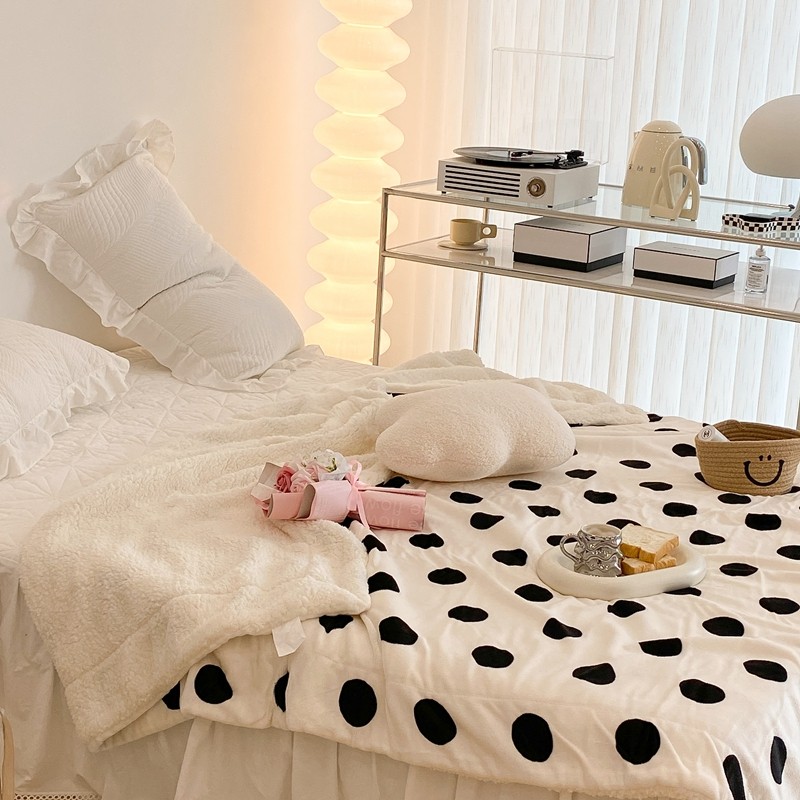 昔可家纺 2021新款牛奶羊羔绒印花毯 白波点