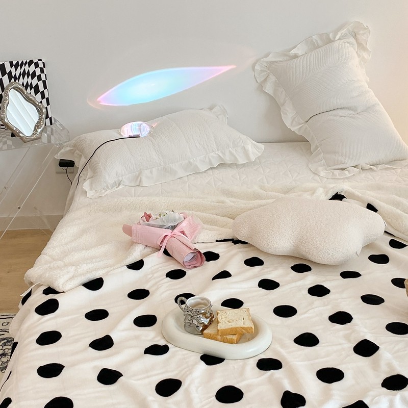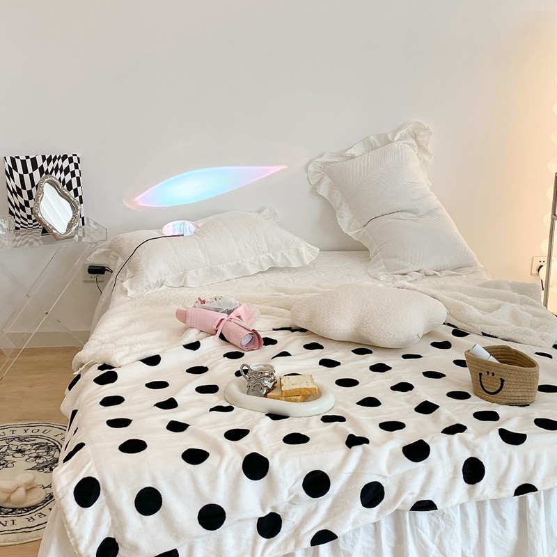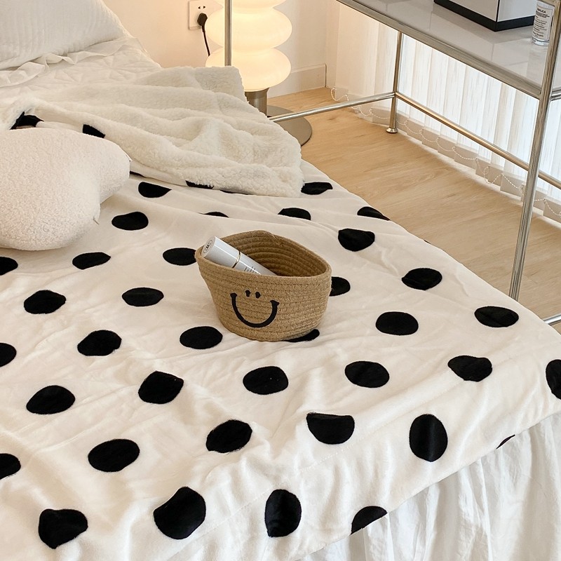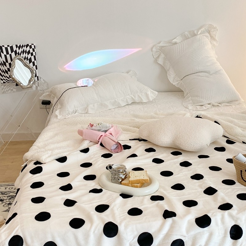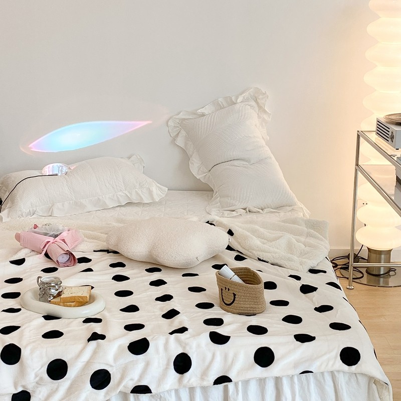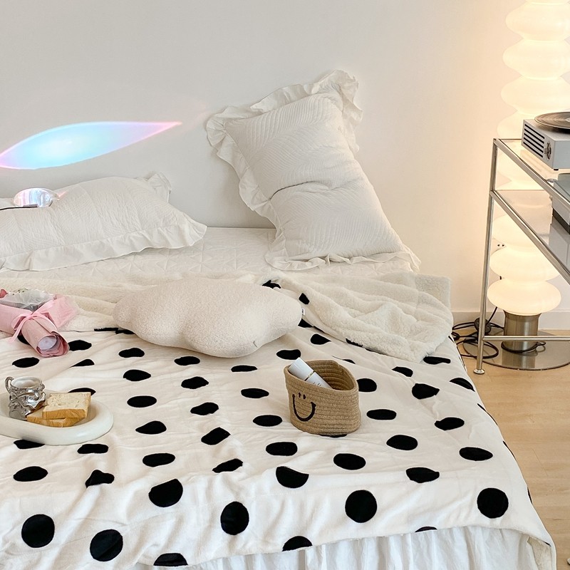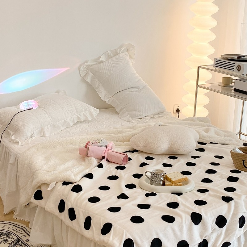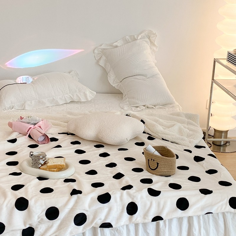 昔可家纺 2021新款牛奶羊羔绒印花毯 白波点