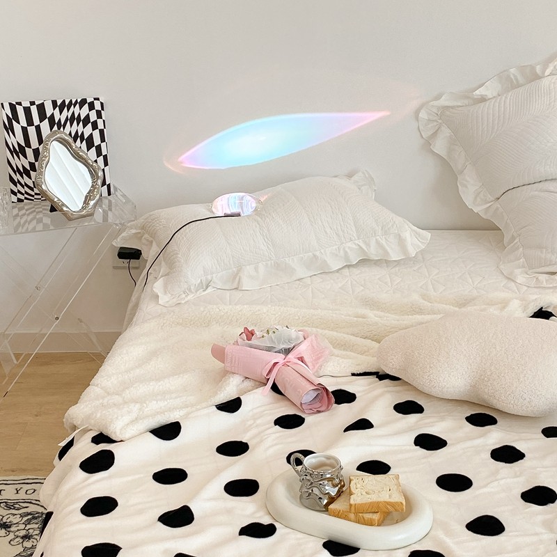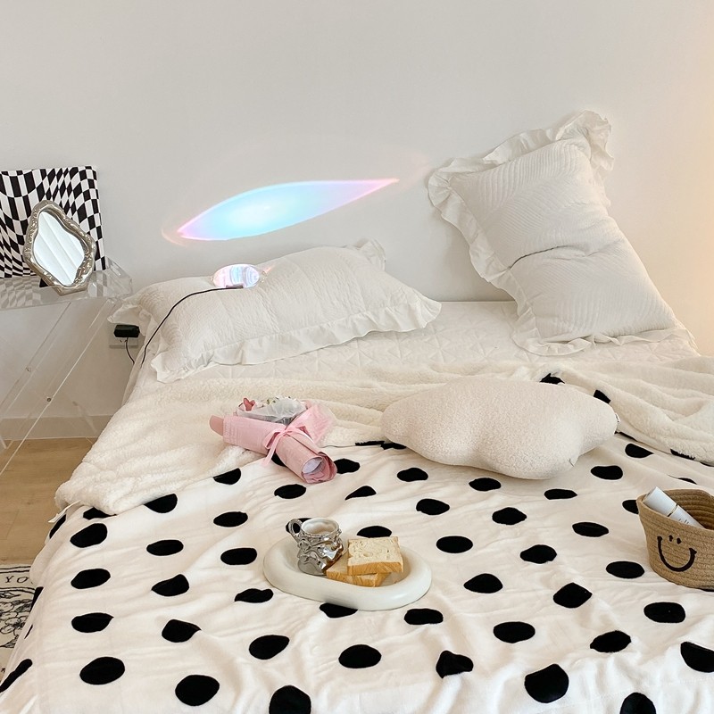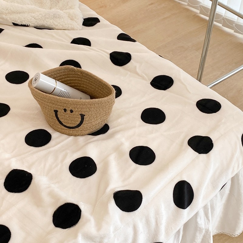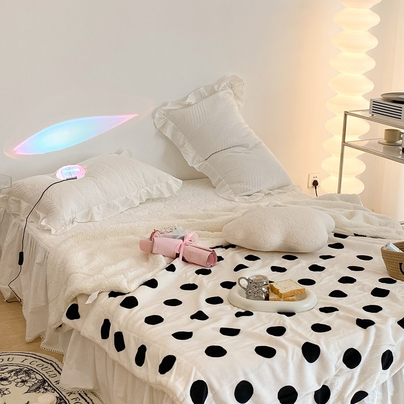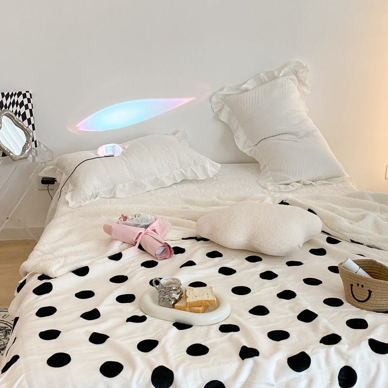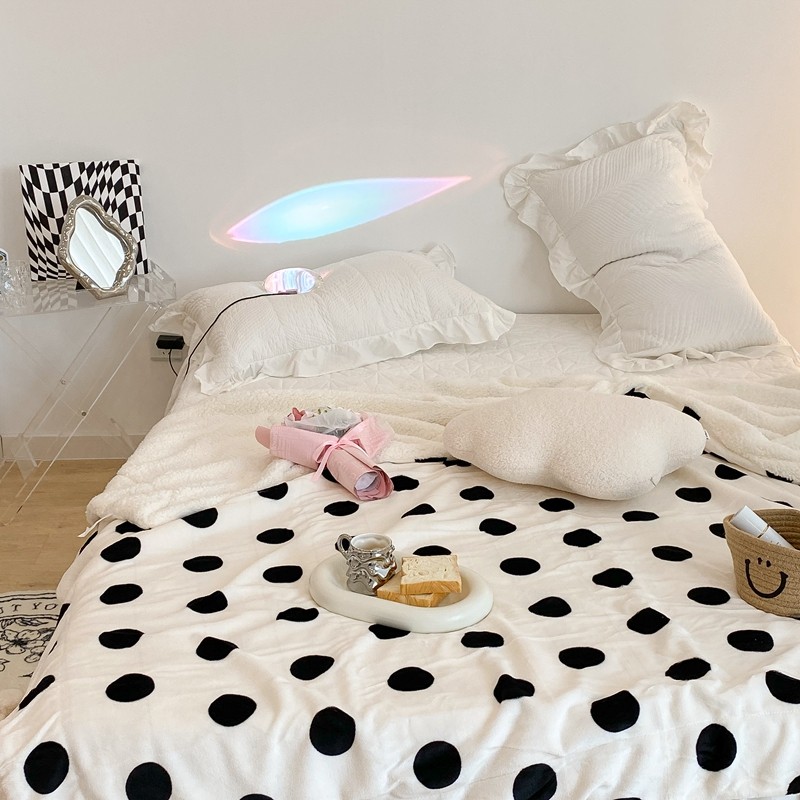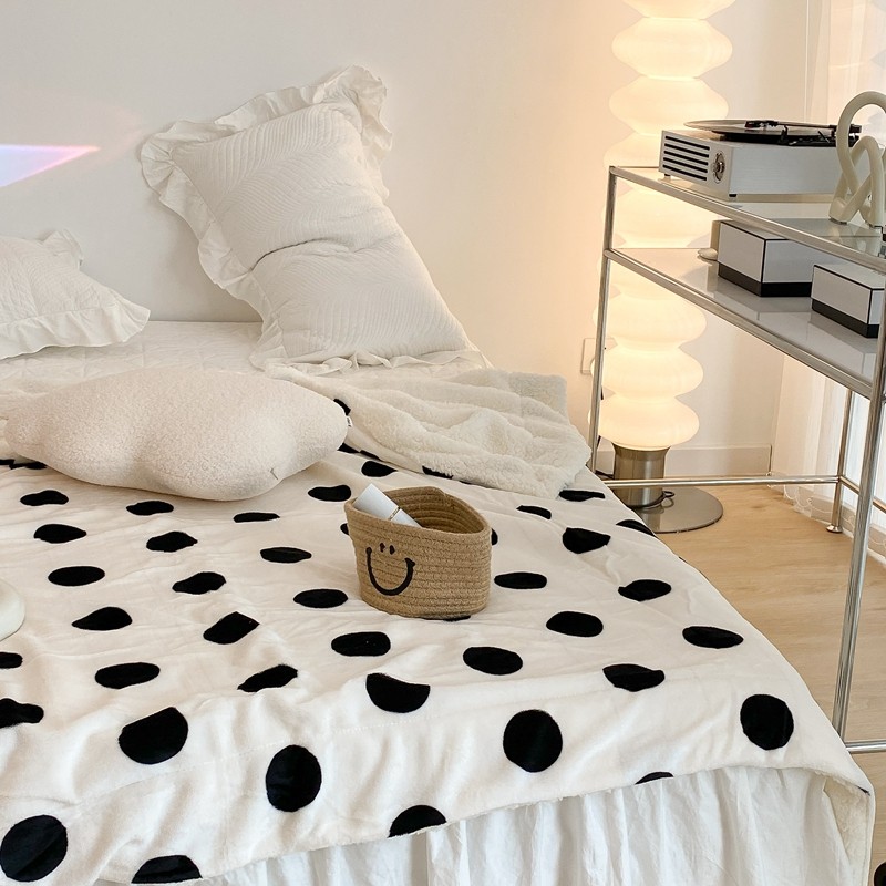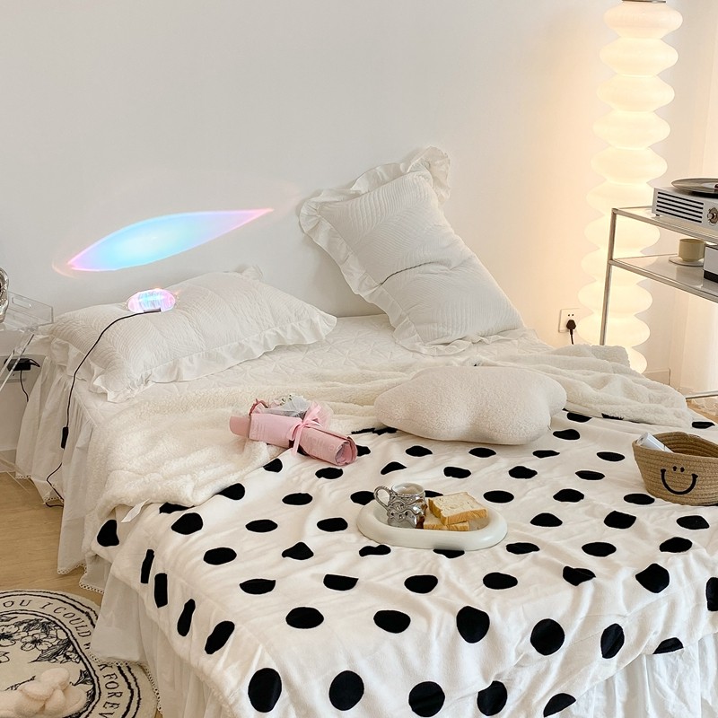 昔可家纺 2021新款牛奶羊羔绒印花毯 白波点