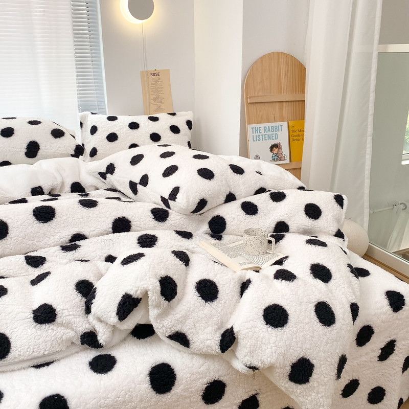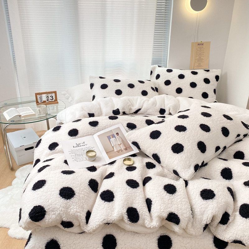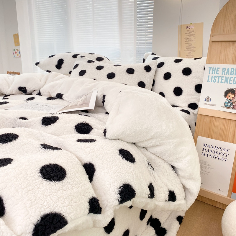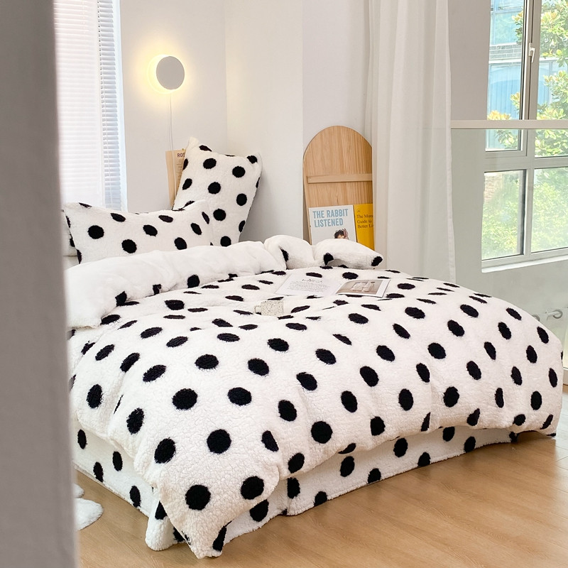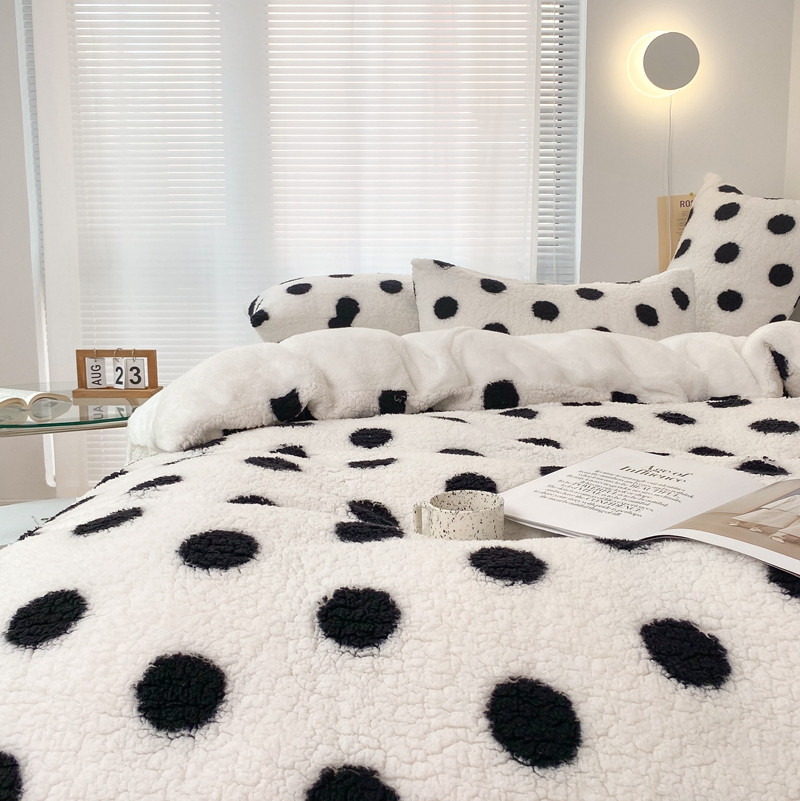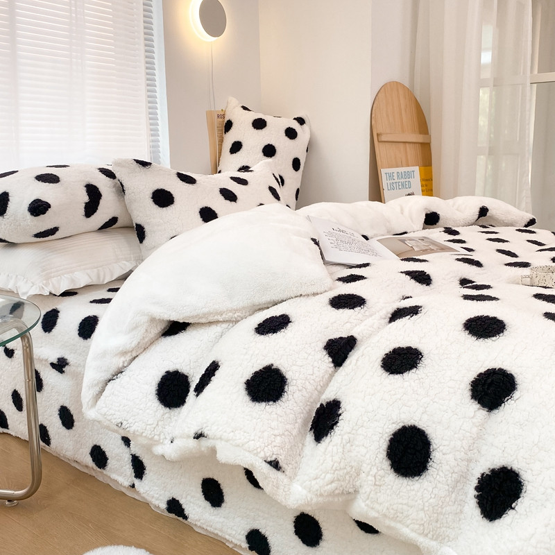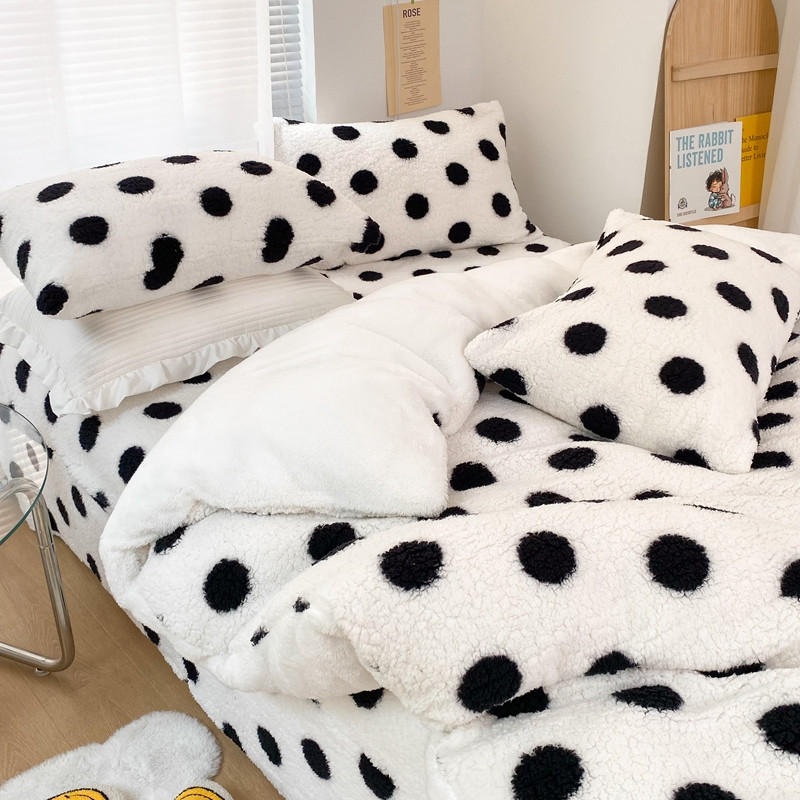 昔可 2021新款泰迪羊羔绒四件套 黑白波点