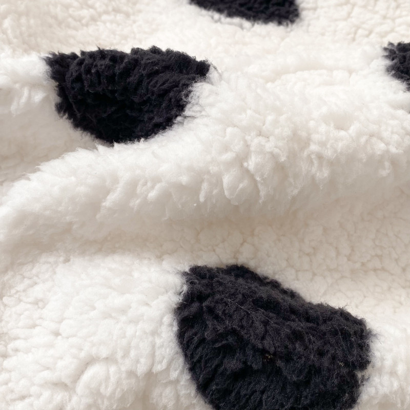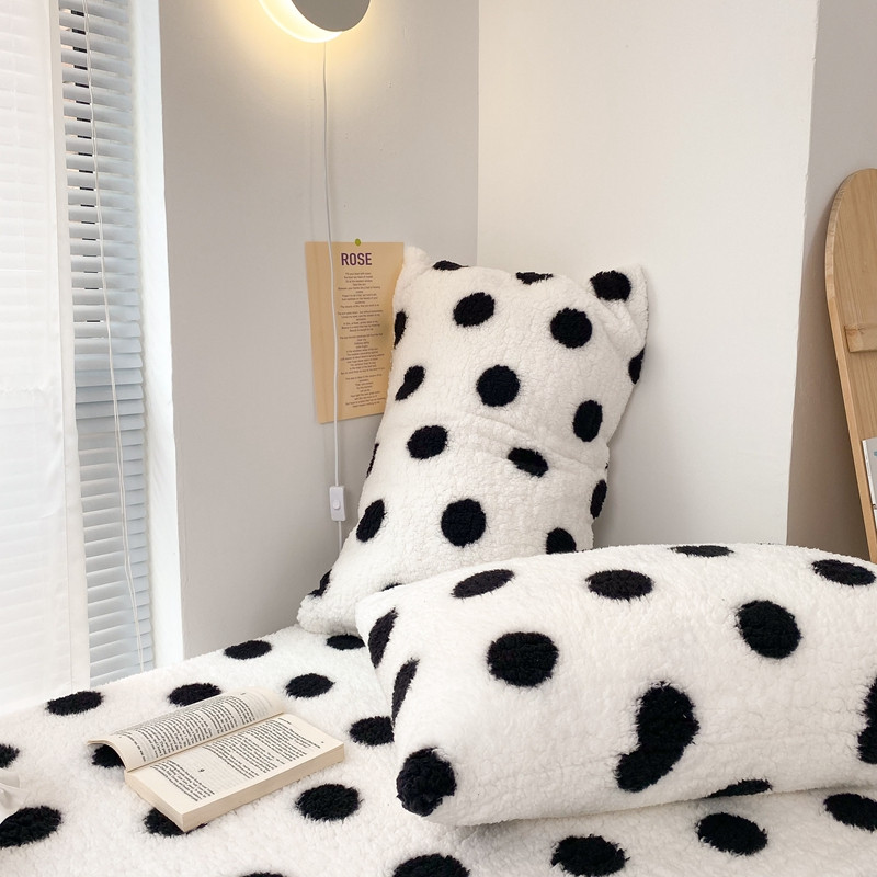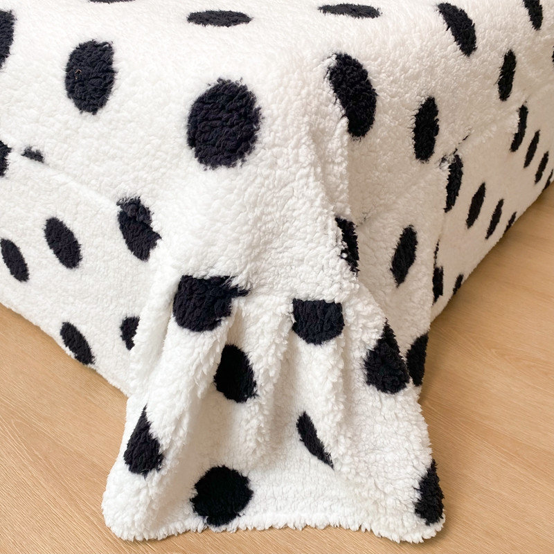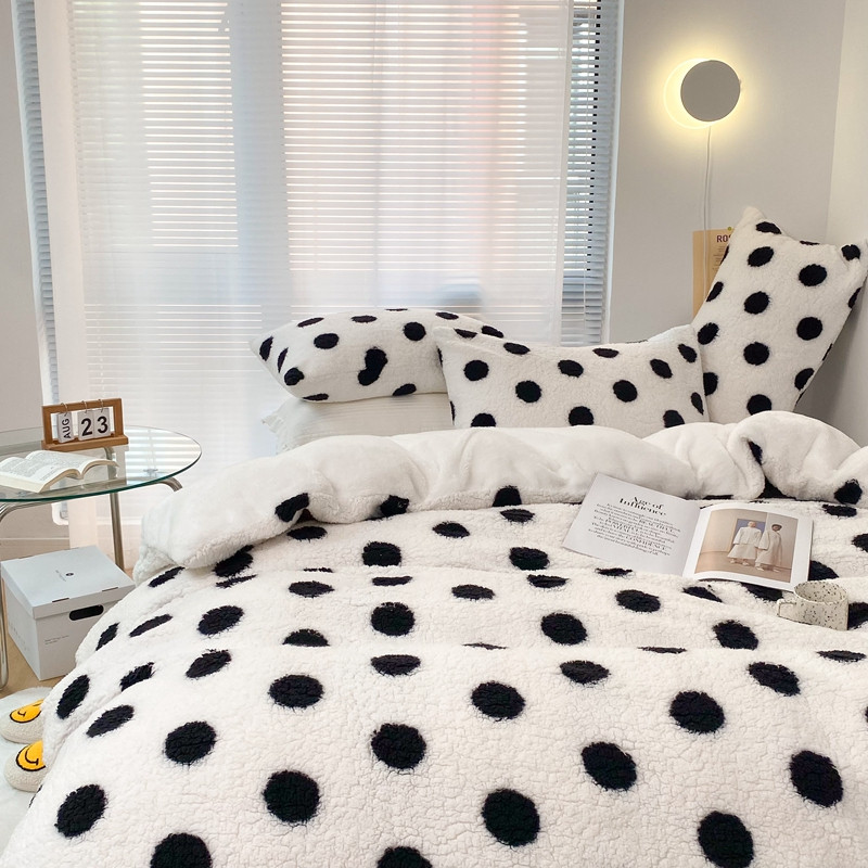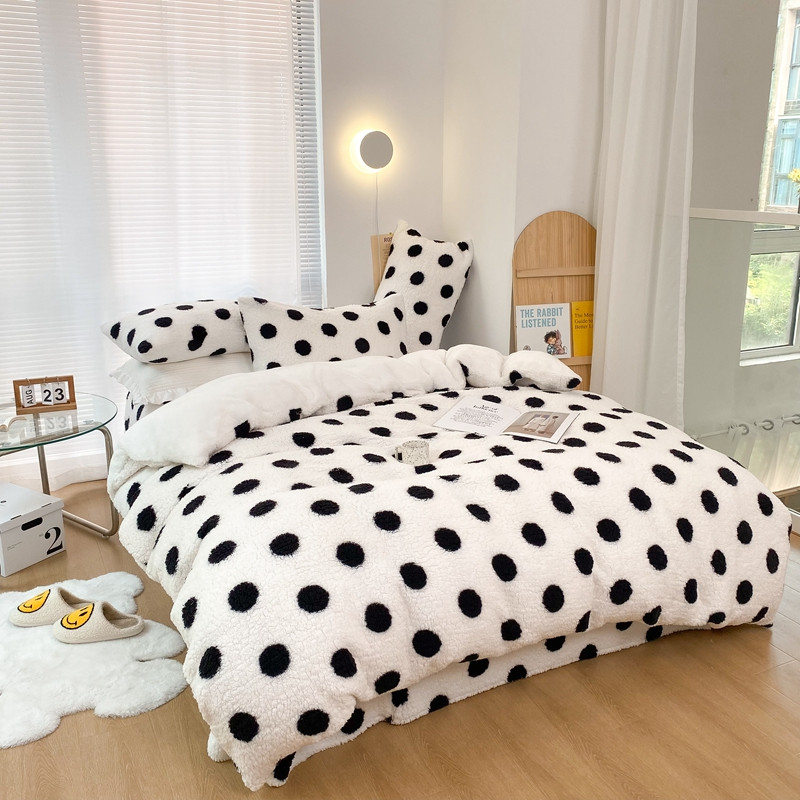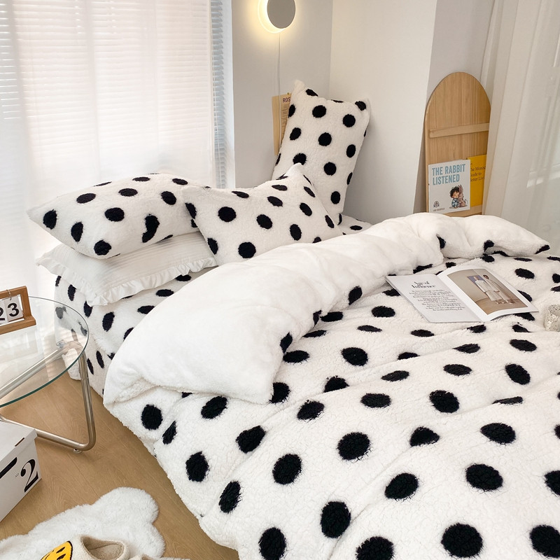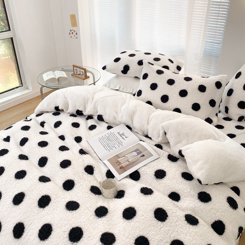 昔可 2021新款泰迪羊羔绒四件套 黑白波点