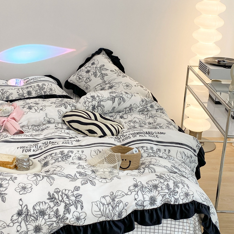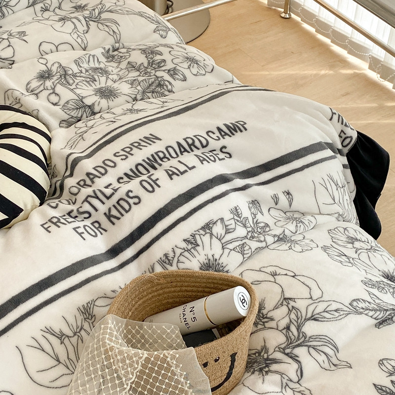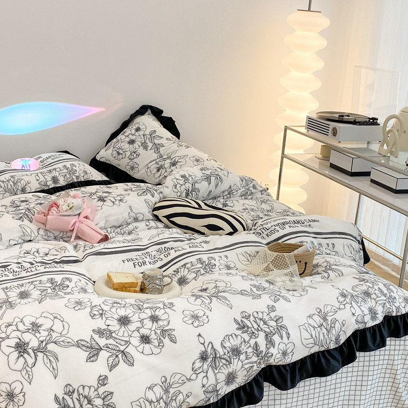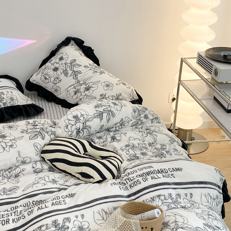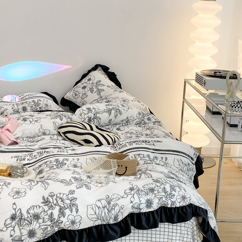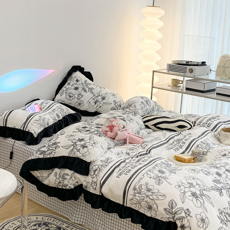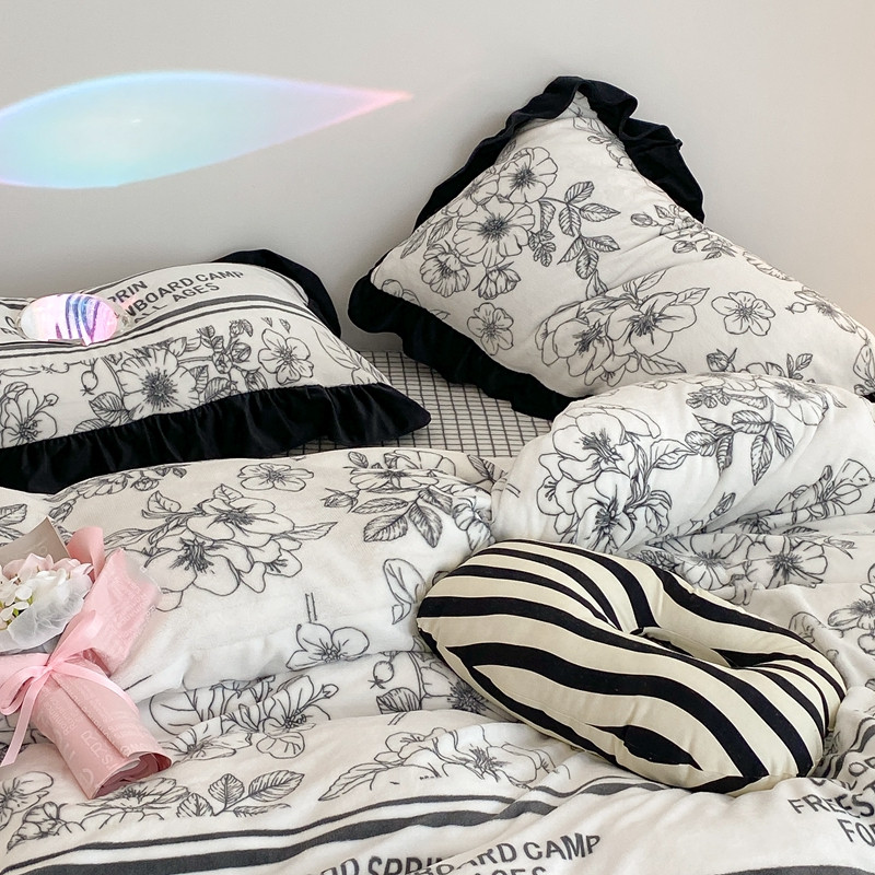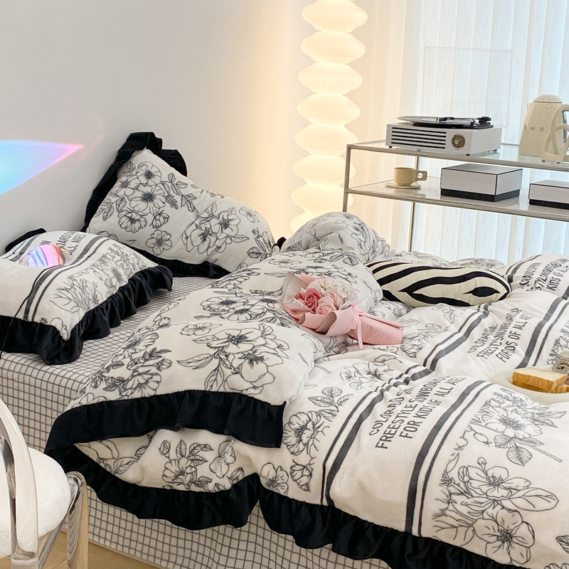 昔可 2021新款黑色花边牛奶绒四件套 黑茶