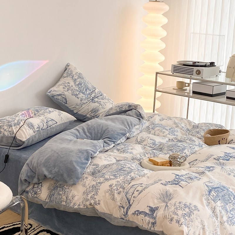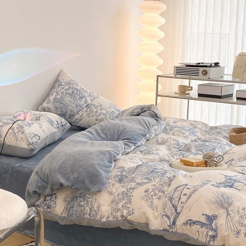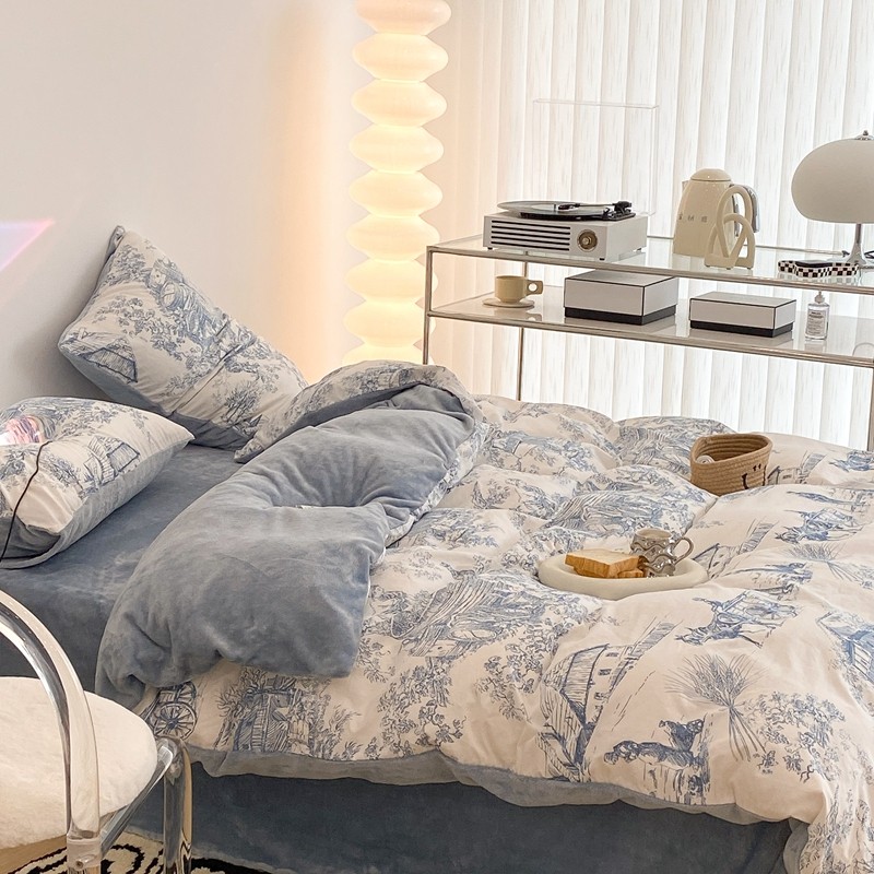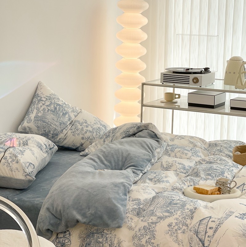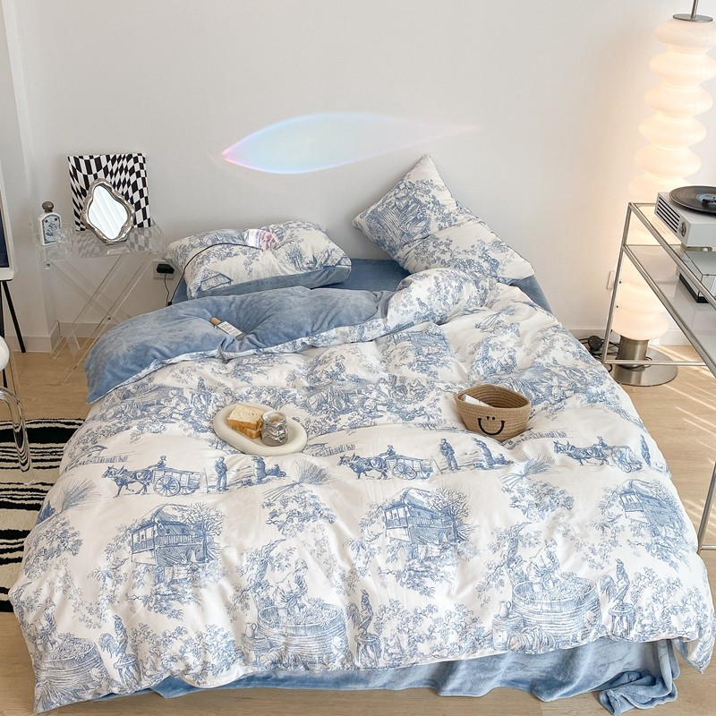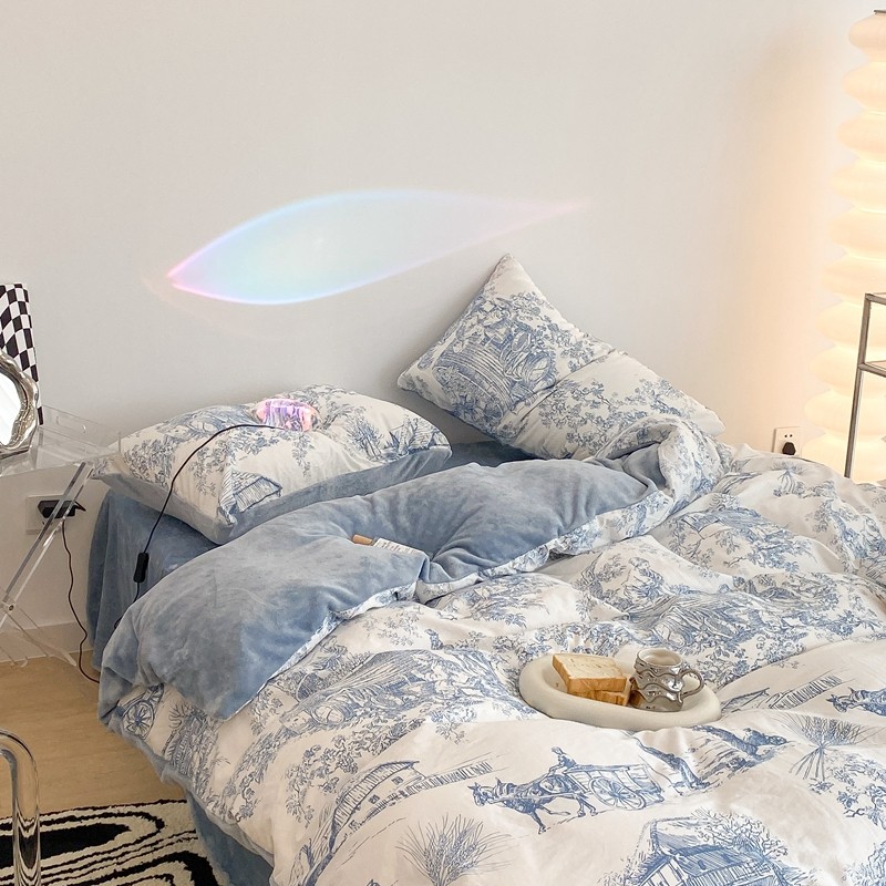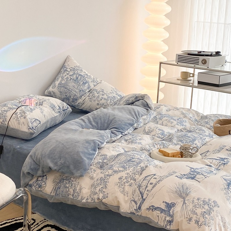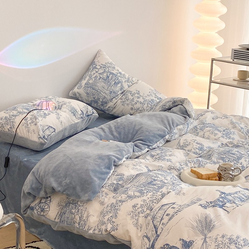 (总)昔可家纺 2024新款印花牛奶绒四件套系列-洛丽塔风,萝莉小兔,小熊烘焙屋,小熊玩偶屋