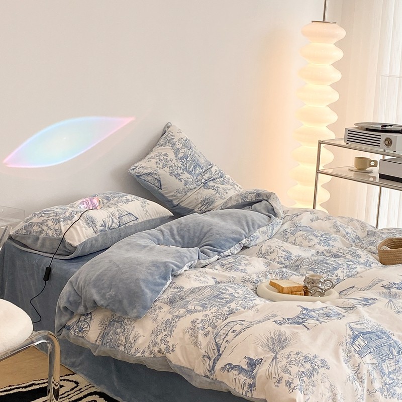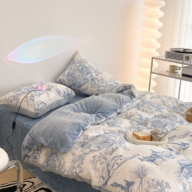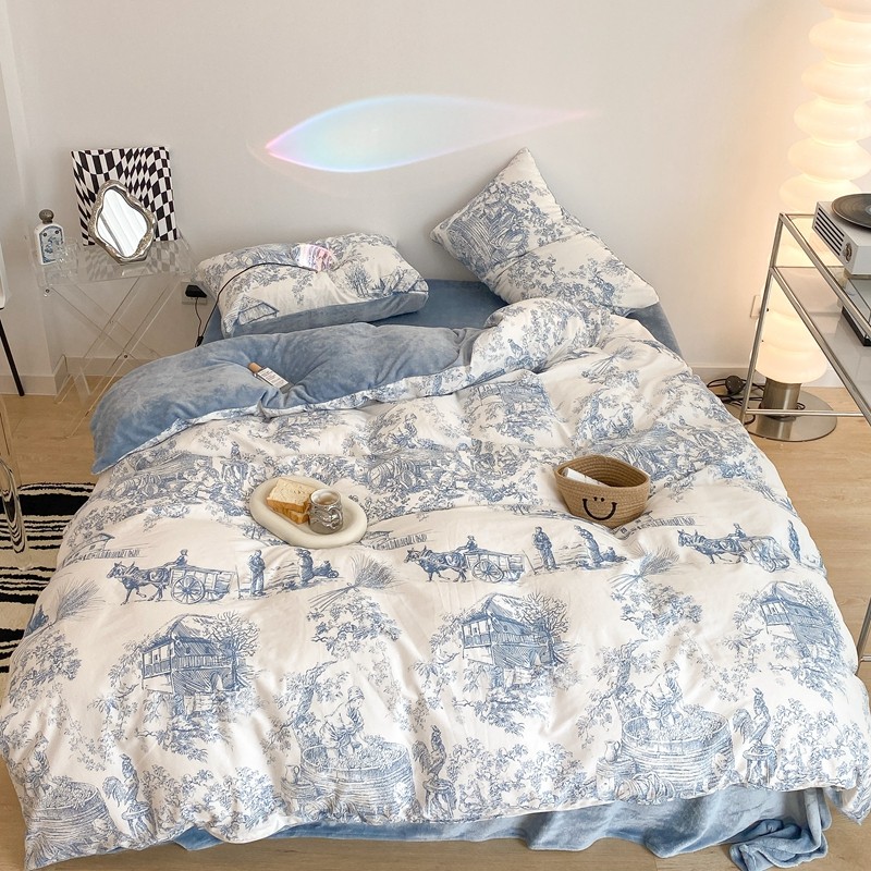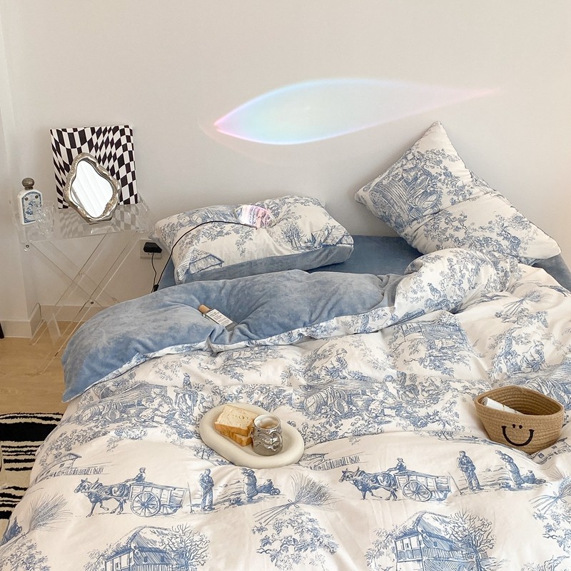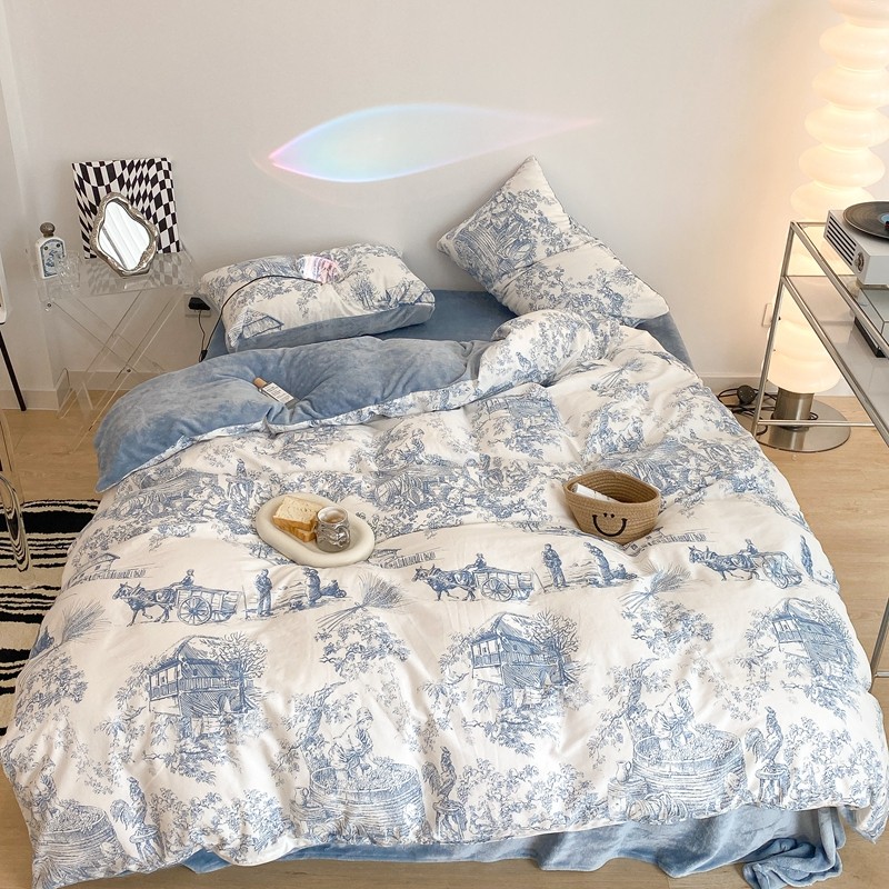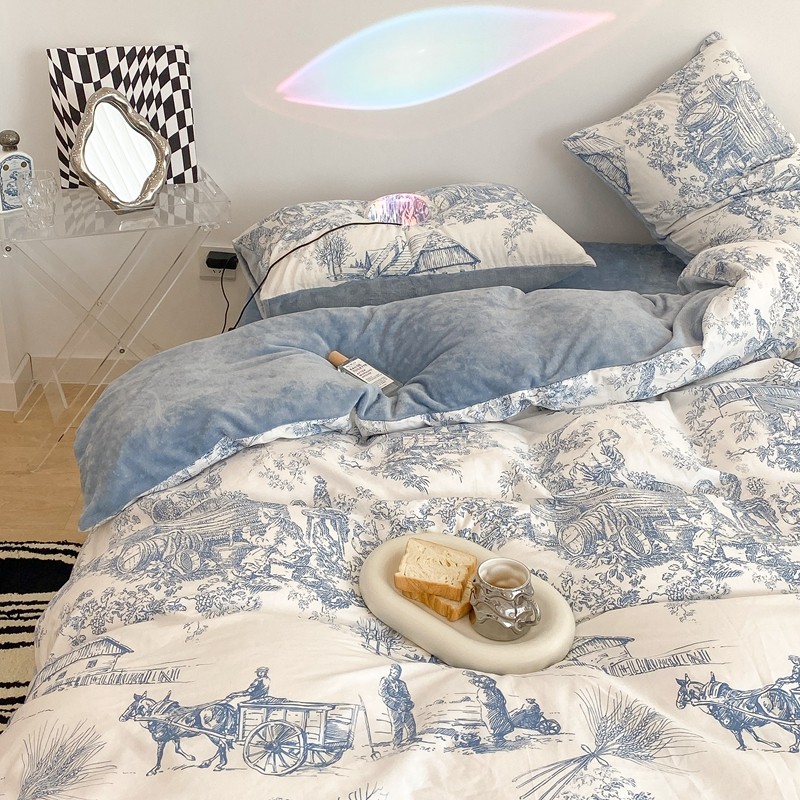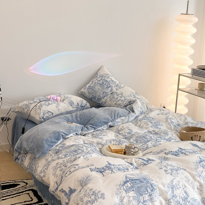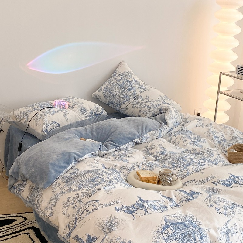 (总)昔可家纺 2024新款印花牛奶绒四件套系列-洛丽塔风,萝莉小兔,小熊烘焙屋,小熊玩偶屋