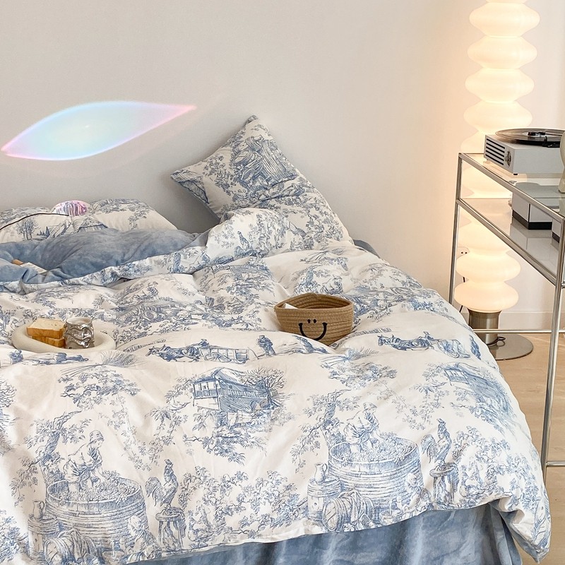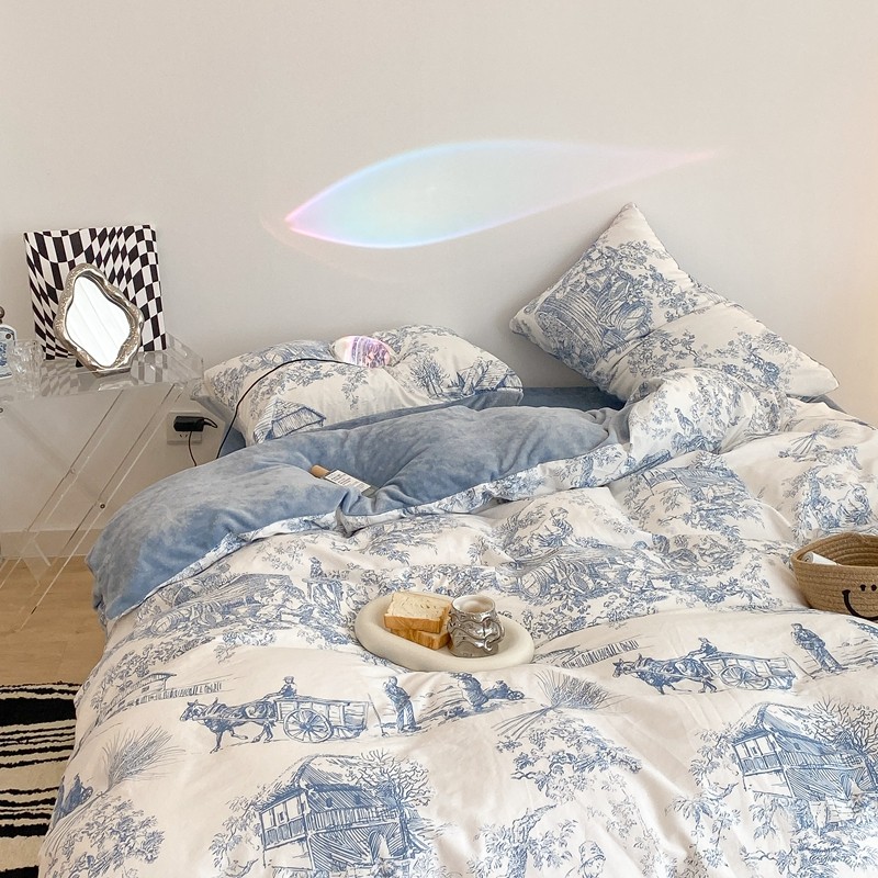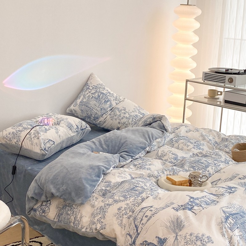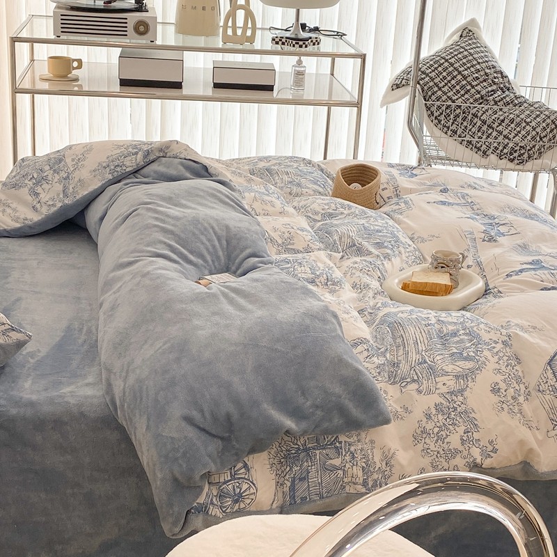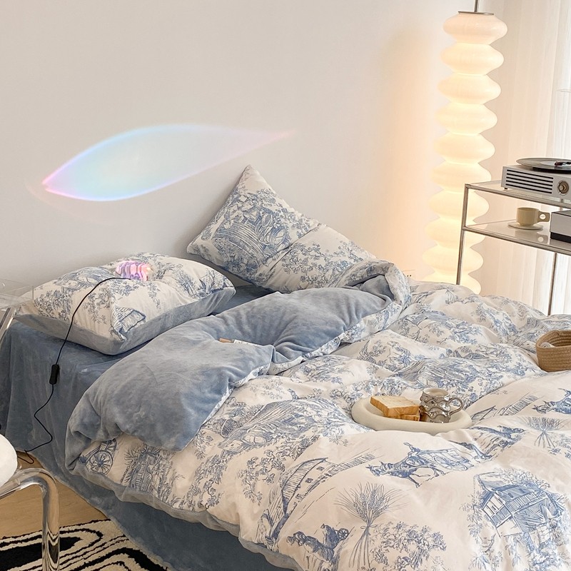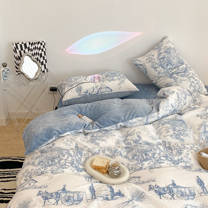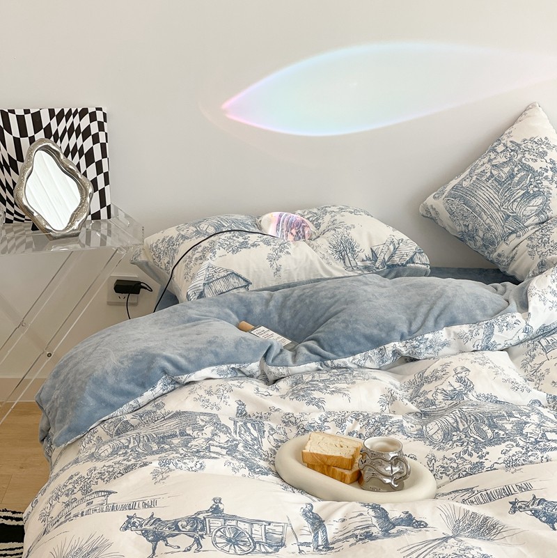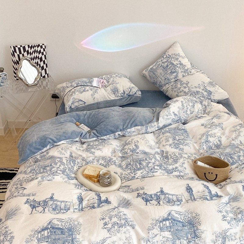 (总)昔可家纺 2024新款印花牛奶绒四件套系列-洛丽塔风,萝莉小兔,小熊烘焙屋,小熊玩偶屋