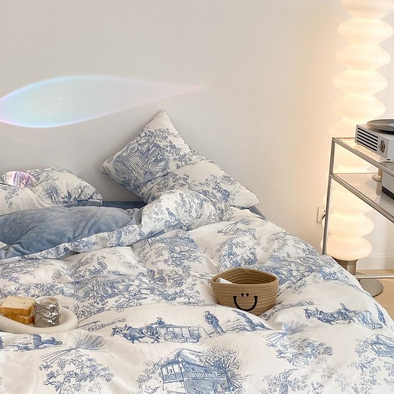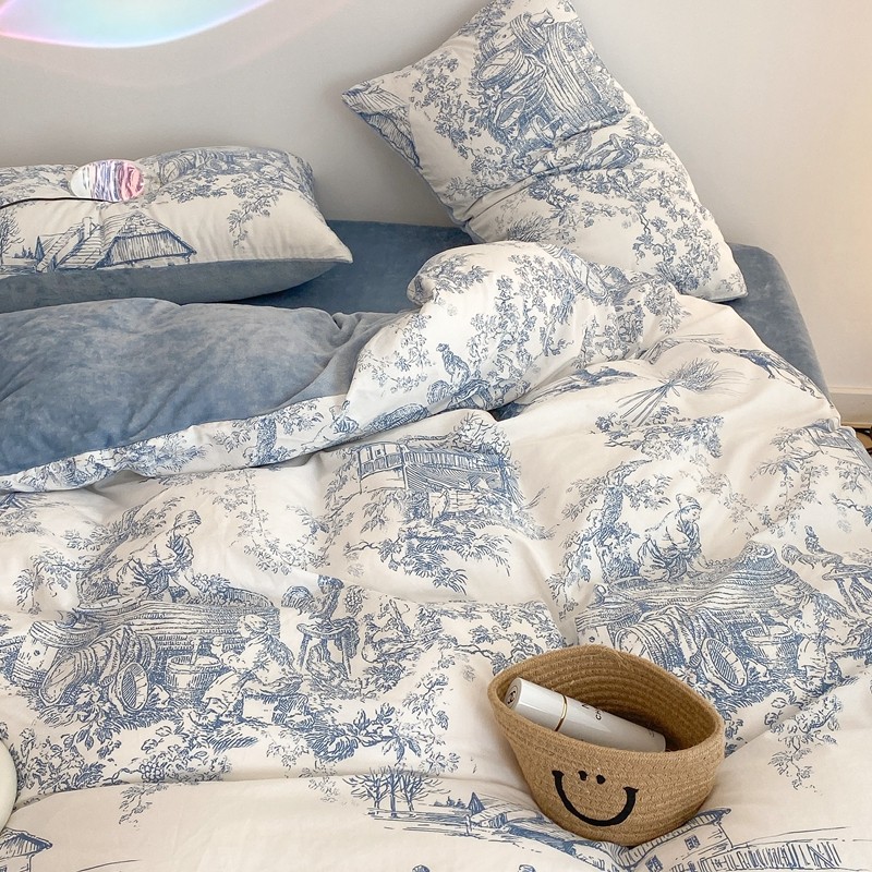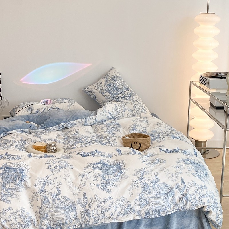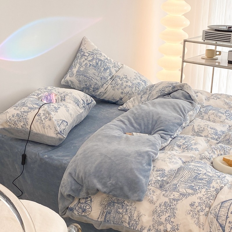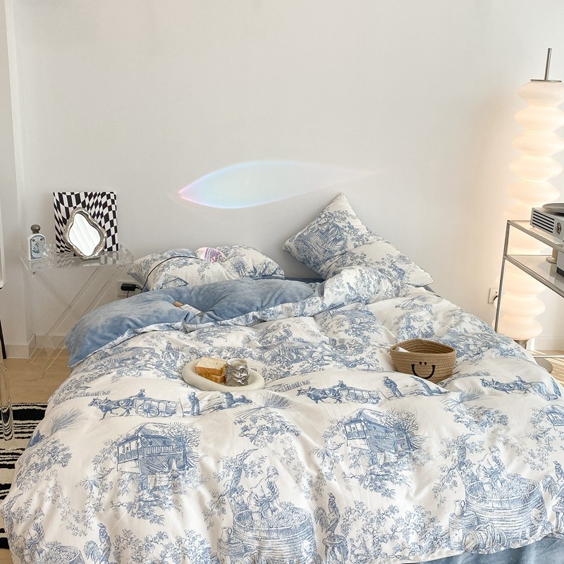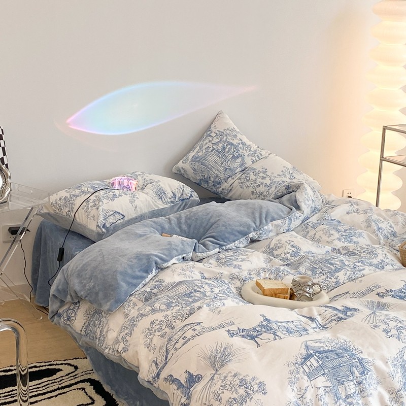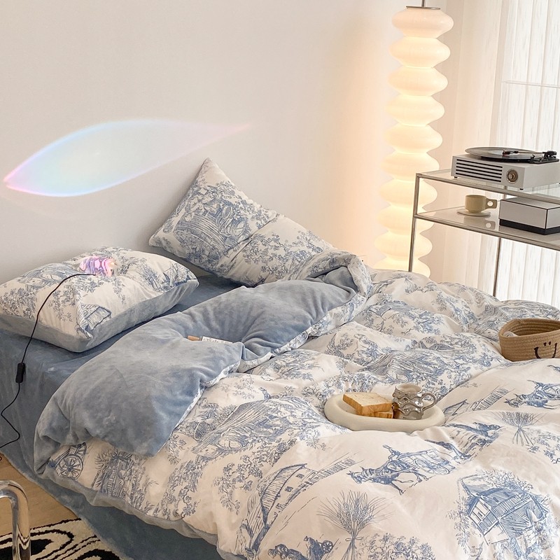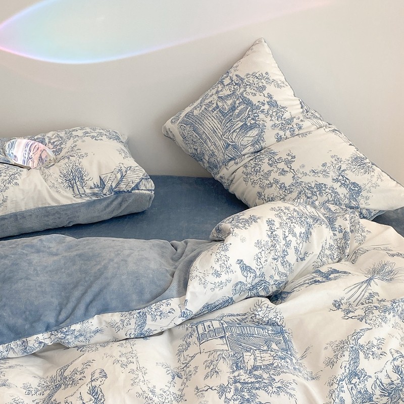 商品名称:昔可家纺 2021新款棉加牛奶绒四件套 水墨画