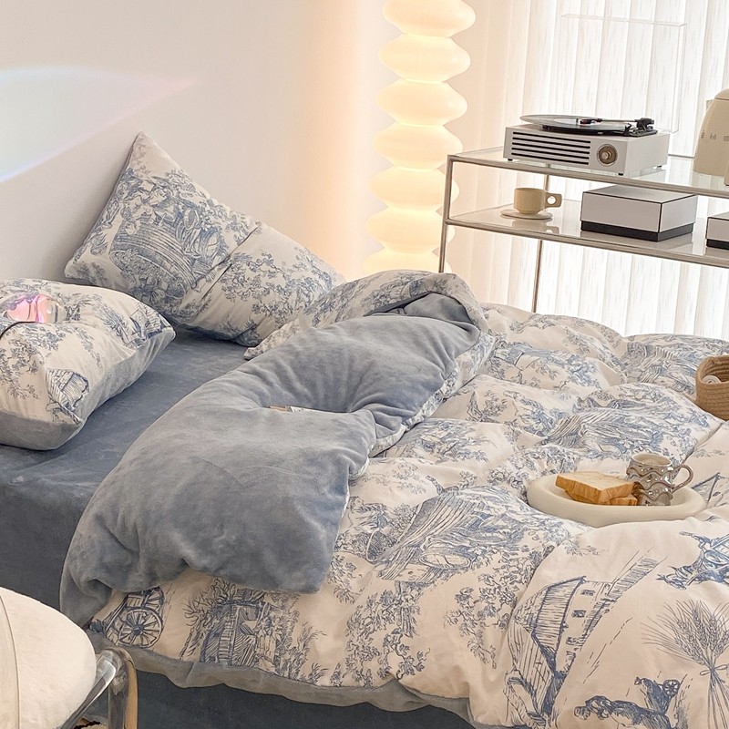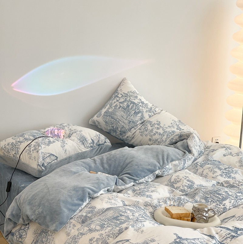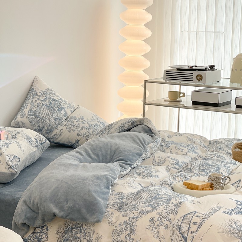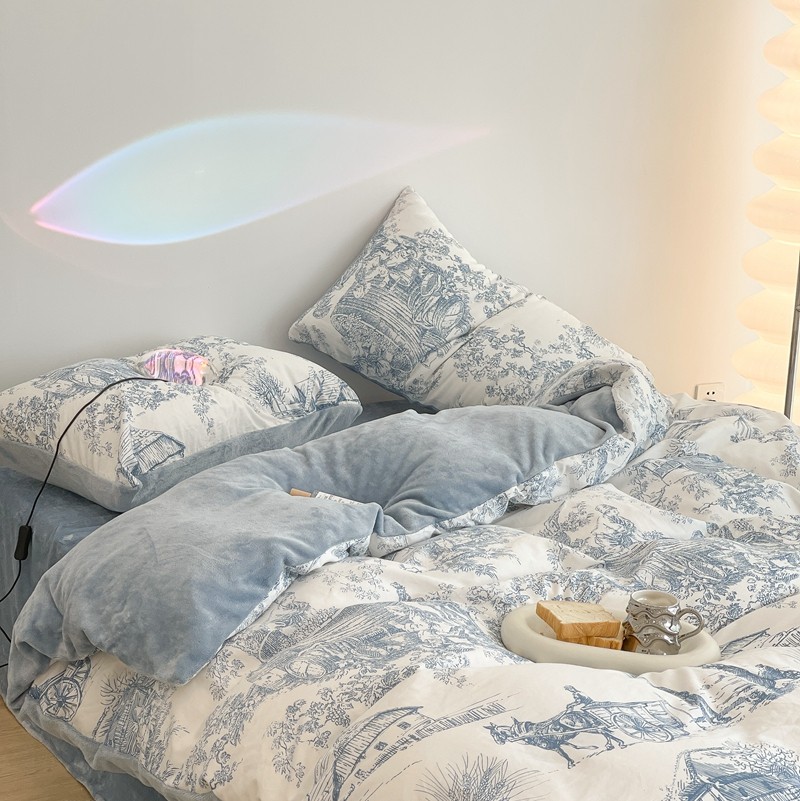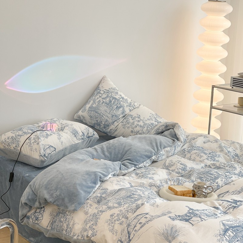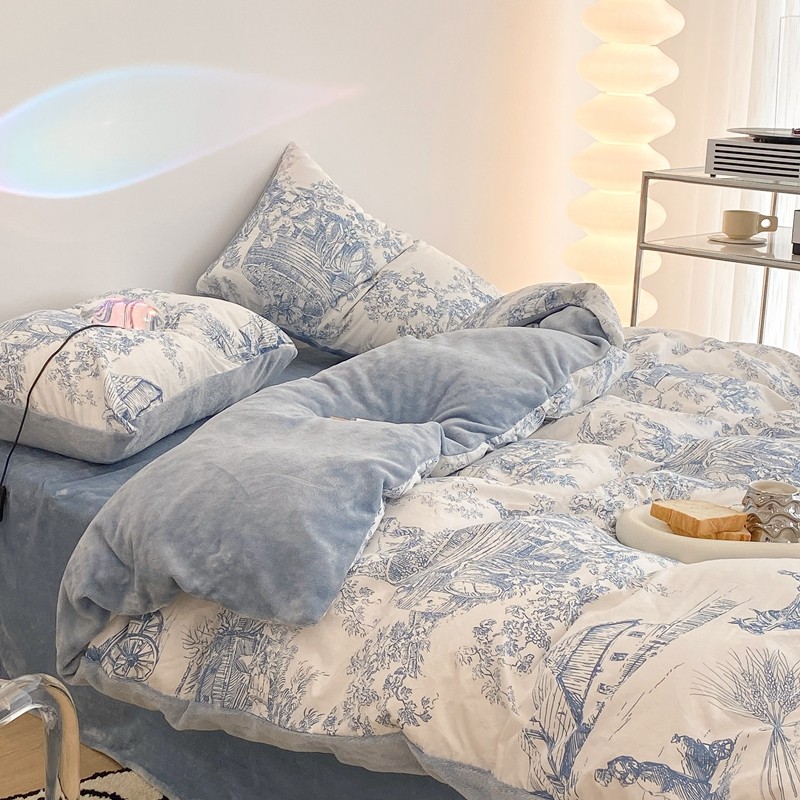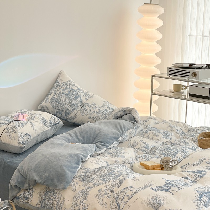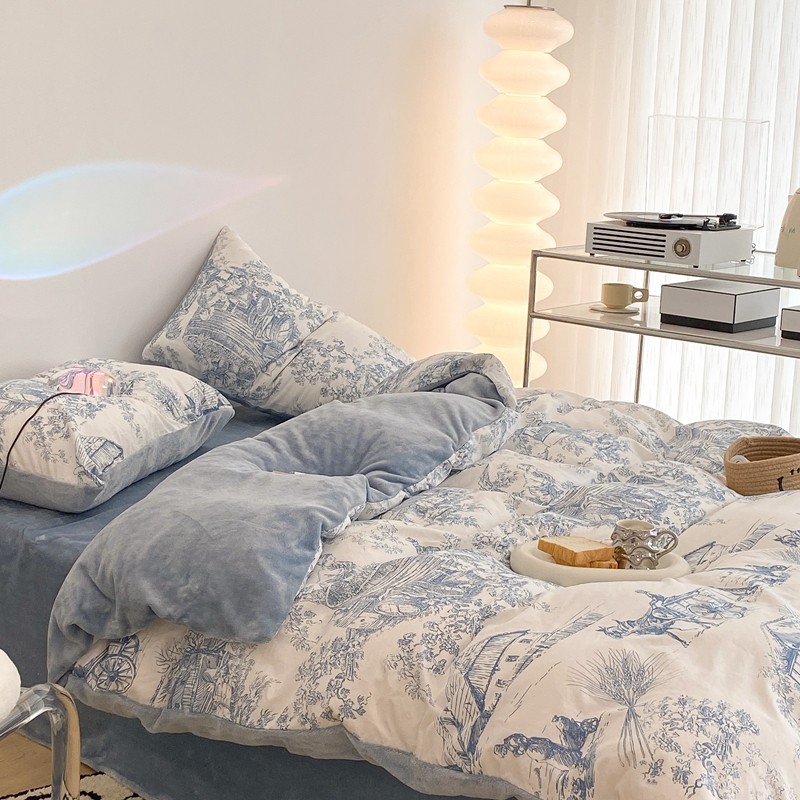 昔可家纺 2021新款棉加牛奶绒四件套 水墨画