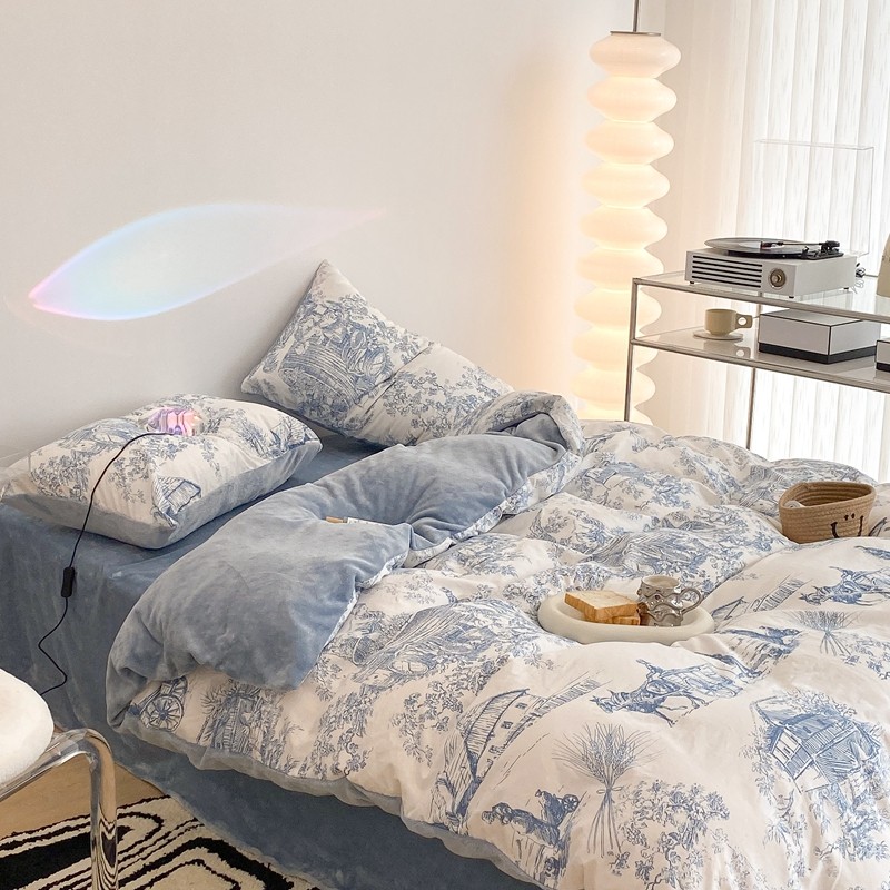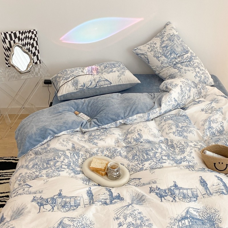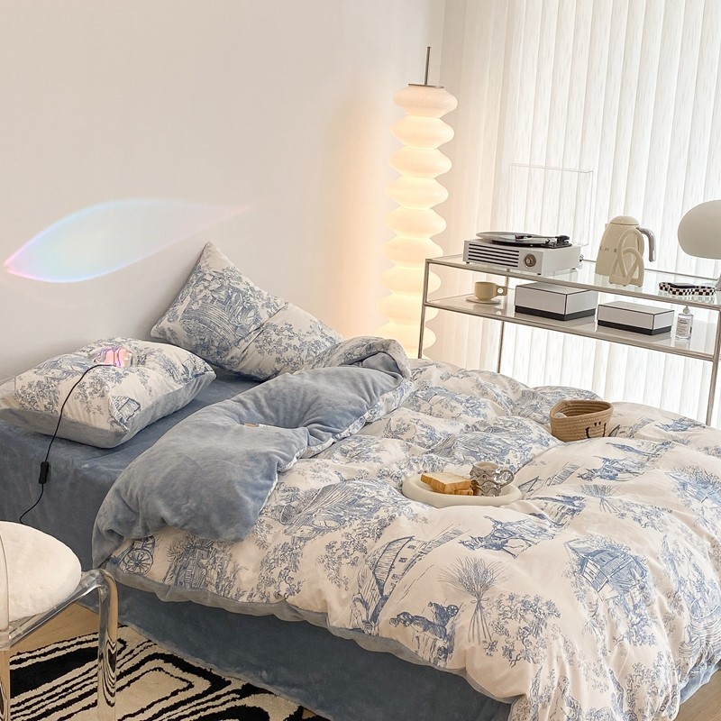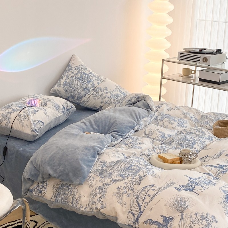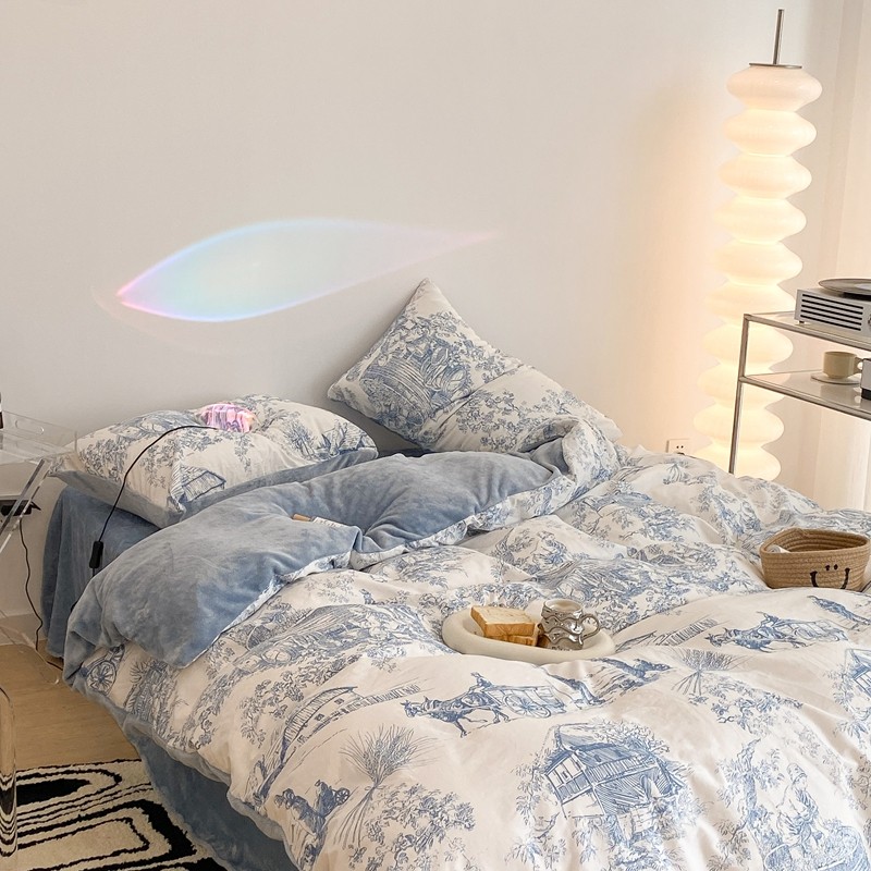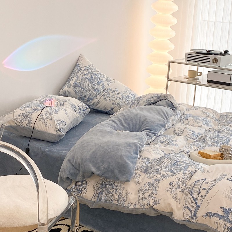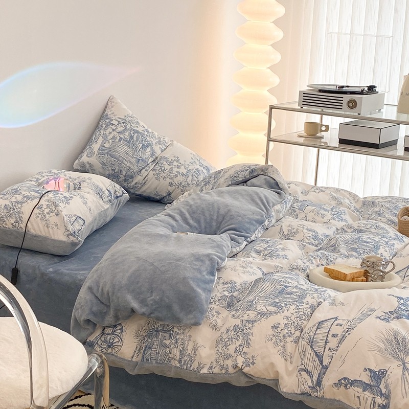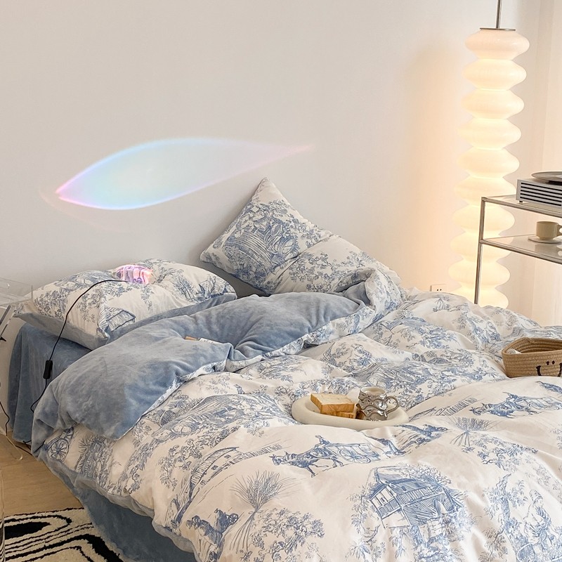 昔可家纺 2021新款棉加牛奶绒四件套 水墨画