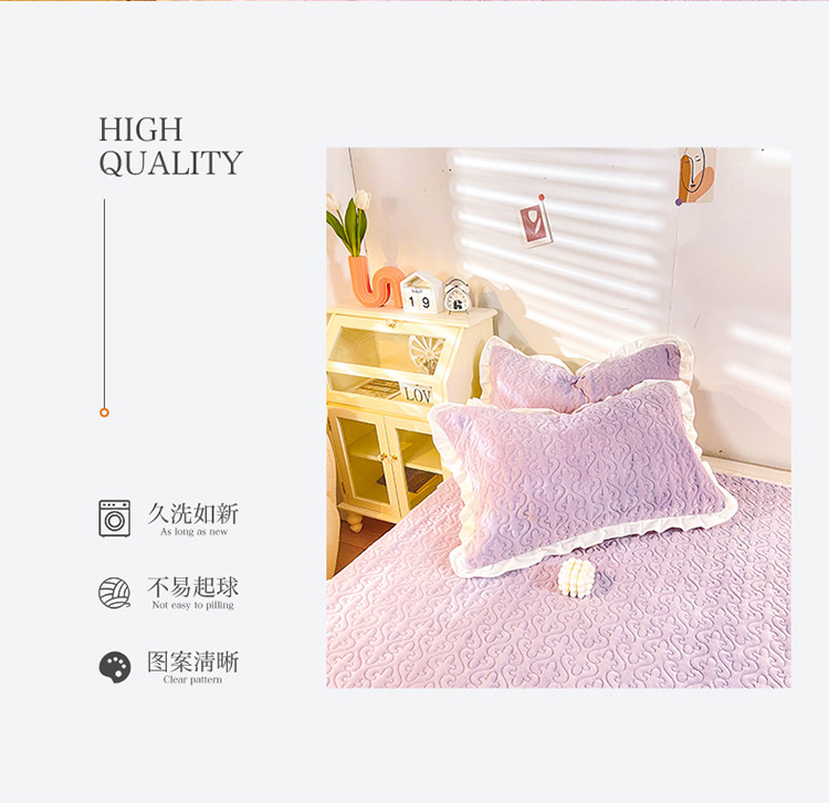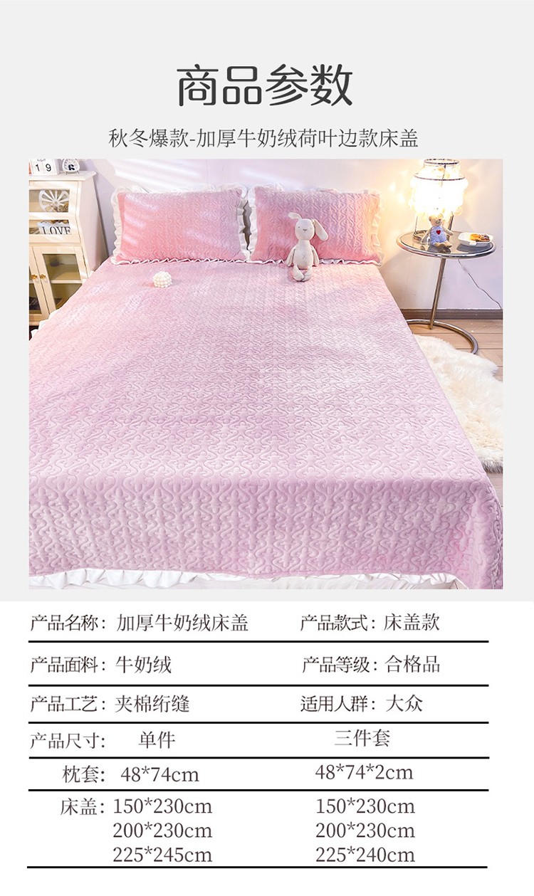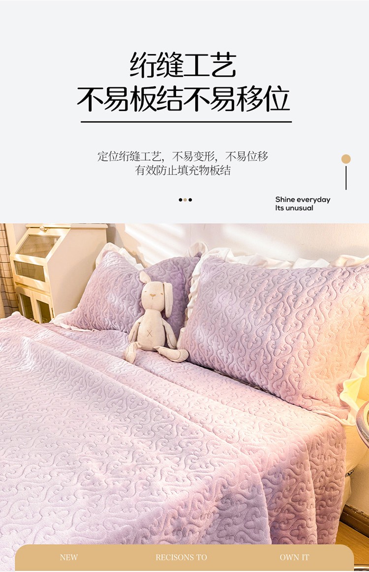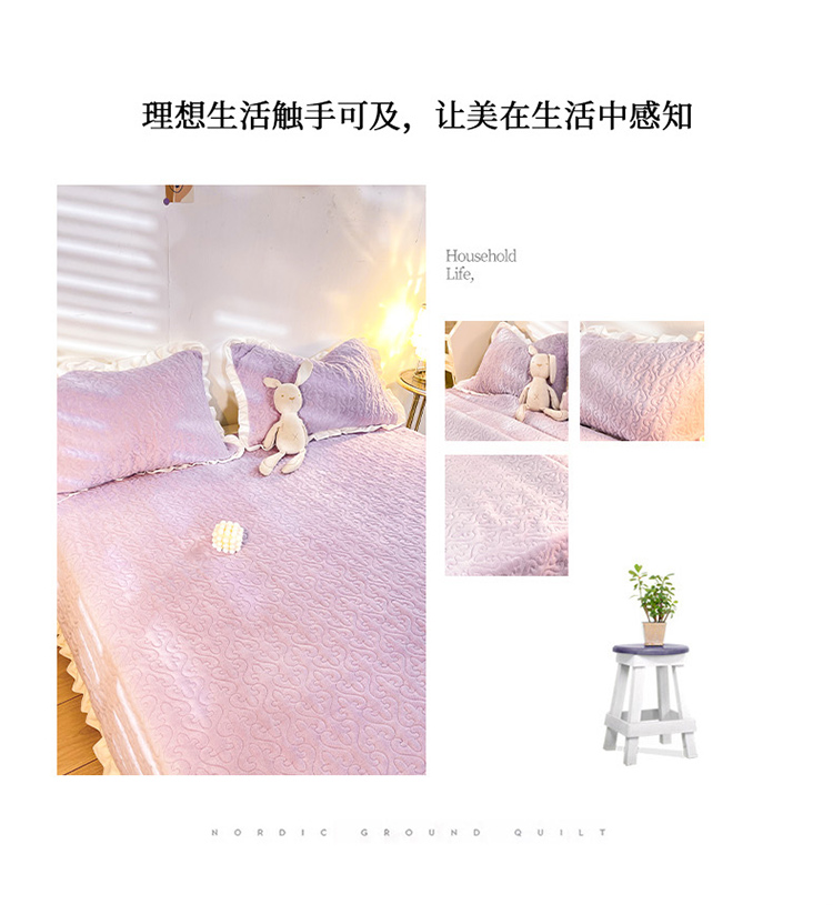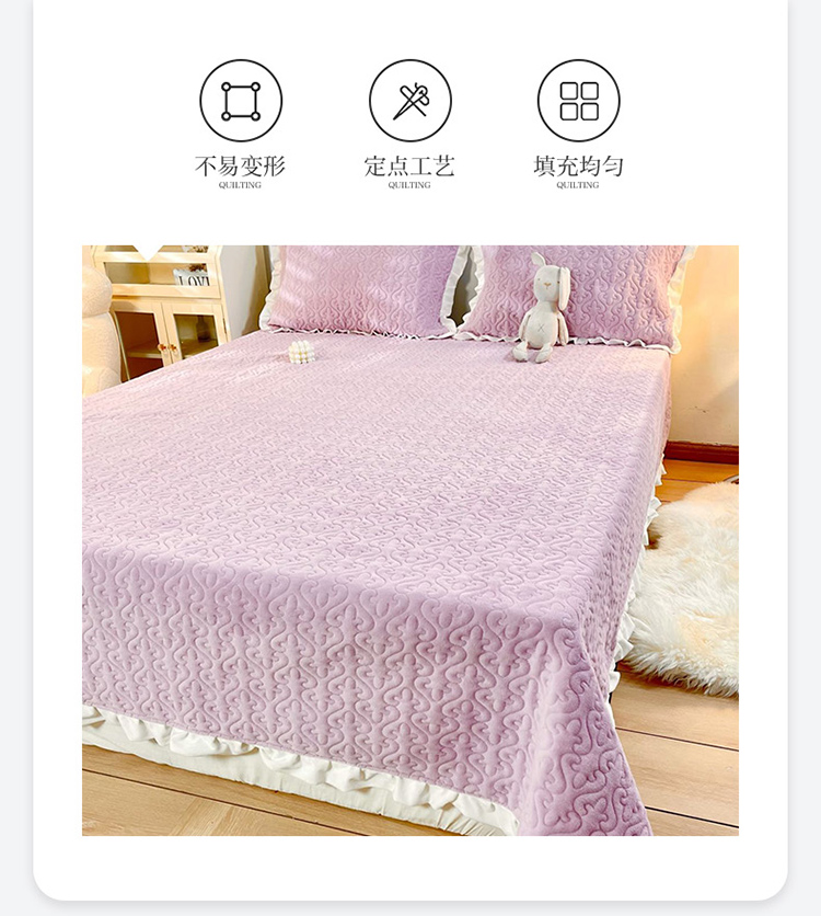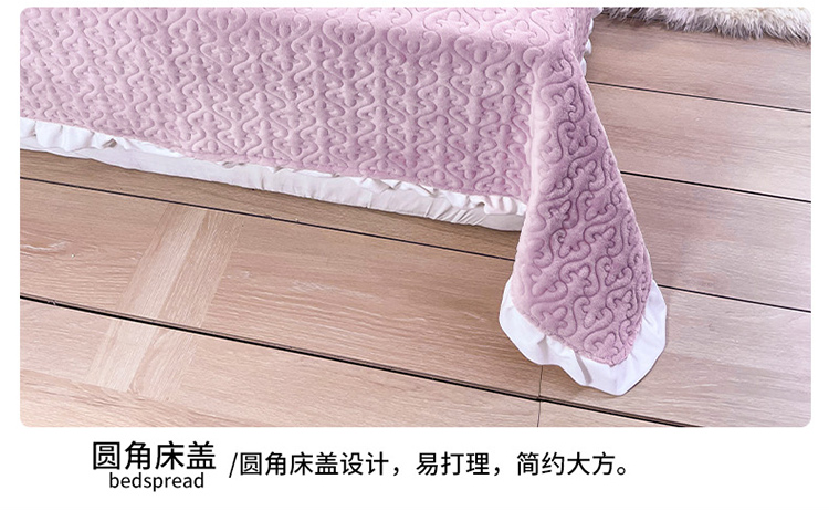 • 91家纺网 家纺一手货源 找家纺 沐辰2021新款加厚牛奶绒荷叶边款床盖 芋泥紫