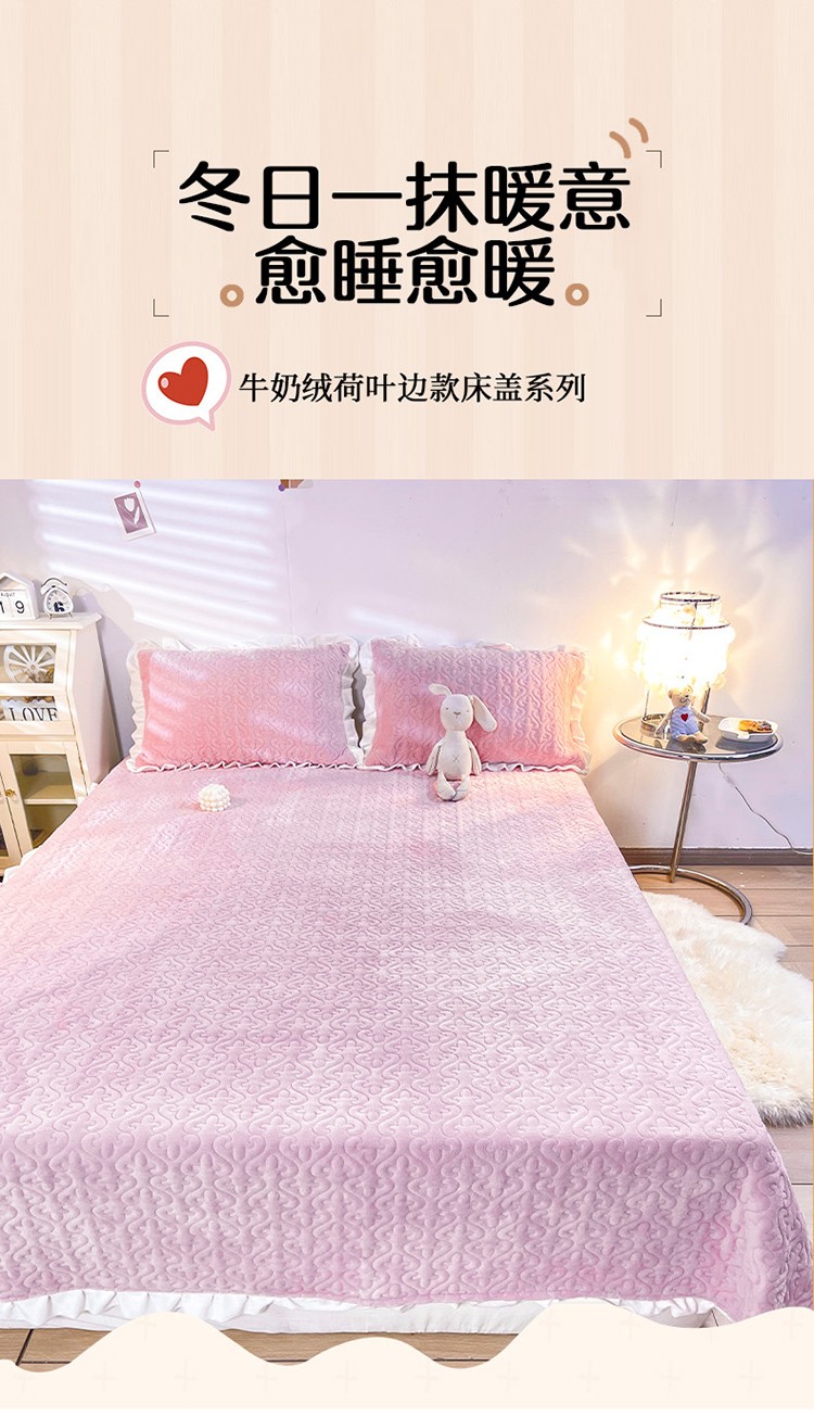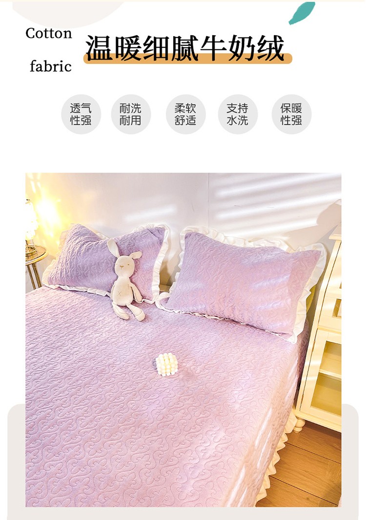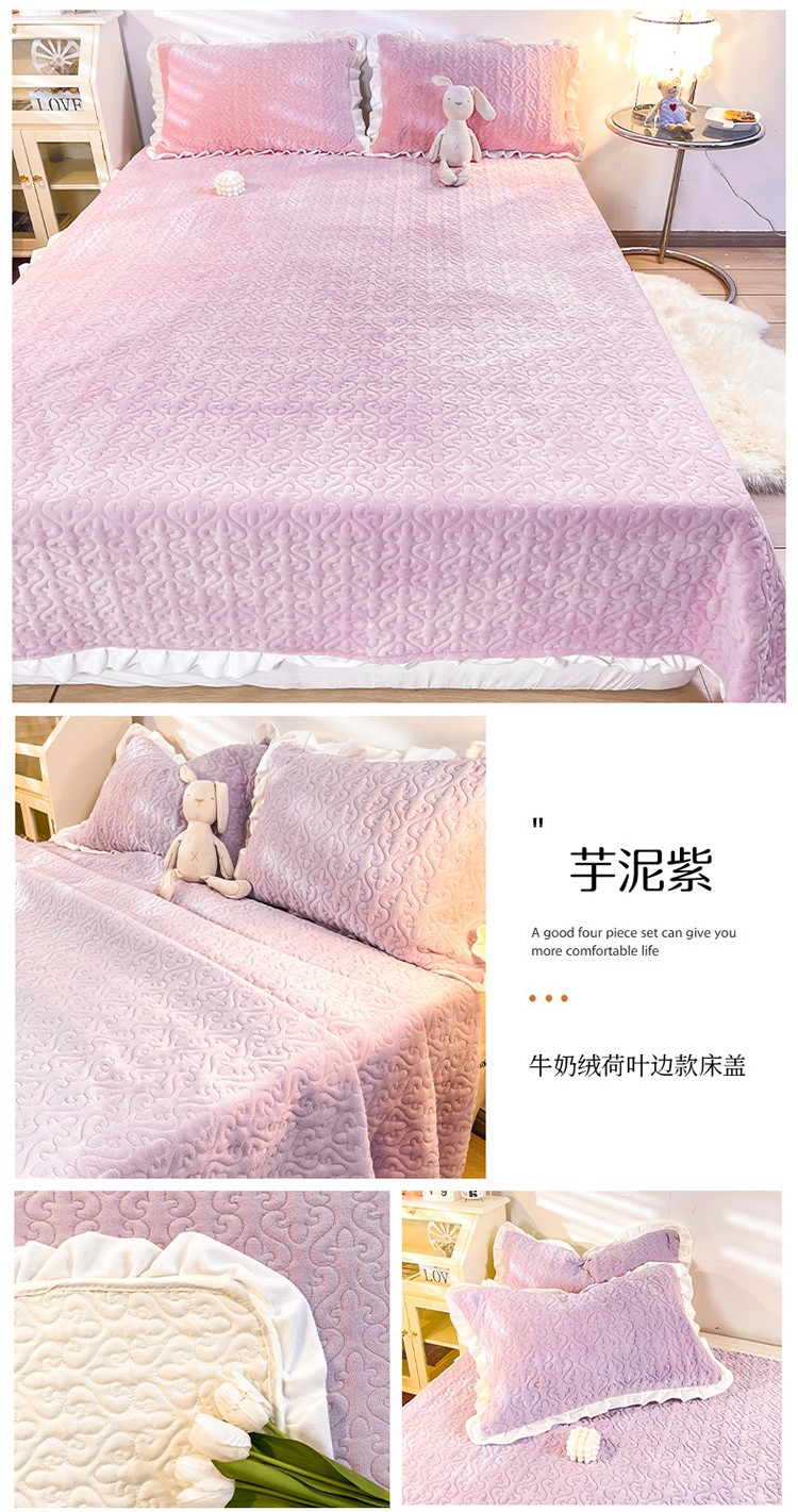 沐辰2021新款加厚牛奶绒荷叶边款床盖 芋泥紫