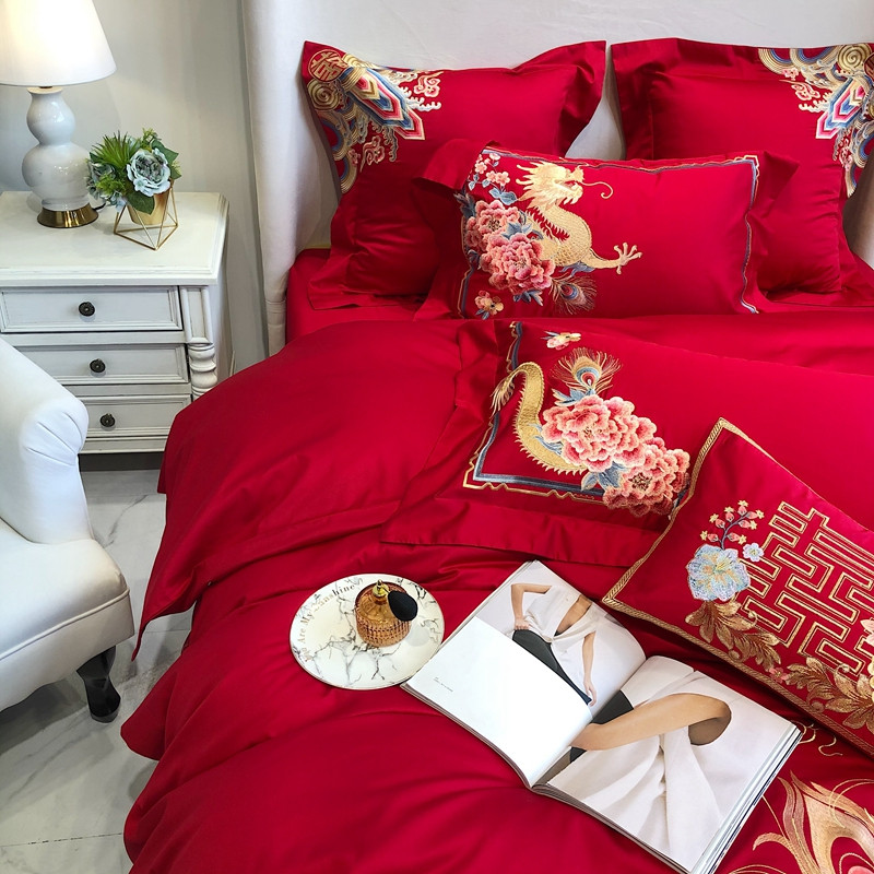 馨蕊 2022新款全棉提花140支四件套祥龙喜凤