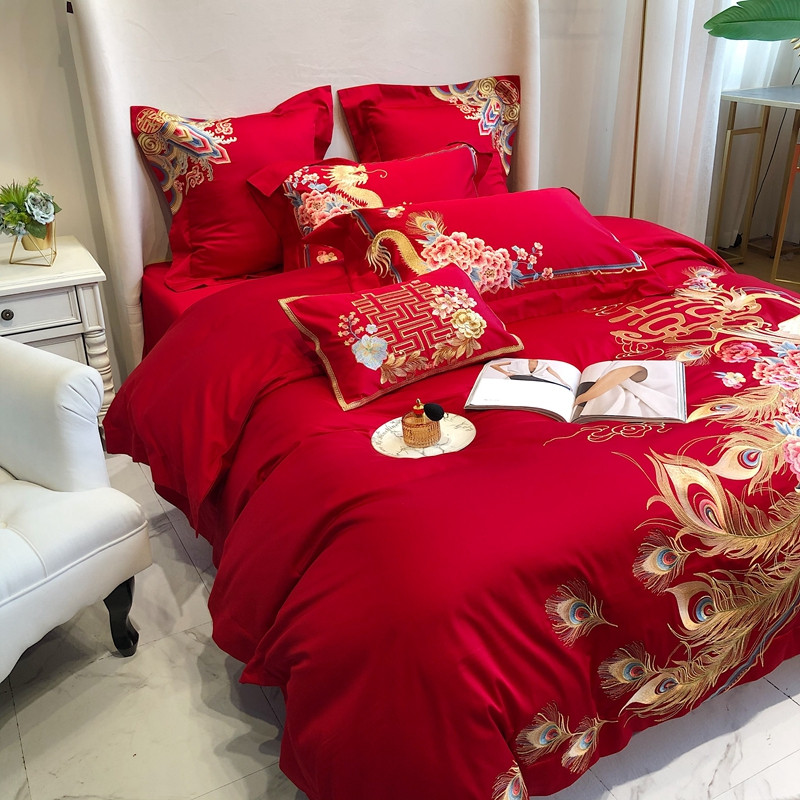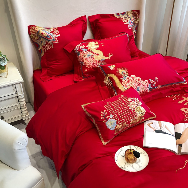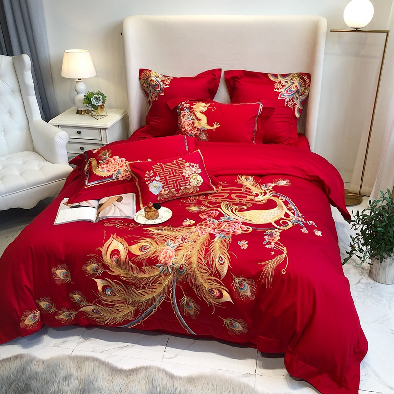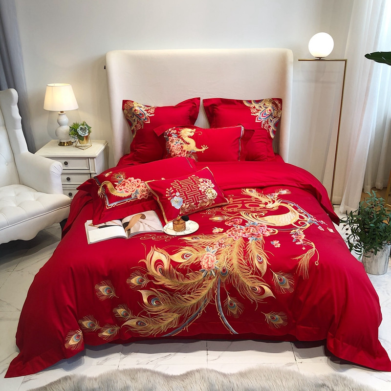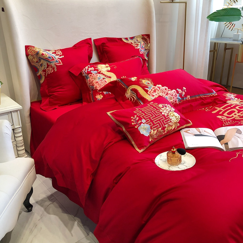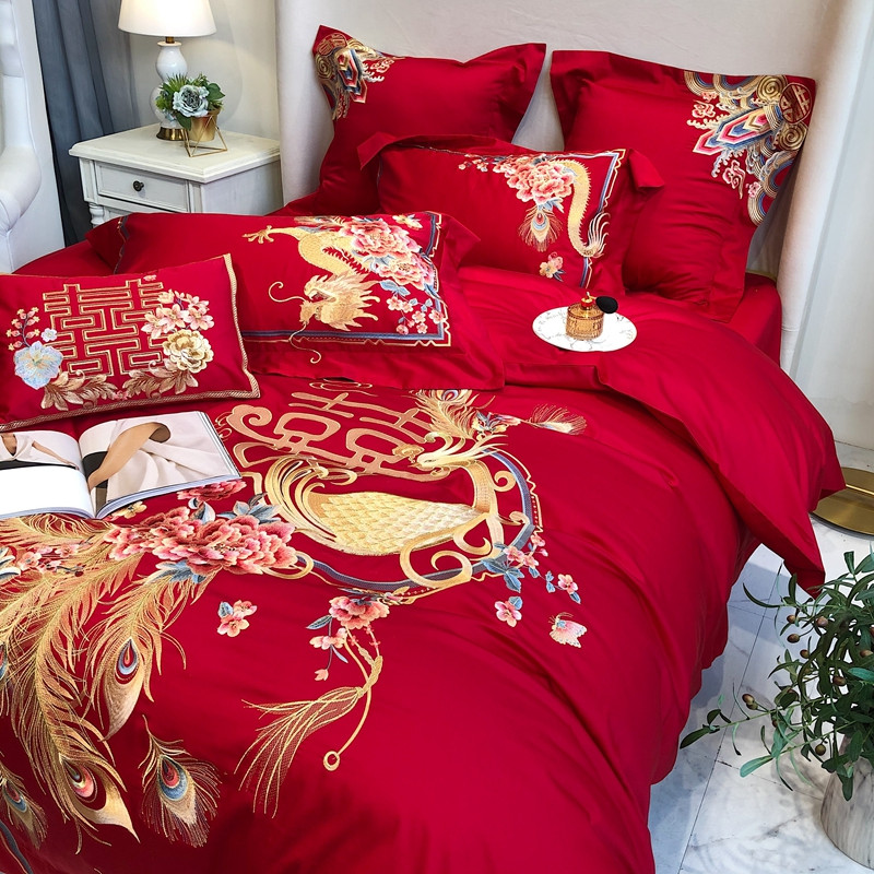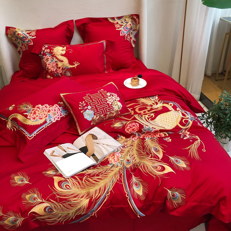 商品名称:馨蕊 2022新款全棉提花140支四件套祥龙喜凤