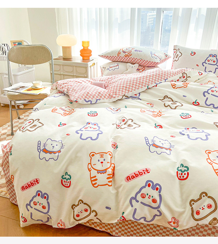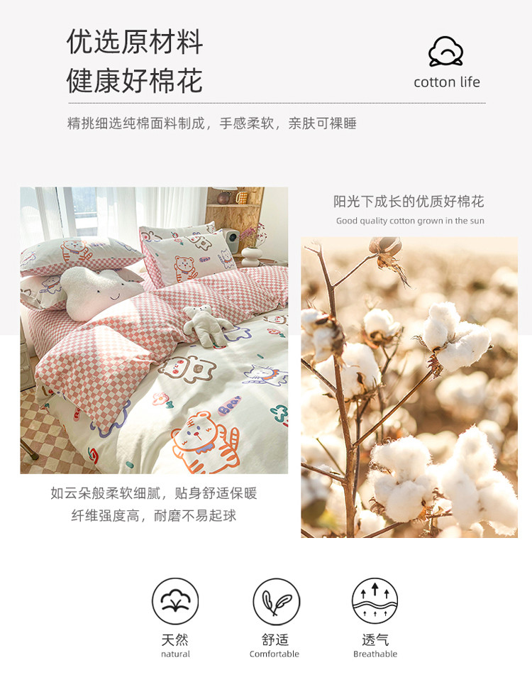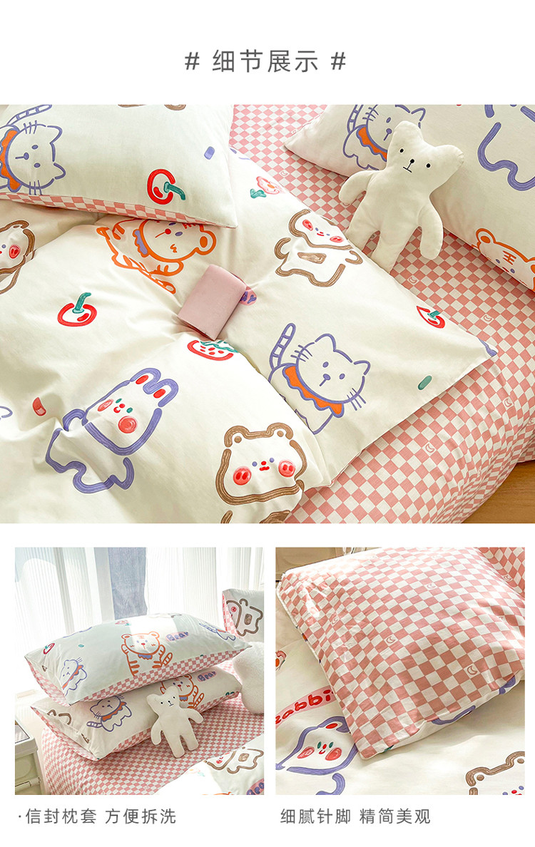 (总)感遇家纺 2025新款小清新甜系全棉四件套,百丽兔,波点小女孩,点点小狗,复古樱桃,格子草莓,格子樱桃,花间牧歌,灰条猫咪,奶绿,宁夏,森林小熊猫,甜心波点