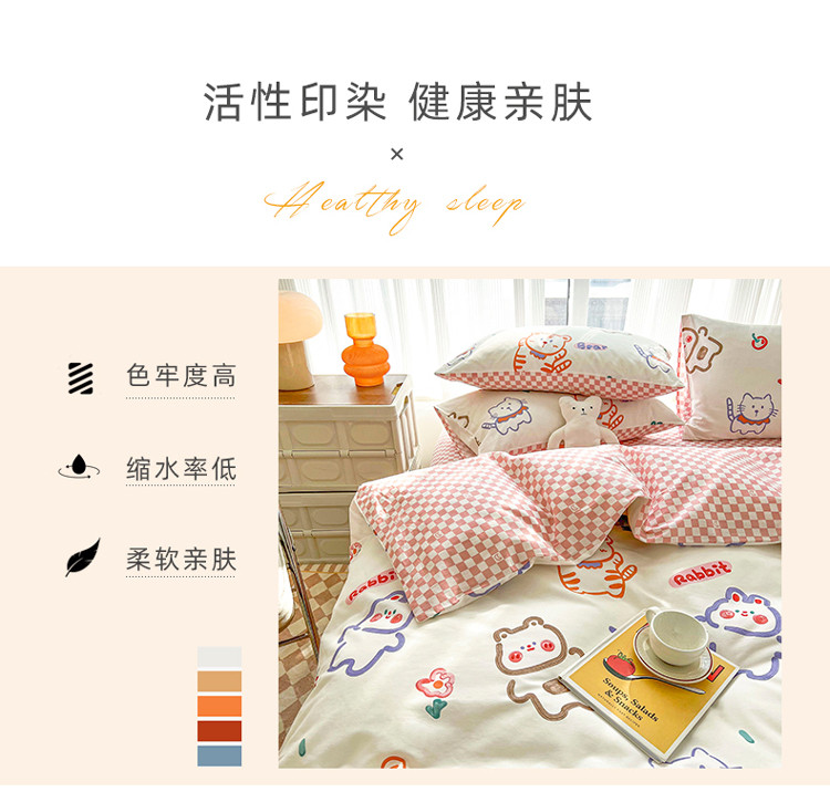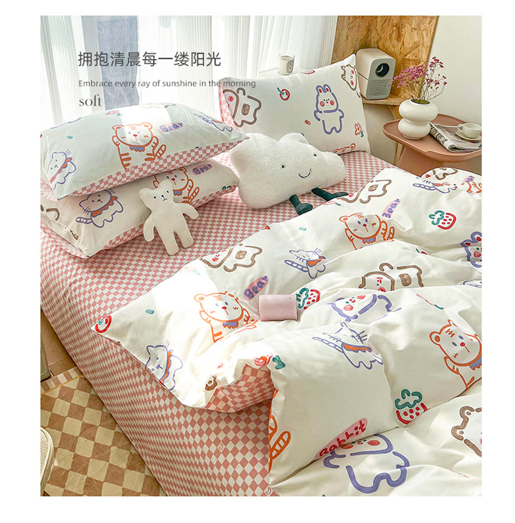 (总)感遇家纺 2022新款全棉印花四件套,格子草莓,花晓,滑板小熊,萌宠,时光,兔宝宝,熊先生