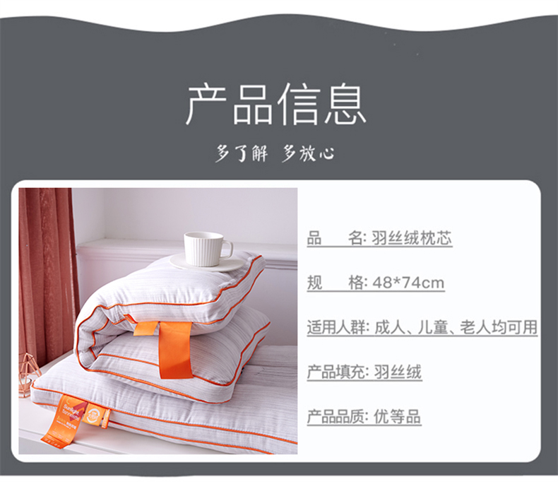 当前位置: 91家纺网 > 商品网购 > 枕头/枕芯/保健枕/颈椎枕 > 普通枕芯 > 赛格时代家居 健康舒适羽丝绒枕 枕头 低枕