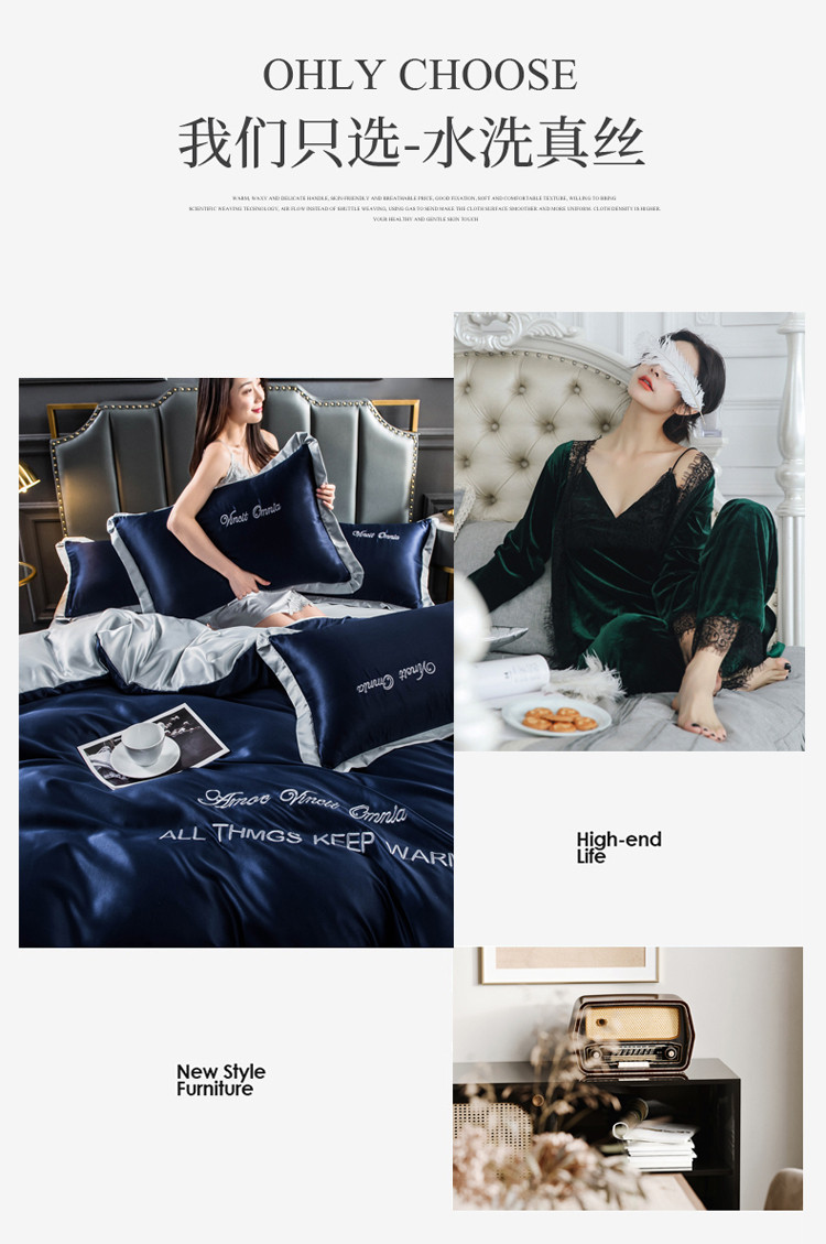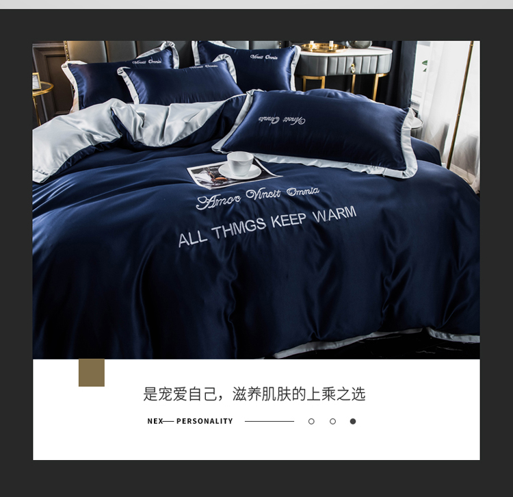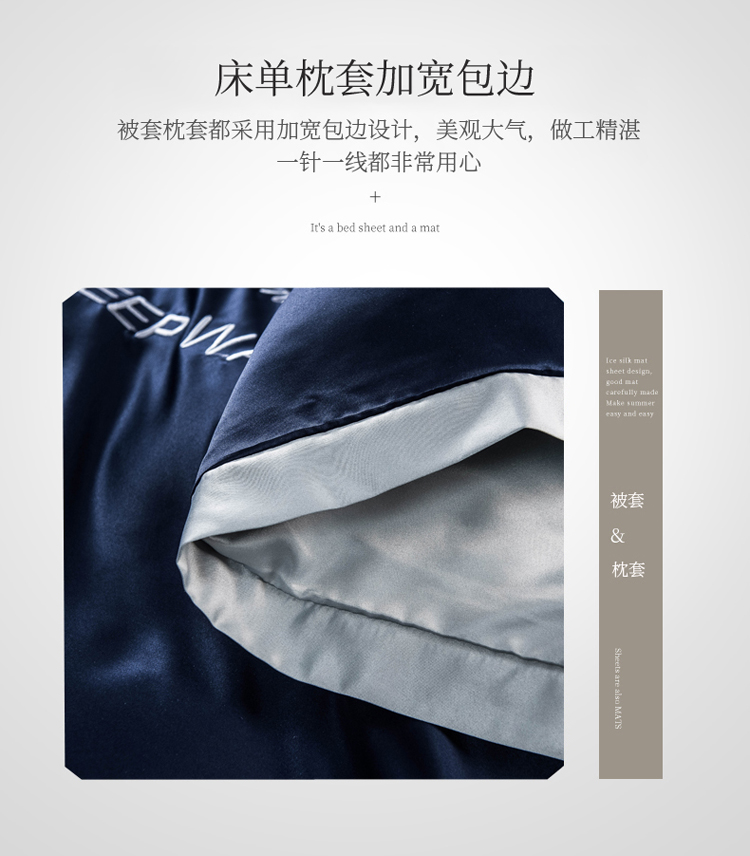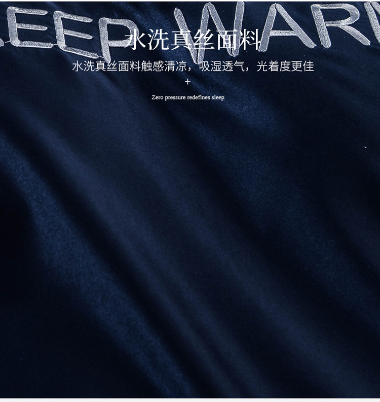 商品名称:欧冠 2022新款水洗真丝盛夏系列四件套 宝蓝+灰