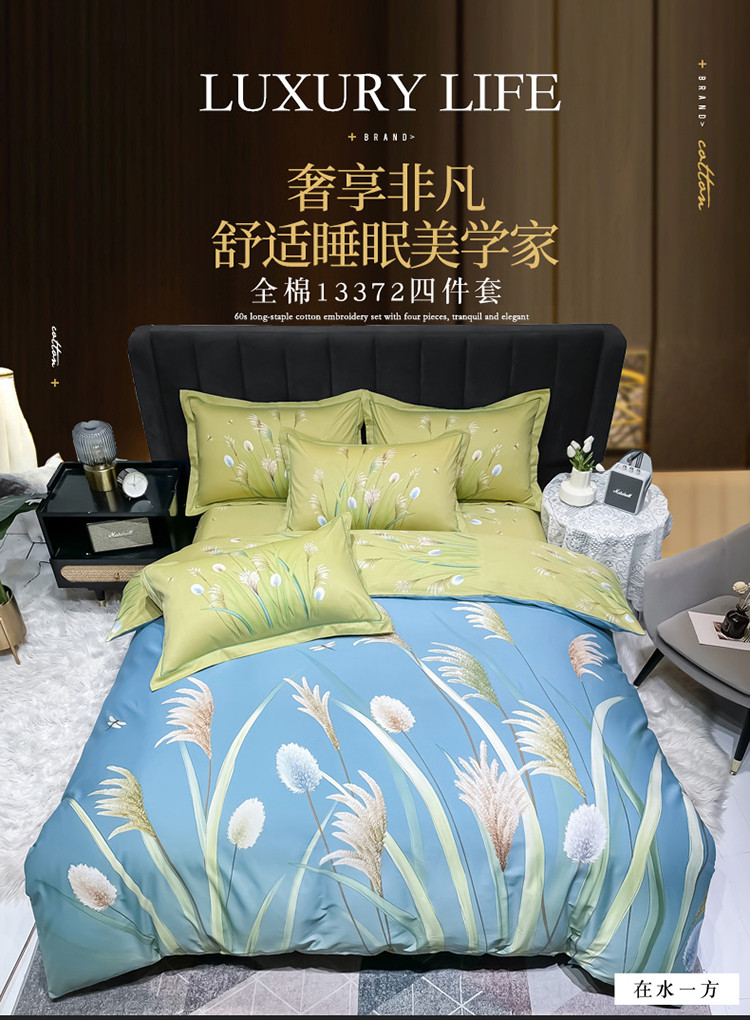 金爱家 2023新款大版13372全棉花卉系列四件套在水一方