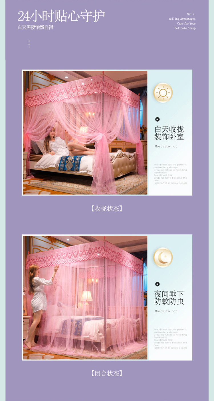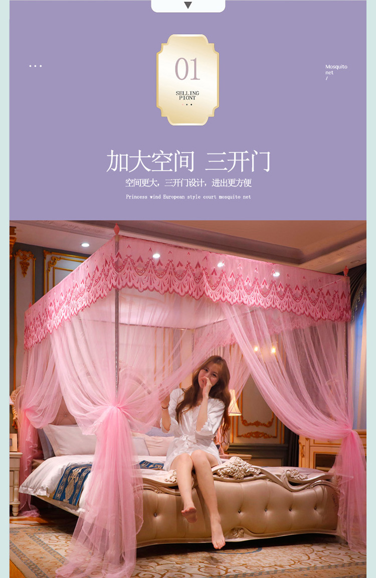 当前位置: 91家纺网 > 商品网购 > 床上用品 > 蚊帐 > 宫廷蚊帐 > 迷仙巢家纺 2022新款落地宫廷蚊帐-C60粉黛佳人粉红